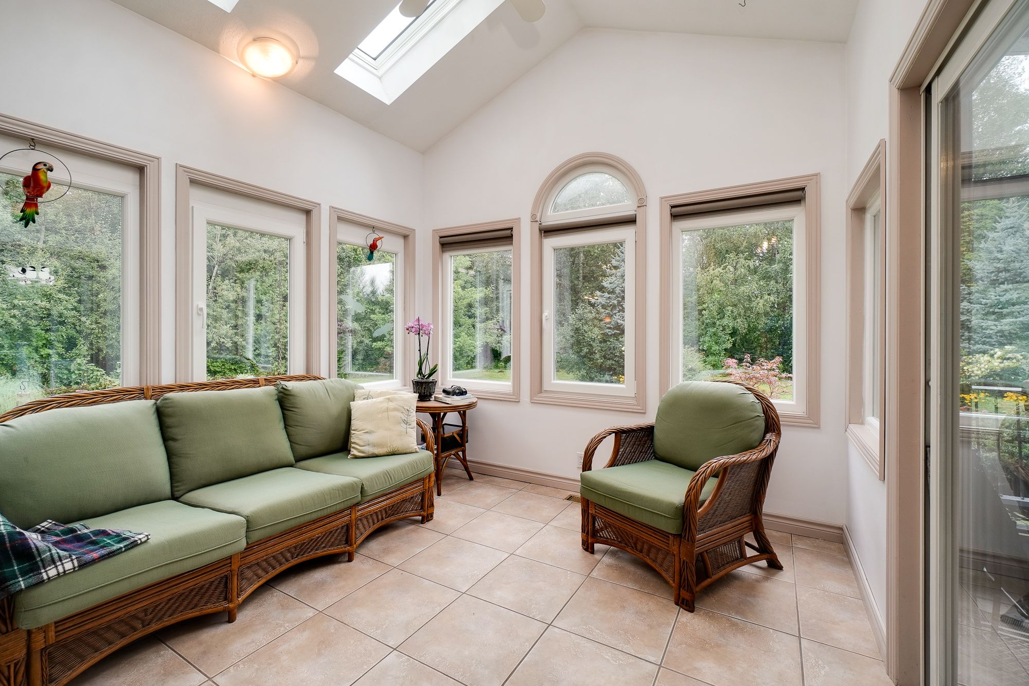 • Heated sunroom and screened solarium for year-round enjoyment of nature.