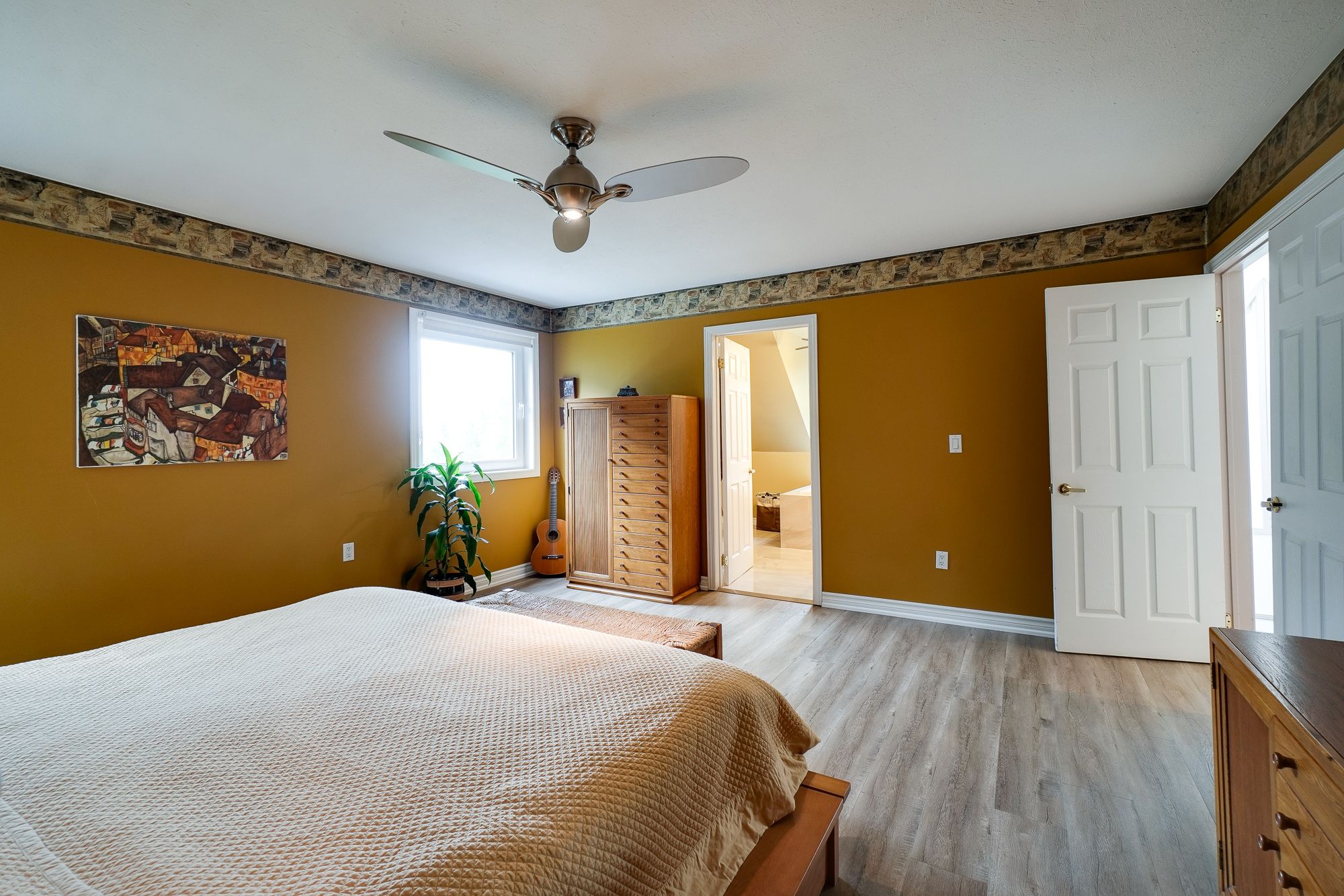 Beyond a long tree lined driveway, discover your hidden 2-acre retreat-where sunlight dances through trees, birdsong fills the air, and everyday life feels peacefully removed. Framed by mature woods, this sophisticated custom-built home offers a rare harmony of nature, comfort, and thoughtful design. A bright two-story foyer welcomes you with skylights overhead, filling the space with natural light. The custom kitchen (2010) is both stylish & functional, featuring granite countertops, abundant cabinetry, built-in appliances, induction cooktop, & a practical butler's pantry-perfect for everyday living & entertaining. A heated sunroom provides a cozy, year-round vantage point to enjoy the surrounding landscape, while the screened solarium invites peaceful summer evenings overlooking the ornamental pond with water lilies - an idyllic spot for birdwatching, spotting deer, or winter skating. Elegant principal rooms include a formal living room with an efficient petite godin cast iron wood stove and a formal dining room made for hosting. The spacious family room, anchored by a reclaimed brick accent wall and wood stove insert, creates a warm and inviting gathering space. Upstairs offers three bedrooms plus a flexible office/den (or potential 4th bedroom/nursery), along with a rustic loft featuring pine floors, wet bar, & wood stove - perfect as a studio, gym, or private guest retreat. The primary suite features a spa-inspired ensuite with soaker tub, glass shower, double sinks, bidet, heated floors/towel rack. Additional highlights include approx. 1,500 sq. Ft. Of high-ceiling lower level ready for finishing, 2 garden sheds, and ~0. 5 acre enrolled in cltip for reduced property taxes. Geothermal heating/cooling, shingles and skylights (2019), premium european windows (~2014) ensure comfort & efficiency. In early spring, tap your own maple trees and turn the season's sap into golden syrup. Located on a paved road across from barbour field & less than an hour to the gta.