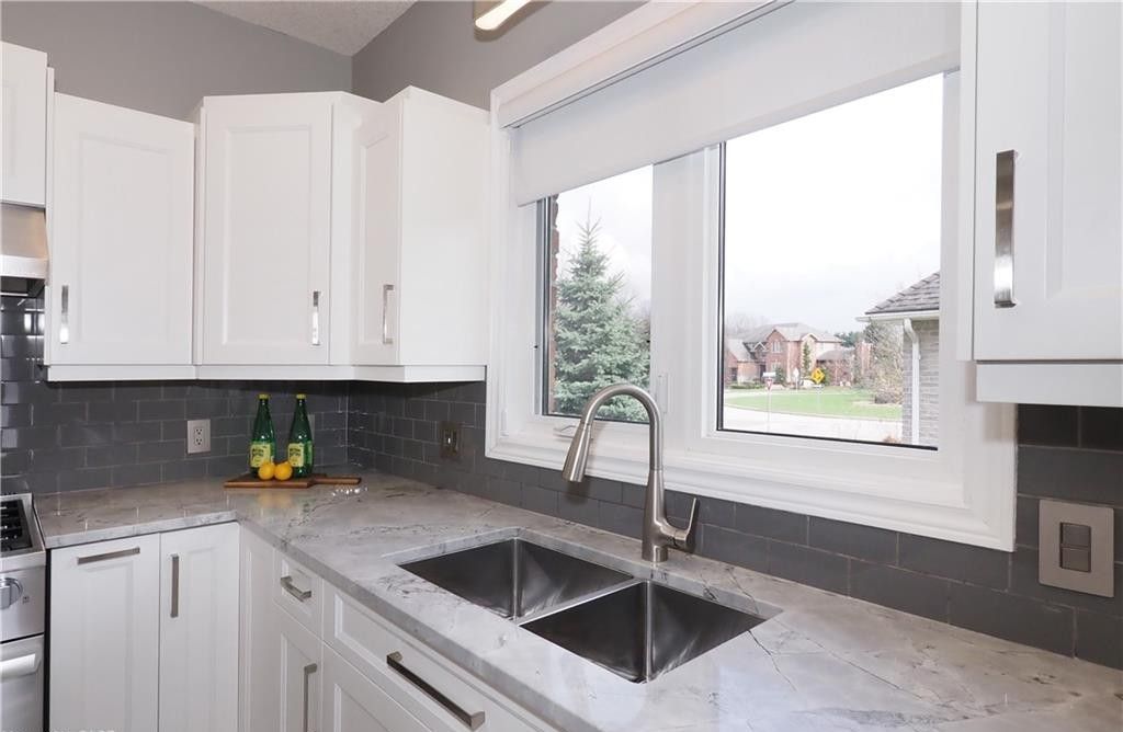Open house saturday april 11th 1-3 pm ! Tucked into one of woodstock's desirable north-end neighbourhoods, this is more than just a property-it's a home that has been beautifully cared for and extensively updated from top to bottom. Built by heritage homes, this stunning bungalow offers quality construction, thoughtful upgrades, and a layout that truly works for everyday living. The main floor is bright and inviting, featuring a soaring cathedral ceiling and large windows in the great room that flood the space with natural light. The updated kitchen offers granite countertops, newer cabinetry (2023) and flooring (2020), and flows seamlessly into the living and dining areas. Hardwood flooring on the main floor (2021), complemented by a renovated ensuite (2018) with heated floor, updated main bath with granite vanity and flooring (2020), and main floor laundry with quartz countertop (2020). Additional upgrades include updated stair railings (2021) and a great room fireplace and mantle (2024). With two bedrooms on the main level and two additional bedrooms in the fully finished basement, along with three full bathrooms, there is plenty of space for family or guests. The lower level features a beautiful gas fireplace in the spacious recreation room with new carpet (2021), added bedroom and workshop (2021), updated bathroom with quartz vanity (2024), custom built-in bookshelf (2025). Outside, enjoy a composite deck with gazebo (2023), stone patio (2024), stone walkway (2025), 6-zone irrigation system (2023), and year-round exterior lighting (2023), all backing onto green space. Meticulously maintained and move-in ready.