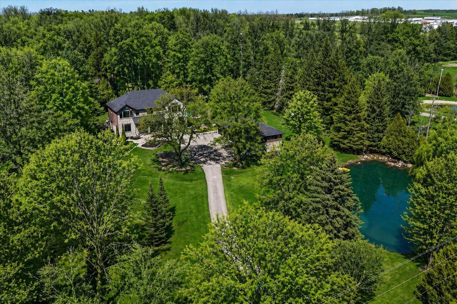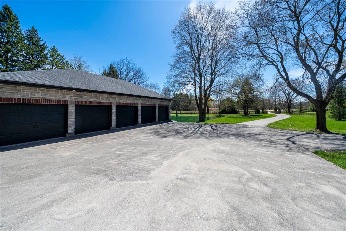 Set on 5 private acres just 10 minutes north of nobleton, this custom stone-and-brick estate is the kind of property that gives you more than just a beautiful home - it gives you room to live, work, host, and grow. From the moment you arrive, the long driveway, peaceful pond, mature trees, and open green space create a true countryside escape, while still keeping you close to town. Inside, 10 ft ceilings, oversized windows, and a bright open layout make the home feel spacious, warm, and easy to enjoy. The main floor features a bedroom with its own connected washroom, perfect for in-laws, guests, or anyone who prefers to avoid stairs. The kitchen is designed for both everyday life and entertaining, complete with built-in appliances, ample storage, a coffee bar, and direct access to the backyard patio. Upstairs, every bedroom offers its own connected bathroom and walk-in closet, giving everyone comfort and privacy. The primary suite feels like a private retreat with a cathedral ceiling, walk-in closet, and luxurious 5-piece ensuite. The finished basement adds even more flexibility, whether you need space for guests, a home gym, theatre room, games area, or teen retreat. Outside, the 5-car garage, long driveway, and ample parking make this property especially practical for business owners, contractors, or trucking operators needing room for vehicles, trailers, or equipment. A rare estate where country privacy, luxury living, and real everyday functionality all come together.
