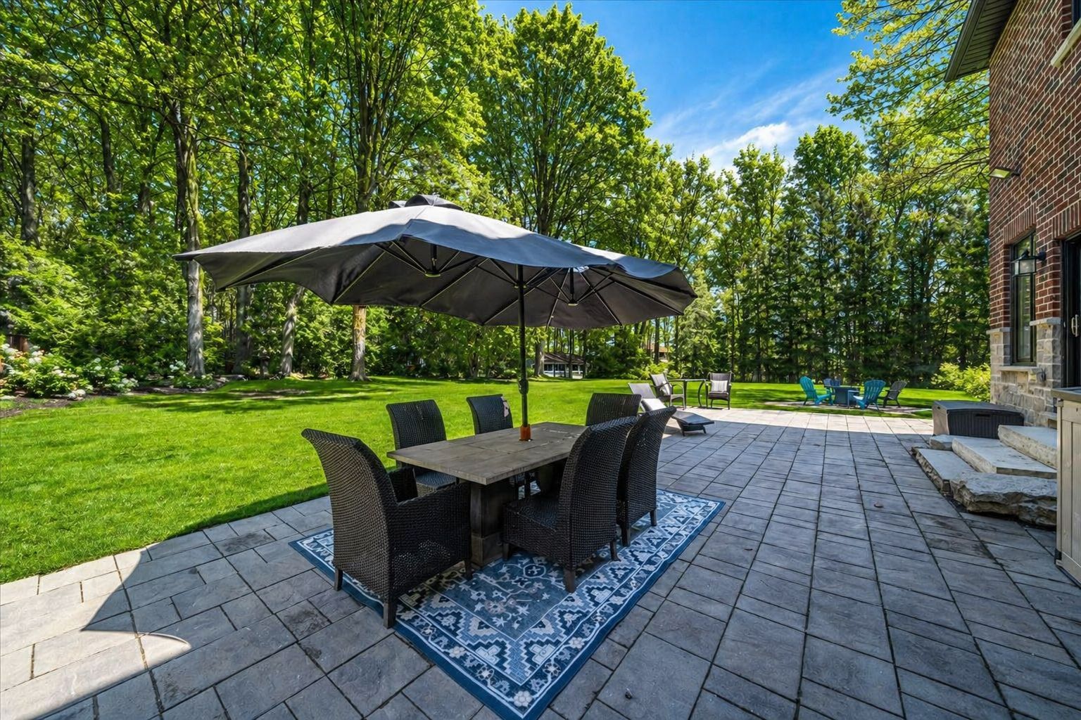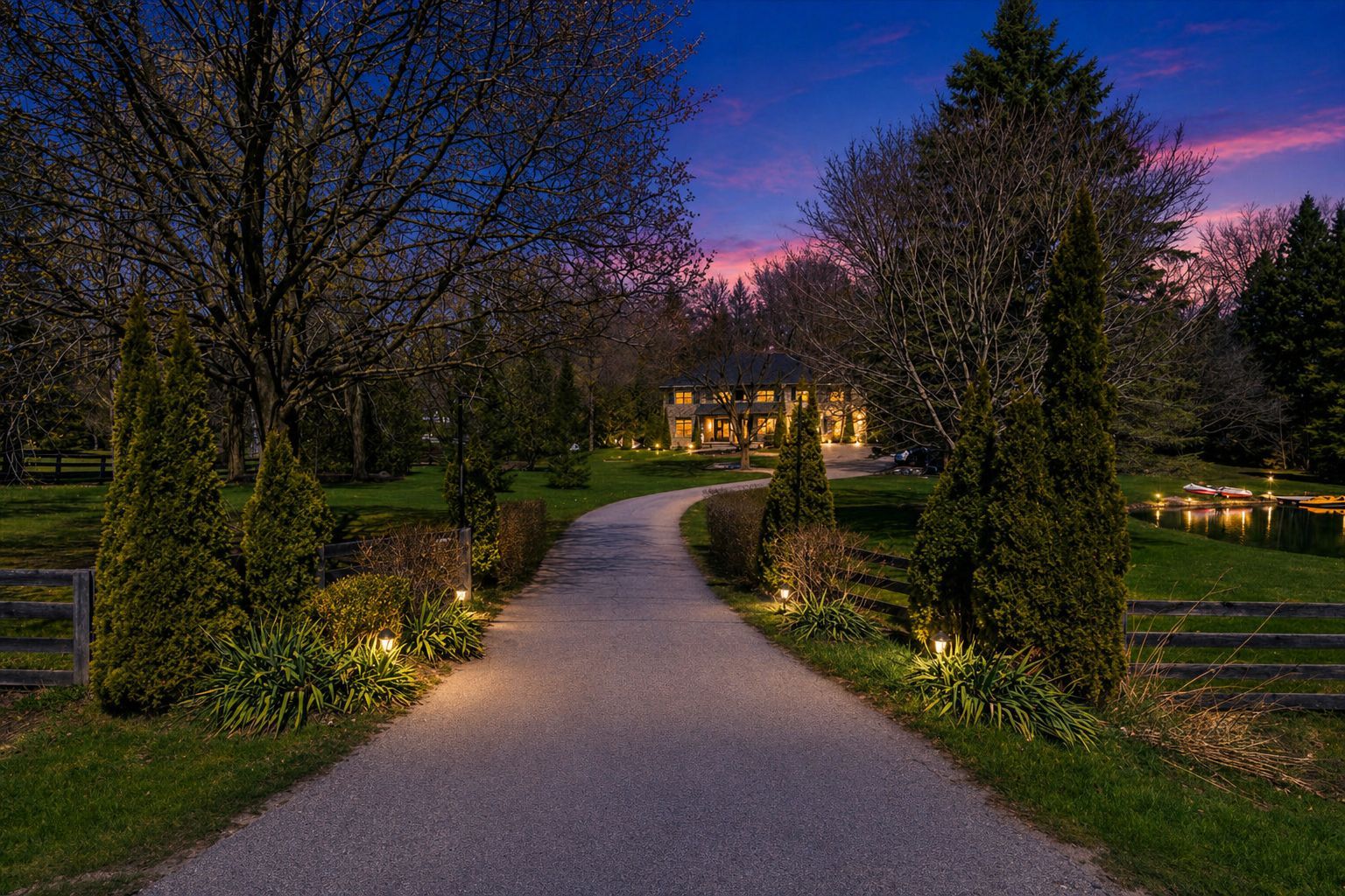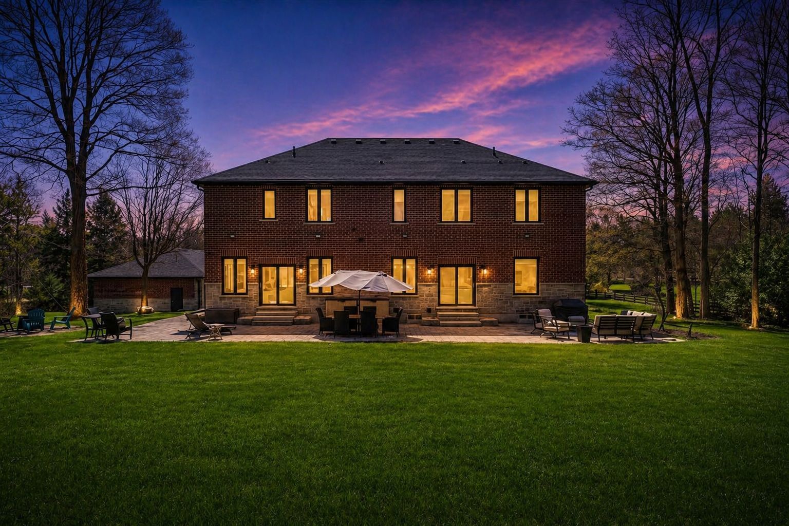 • Custom stone-and-brick estate on 5 private acres for spacious living.
