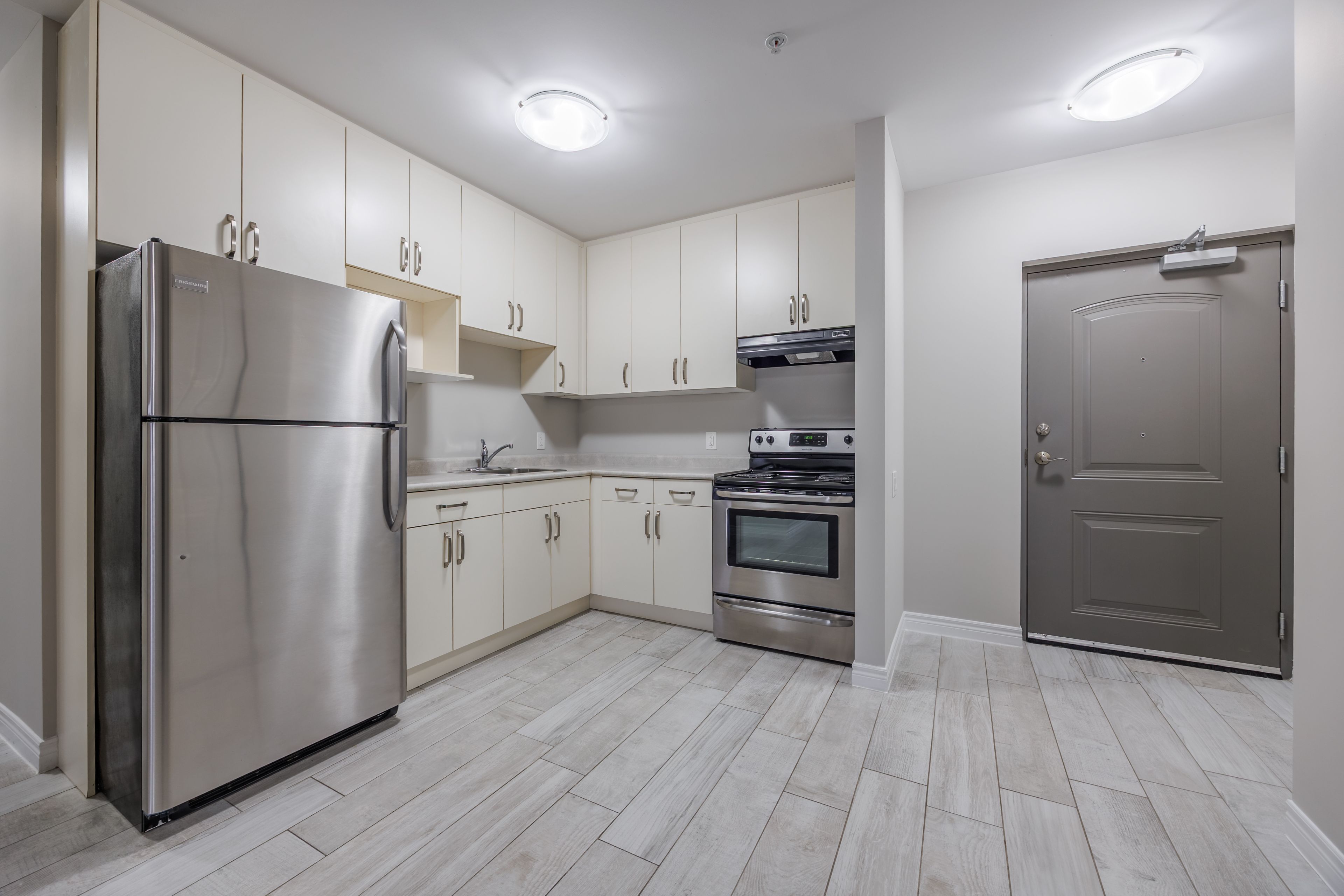 • Open-concept living space with upgraded cabinetry and stylish flooring.