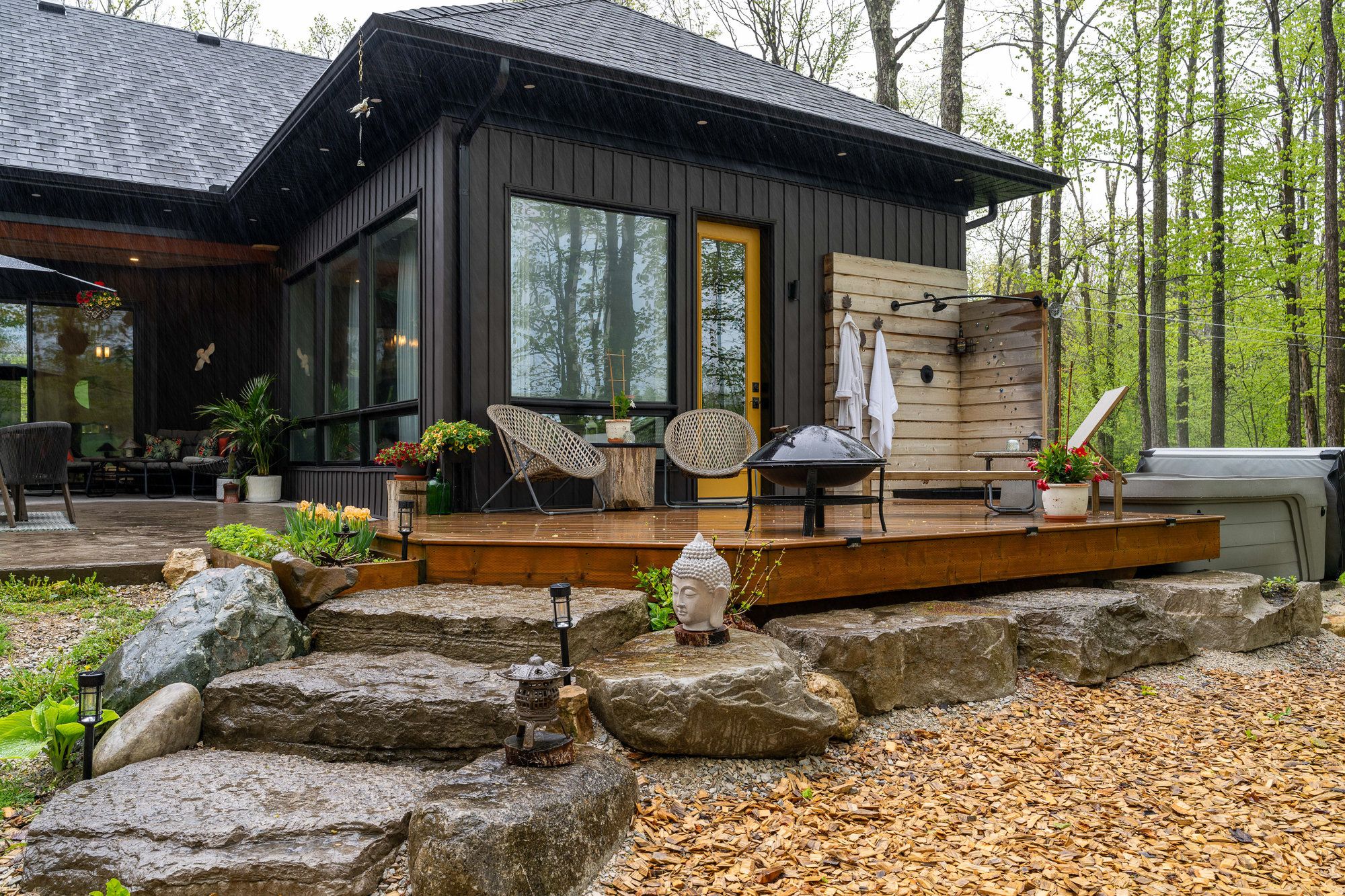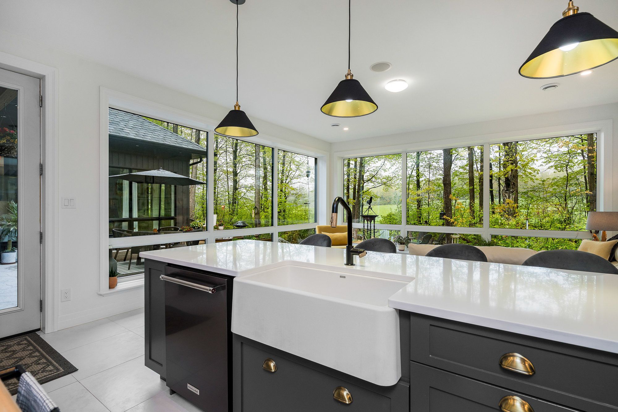 Escape to nature without sacrificing comfort. Set on 10 private acres in desirable holland centre, this impeccably built 2-bedroom, 2-bathroom bungalow offers over 2,100 square feet of luxurious, single-level living. Constructed in 2020 by a custom home builder for personal use, the quality is evident in every detail-engineered oak flooring, italian porcelain tile, designer fixtures (brizo, kohler, hansgrohe), high-end lighting, and built-in klipsch ceiling speakers throughout. The chef-inspired kitchen features premium appliances, a central island, and a 10' peninsula-perfect for entertaining while enjoying views of the forest. Dust-free, in-floor radiant heating backed up by ductless heating/cooling, triple-pane windows, r34 walls, r70 attic insulation, and a 50-year roof ensure year-round comfort and efficiency. Starlink high-speed internet keeps you connected. Outdoors, relax in the hot tub, entertain in the courtyard, or unwind beside the lovely ground-fed, aerated pond-a peaceful focal point that offers tranquil water views in summer and skating in the winter. The landscaped gardens, cobblestone drive, wooded trails, and firepit make this a true four-season retreat. Wildlife is abundant, and the property includes space for guests with trailer or tent parking near the pond. Enjoy the peace and privacy of rural living with the convenience of nearby amenities: 12 minutes to markdale (with new hospital and school), 35 minutes to owen sound and blue mountain, and just over an hour from highway 9. Whether you're looking for a full-time residence or a weekend escape, this home delivers exceptional quality, comfort, and a rare connection to nature.