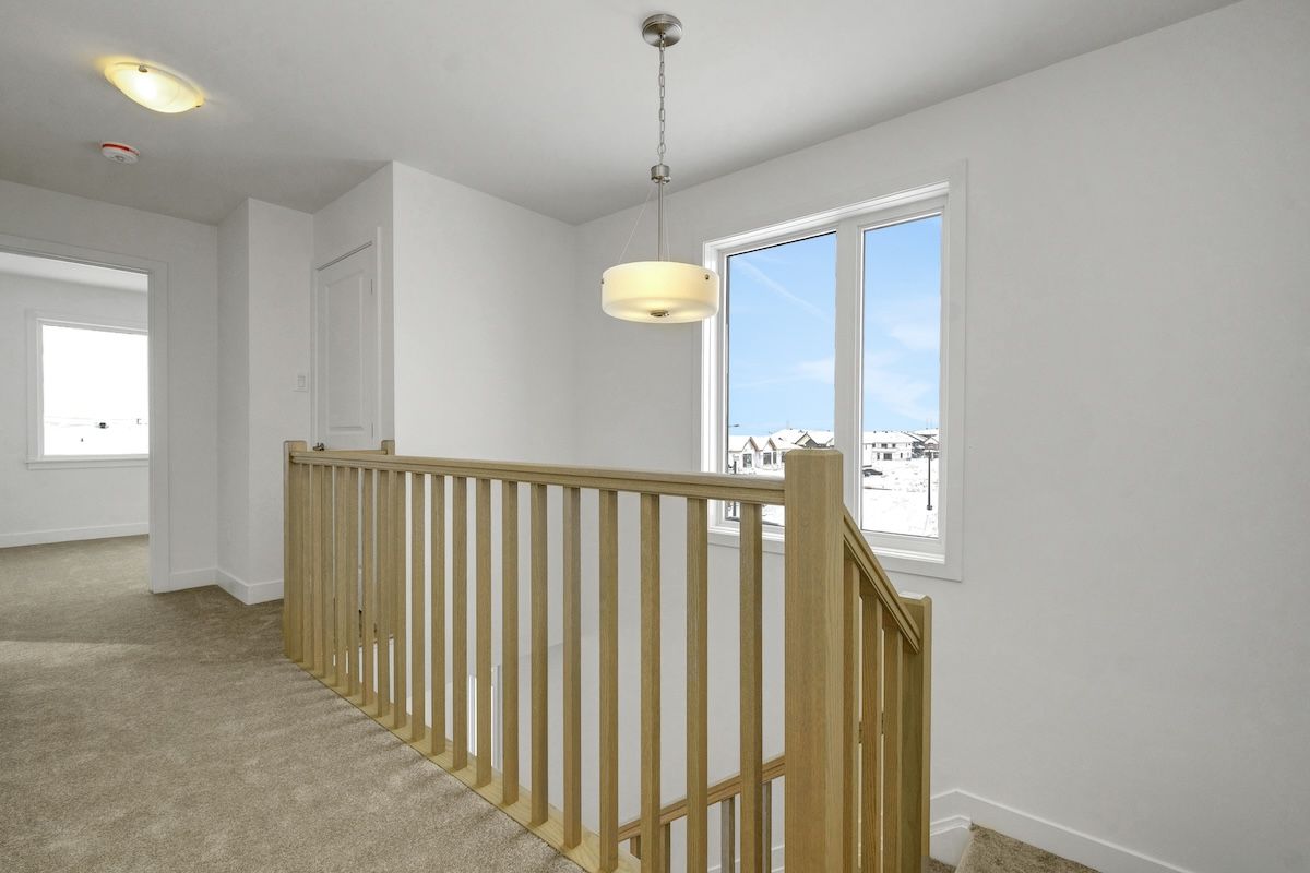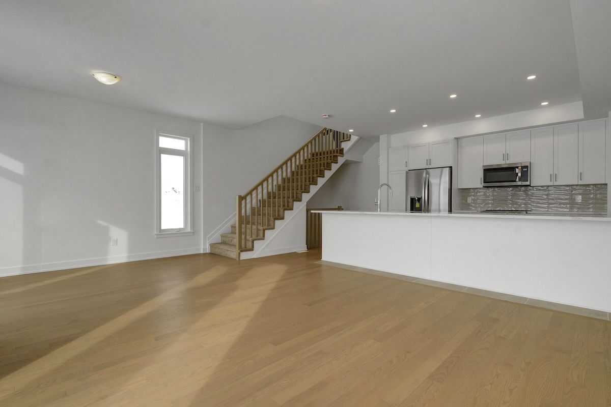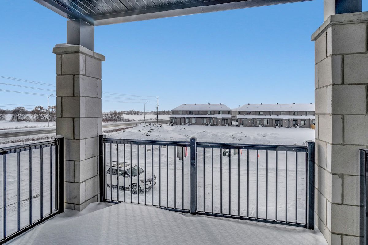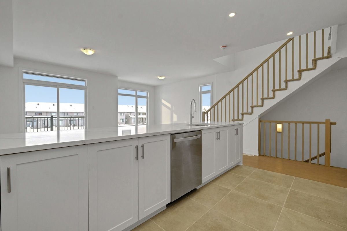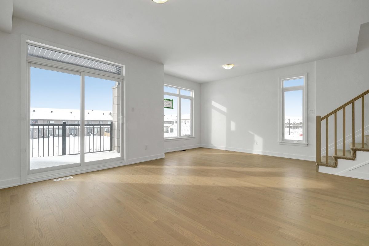 584 arbia ridge presents a rare opportunity to own a brand new, never-lived-in end-unit townhouse by claridge homes, offering modern design, thoughtful upgrades, and exceptional natural light across three well-appointed levels. This chantilly model welcomes you at ground level with interior access to the attached single garage with remote door opener, a convenient powder room, and a spacious front hall with a large coat closet-ideal for everyday functionality. The second level is the heart of the home: bright, open-concept, and spacious, featuring upgraded oak flooring, and a great room, where oversized windows and a private balcony extend the living space and invite in abundant daylight. The modern kitchen is beautifully appointed with upgraded quartz countertops, an upgraded sleek tile backsplash, ample cabinetry, and stainless steel appliances - designed for both everyday living and effortless entertaining. The third level offers a quiet and private retreat, featuring a primary bedroom with walk-in closet and modern ensuite, a second generously sized bedroom, and an additional full 4-piece main bathroom. Convenient third-floor laundry adds everyday ease. Set in bridlewood trails near schools, parks and transit, this move-in-ready home combines contemporary finishes, smart design, and the peace of mind that comes with brand new construction.
