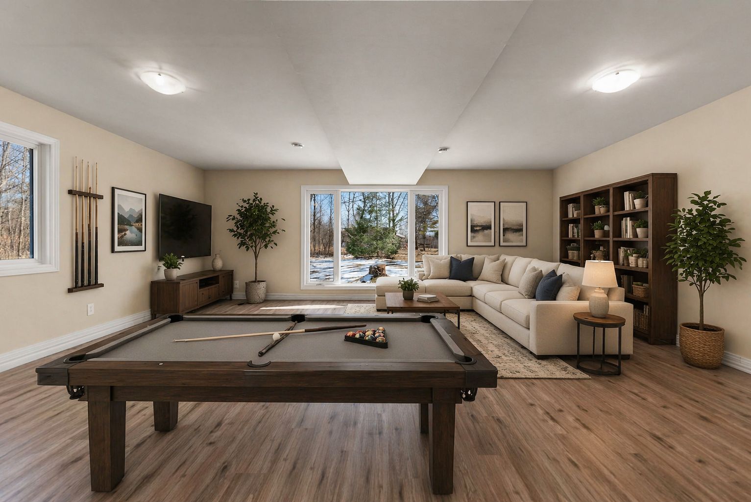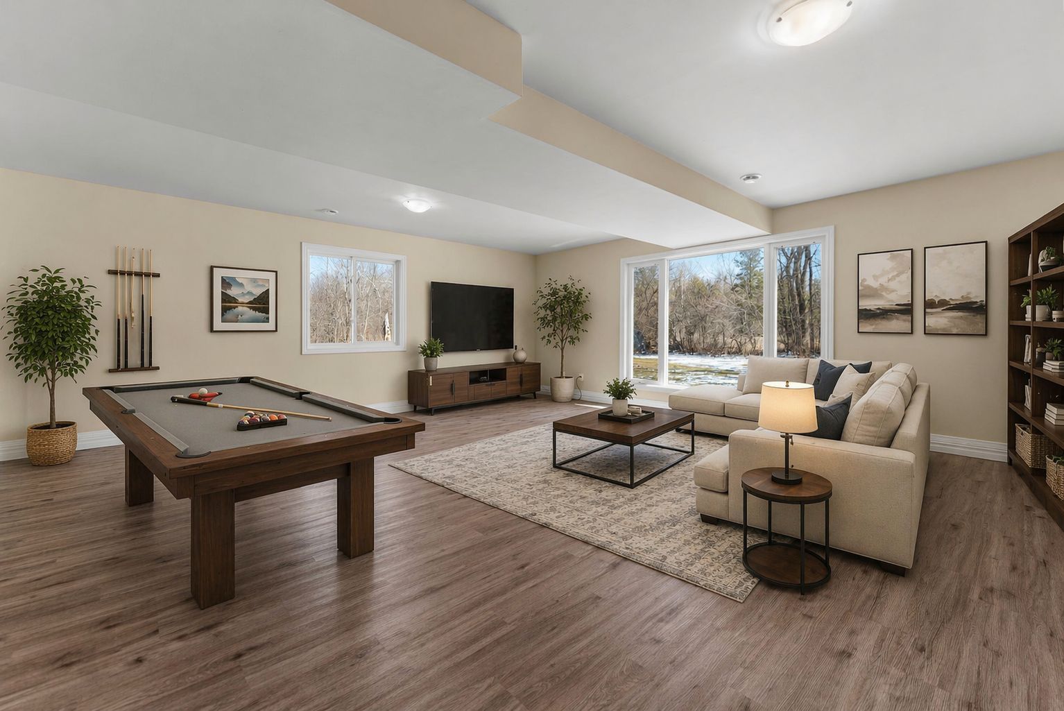 • Flexible space adapts for dining, sitting, or family entertainment.
