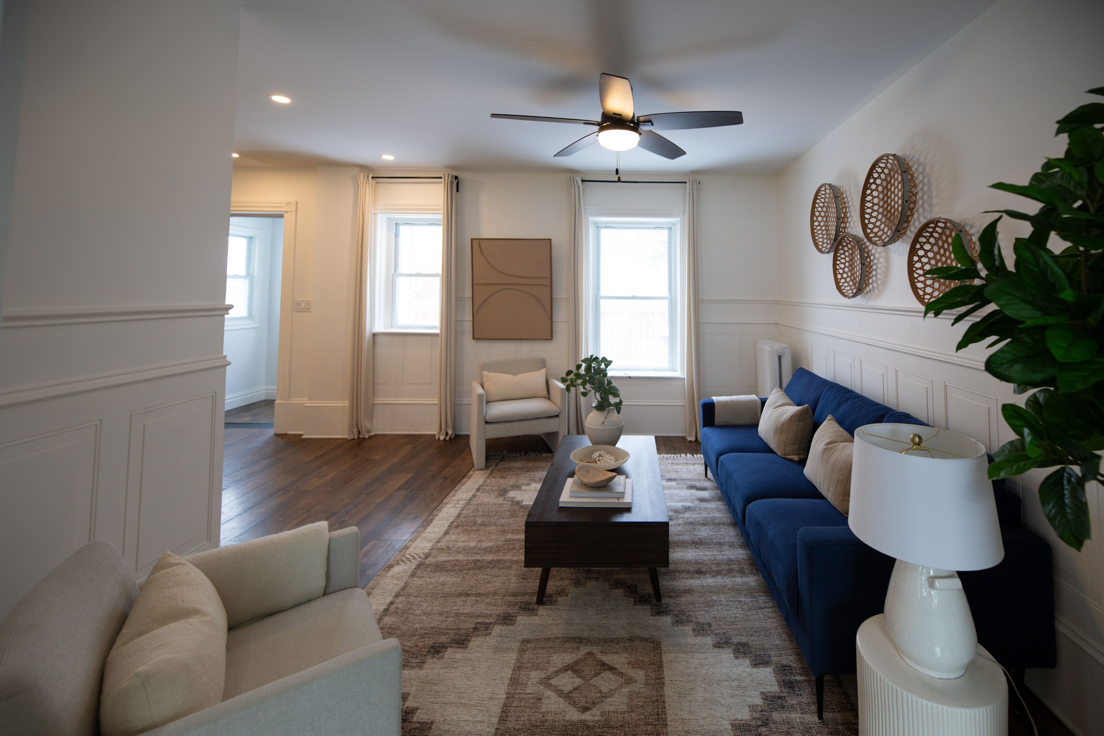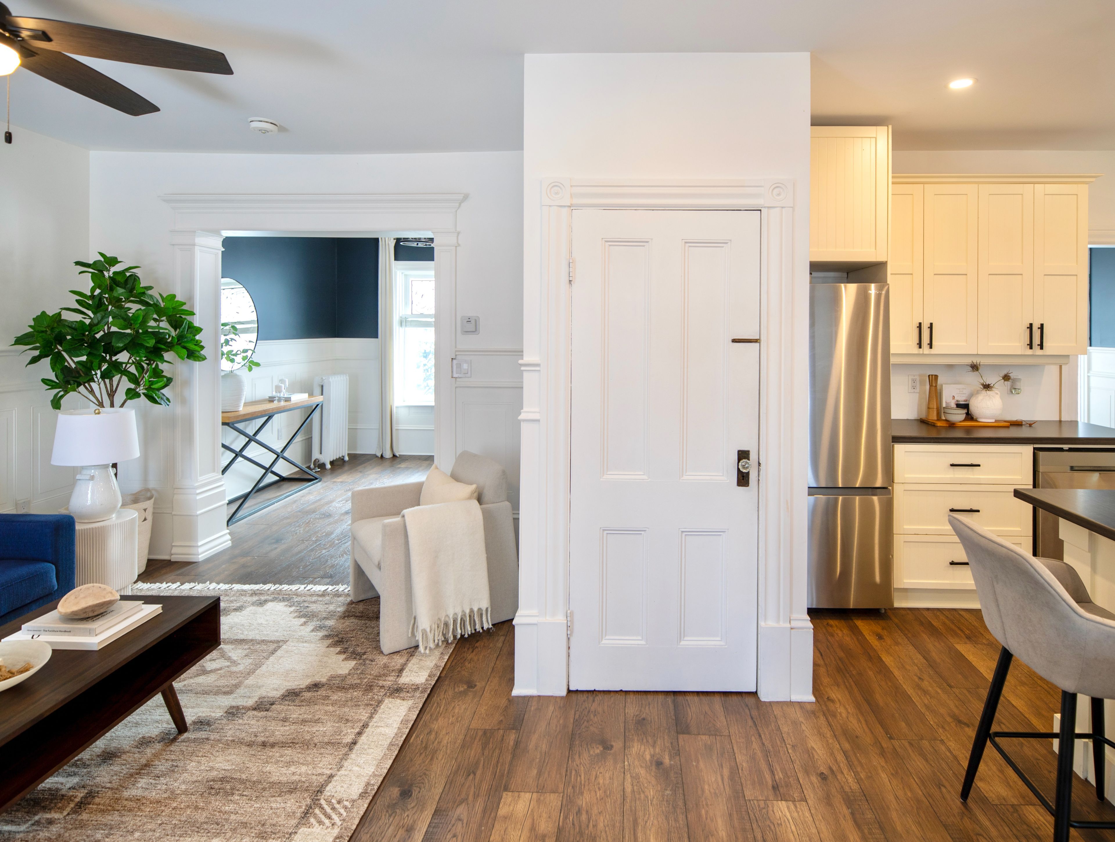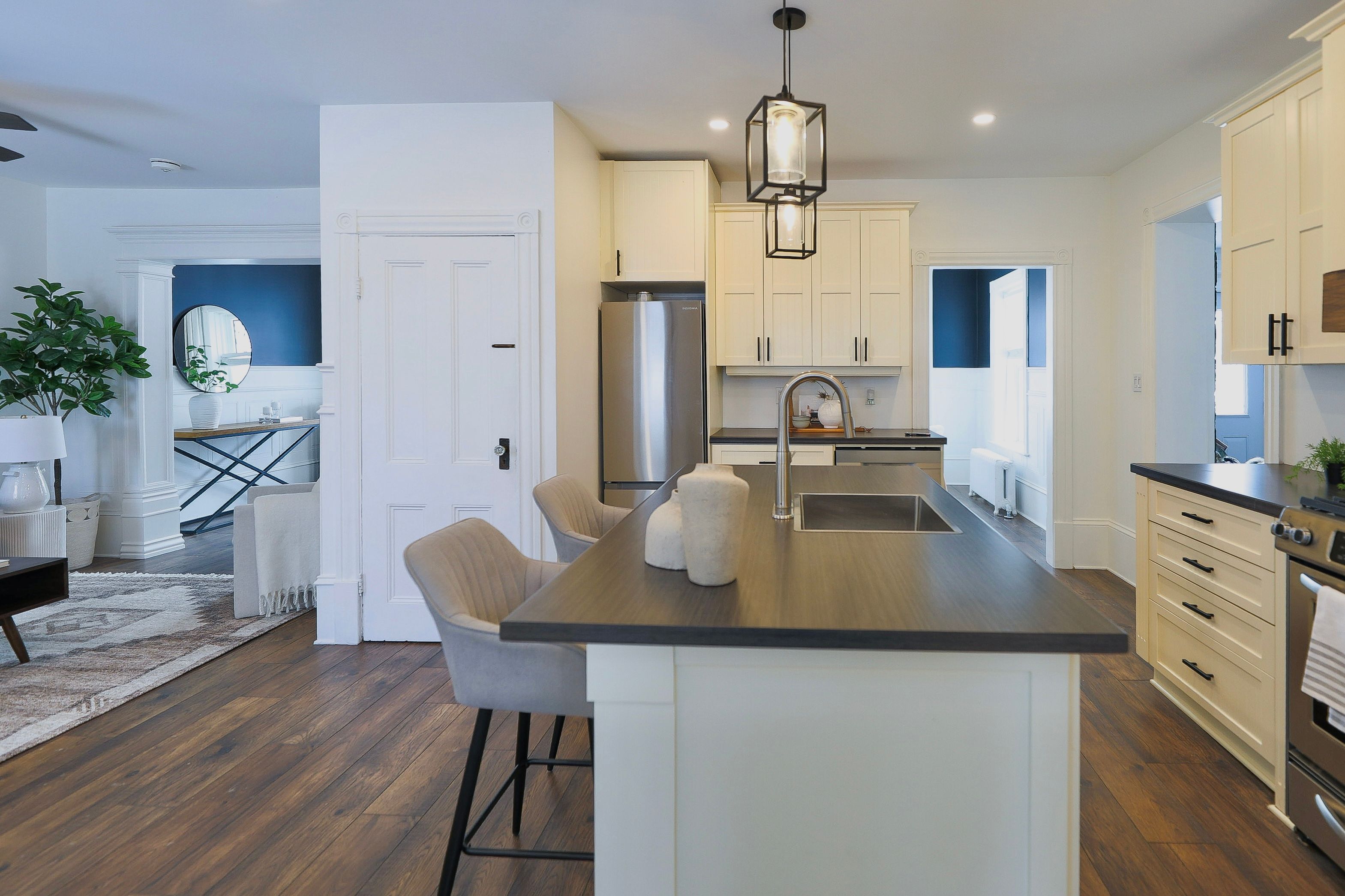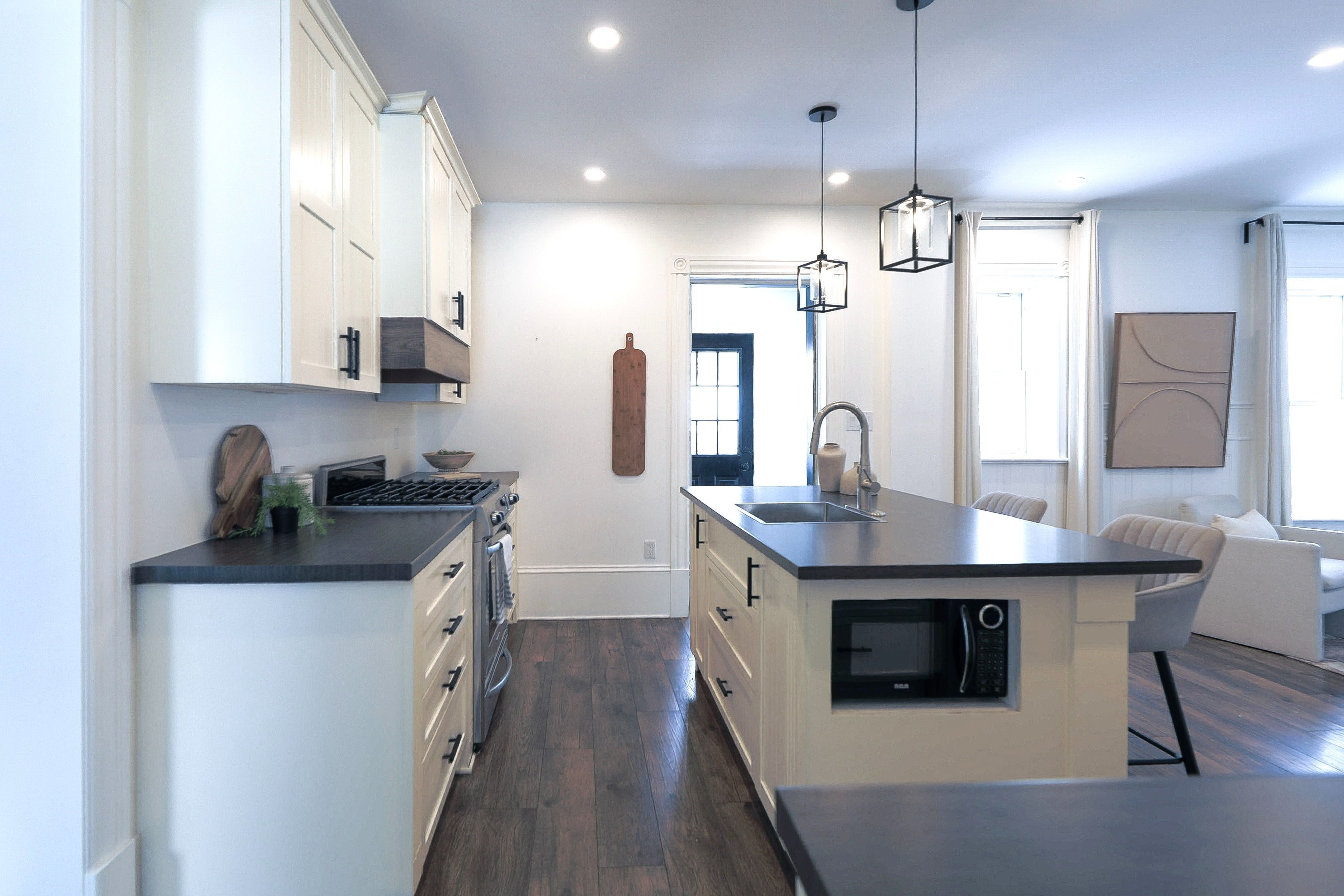 • Bright main floor with a spacious living room, dining area, and renovated kitchen.