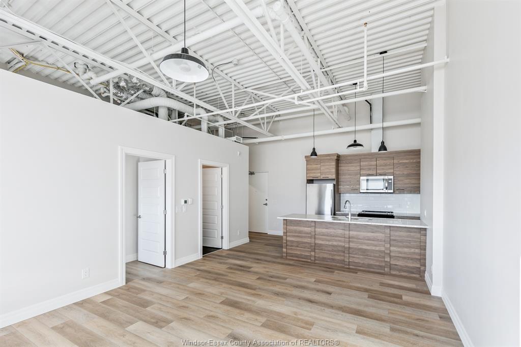 • Soaring ceilings and modern vinyl plank floors for a spacious feel.