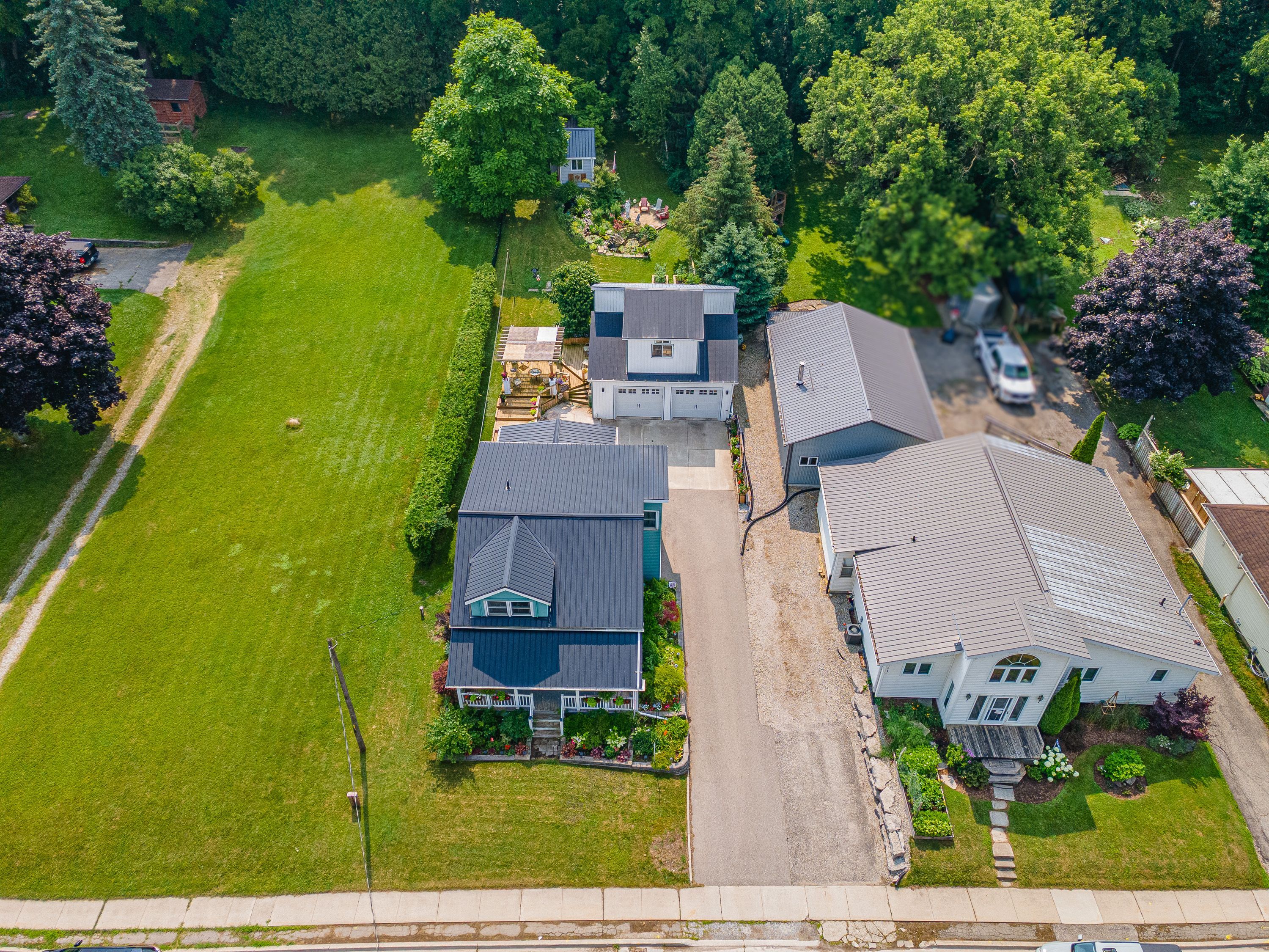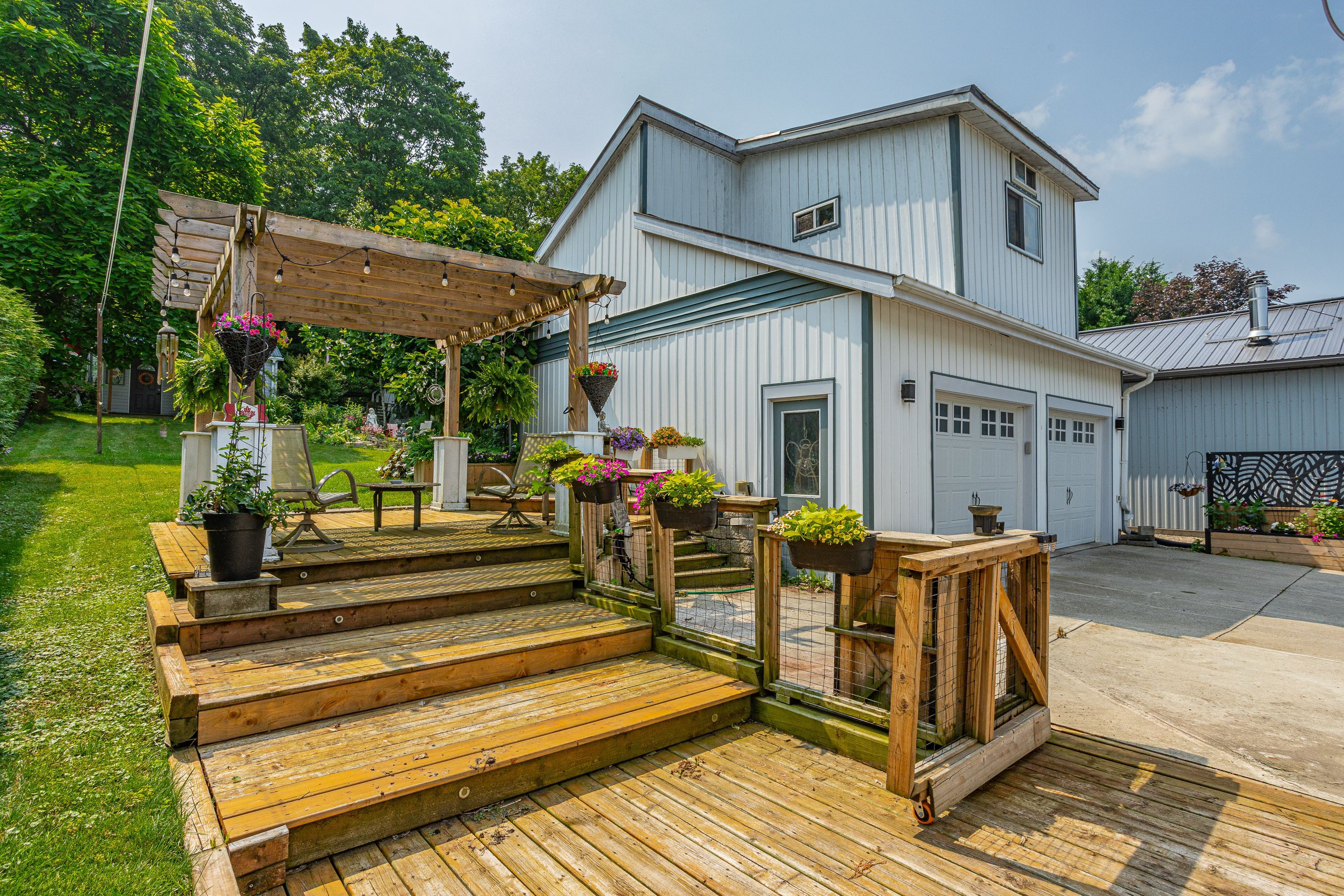 • Detached two-car garage with an upper-level workshop for various projects.