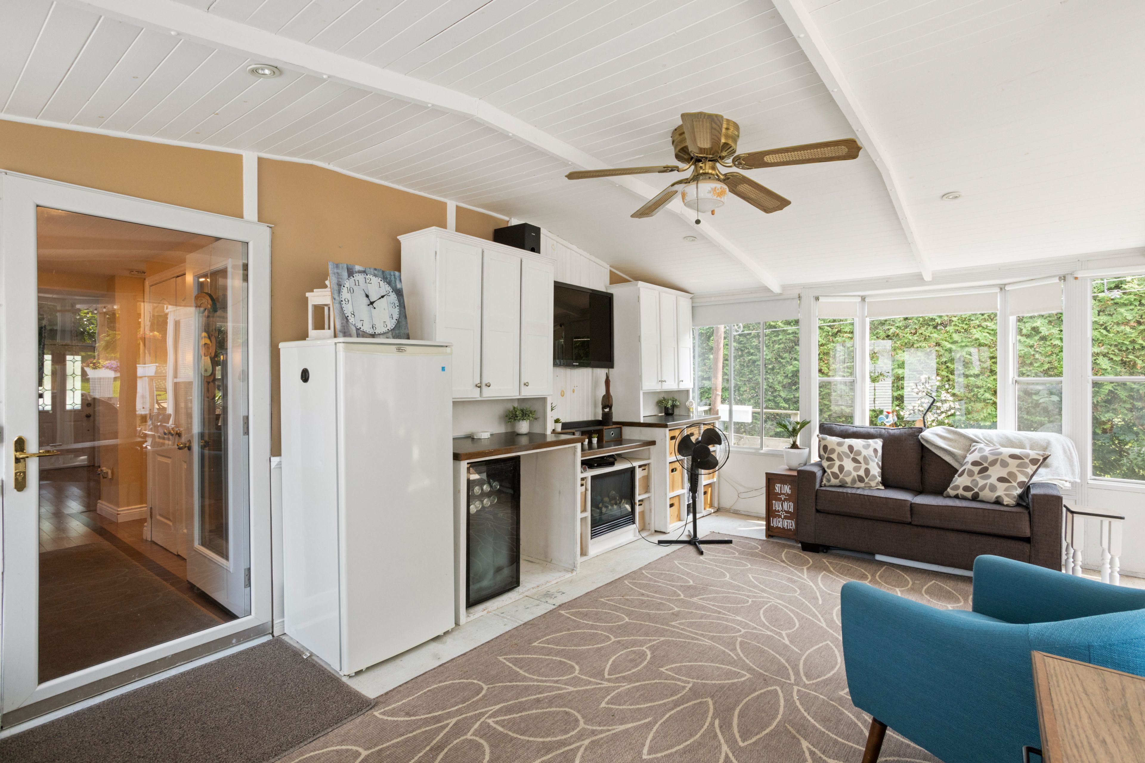 • Bright three-season sunroom overlooking a beautifully landscaped yard.
