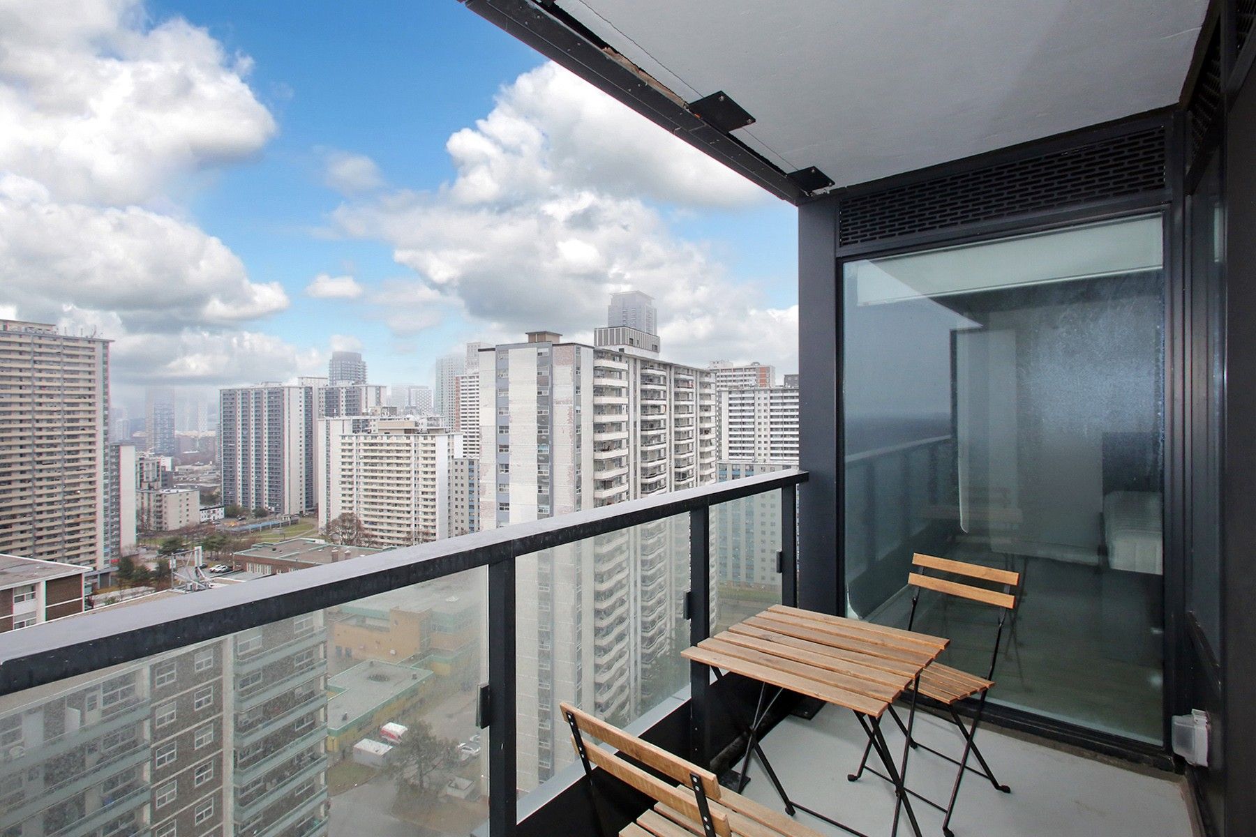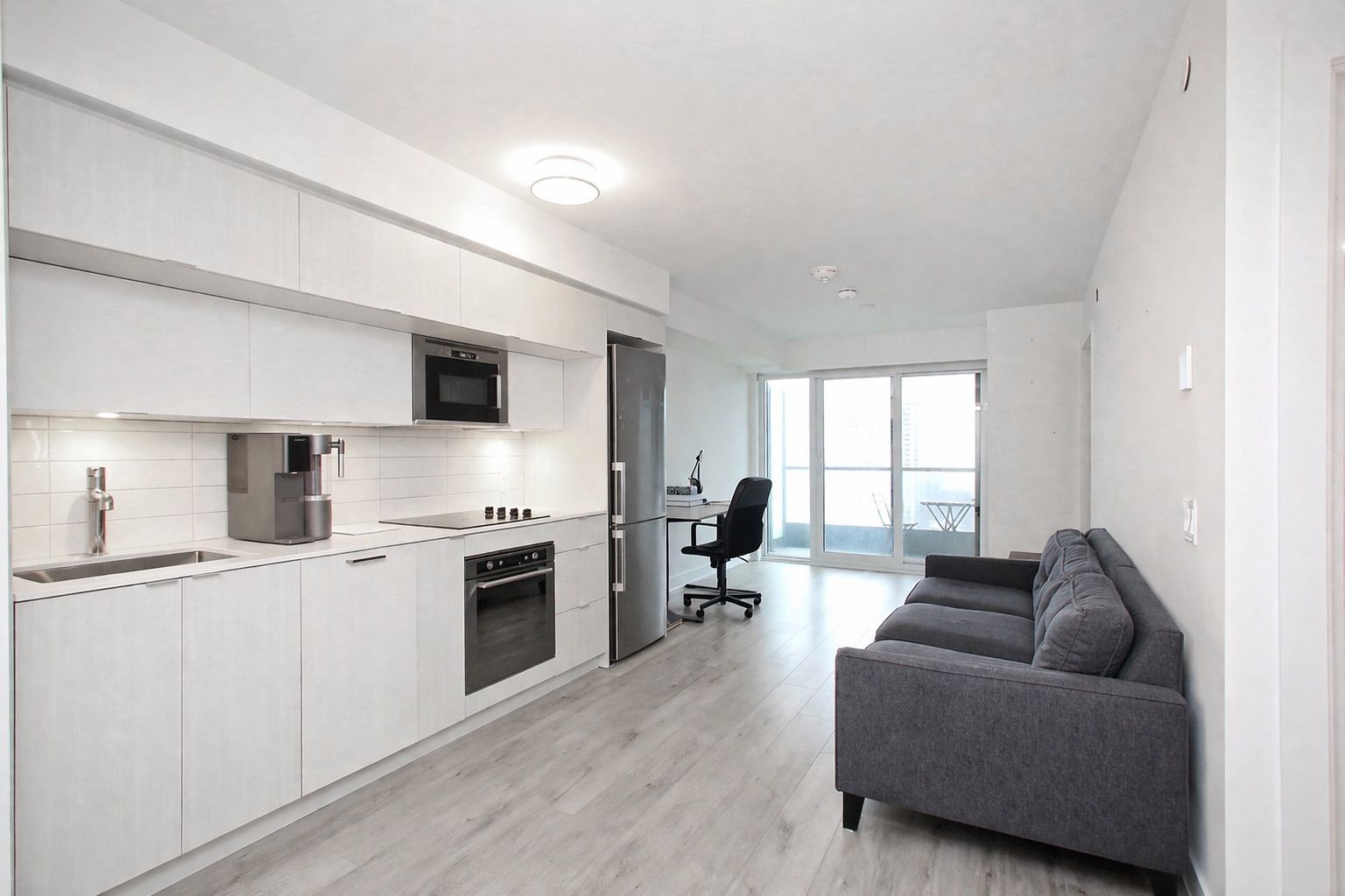 • Bright modern unit with floor-to-ceiling windows and city views.