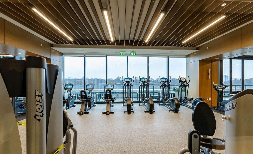 • Resort-style amenities including a rooftop pool and gym.
