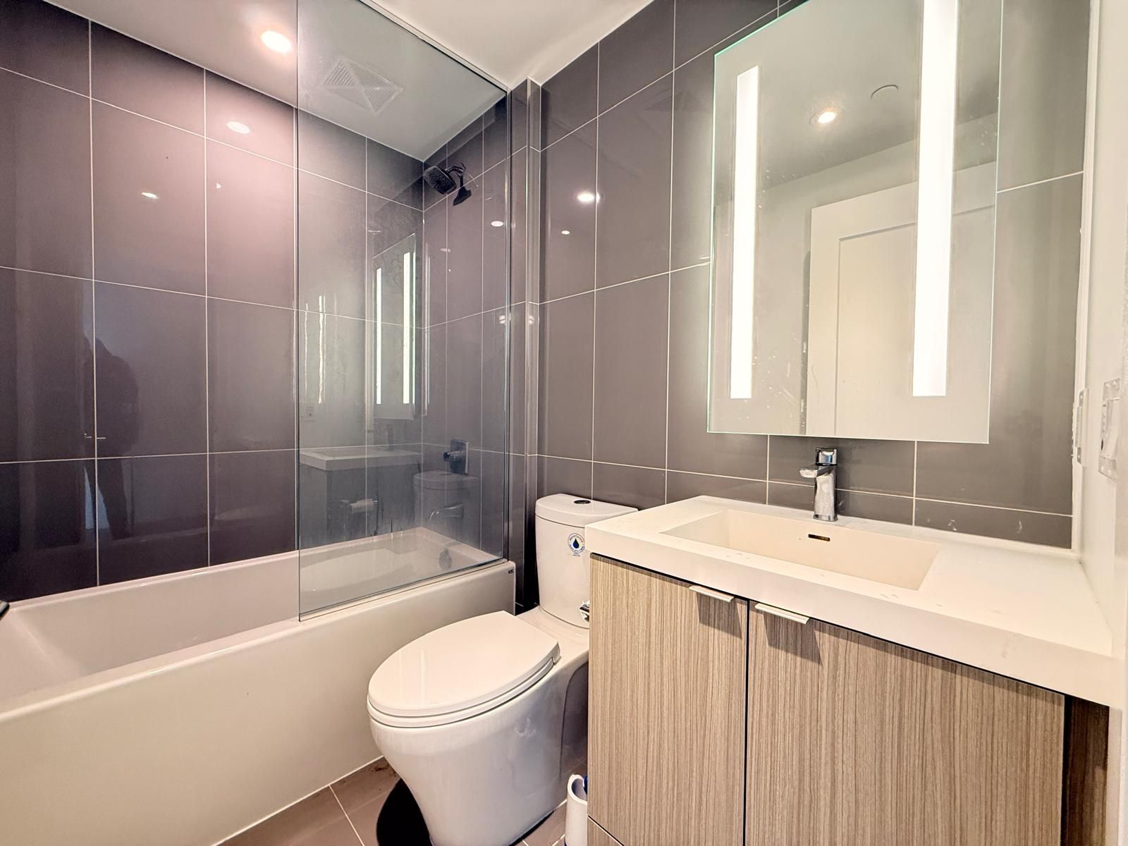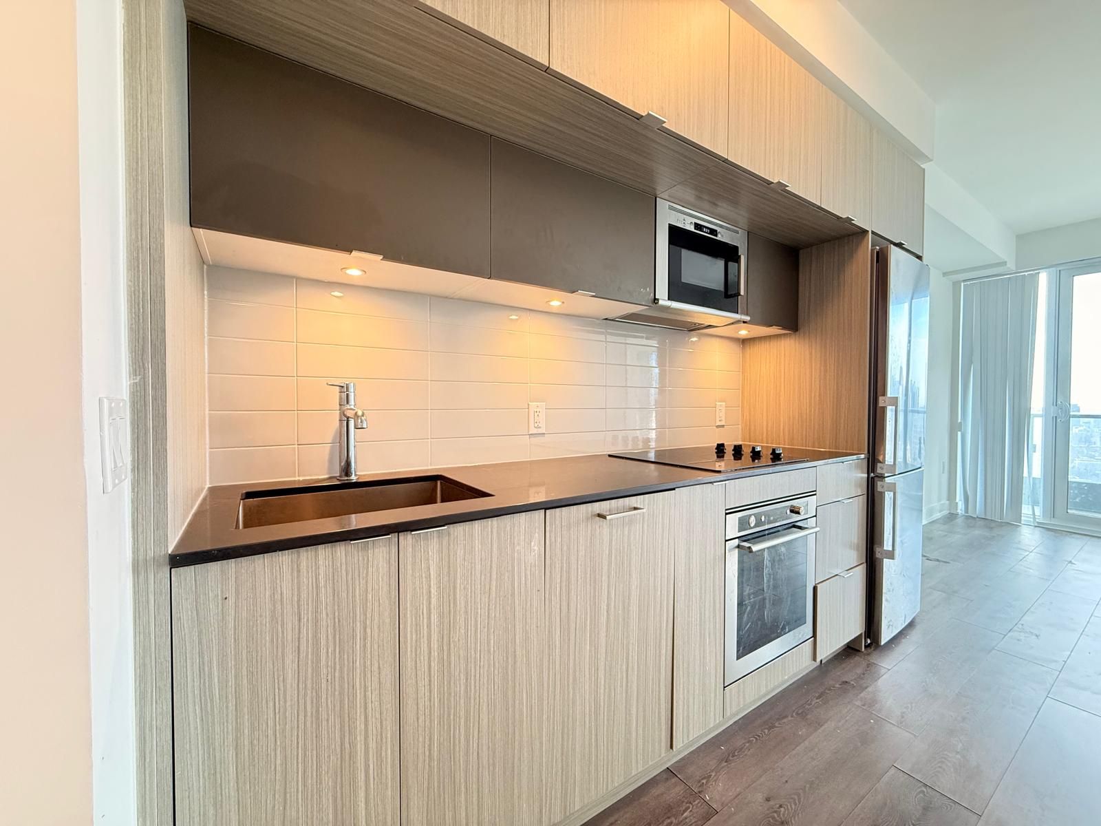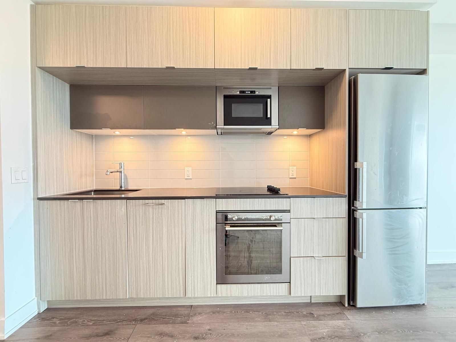 *locker included* this luxury 1 bedroom + den and 2 full bathroom condo suite offers 635 square feet of open living space. Located on the 32nd floor, enjoy your views from a spacious and private balcony. This suite comes fully equipped with energy efficient 5-star modern appliances, integrated dishwasher, contemporary soft close cabinetry, ensuite laundry.