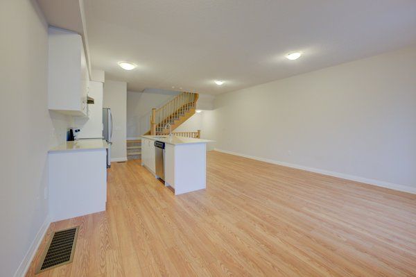 • Spacious open-concept living area with a stylish upgraded kitchen.