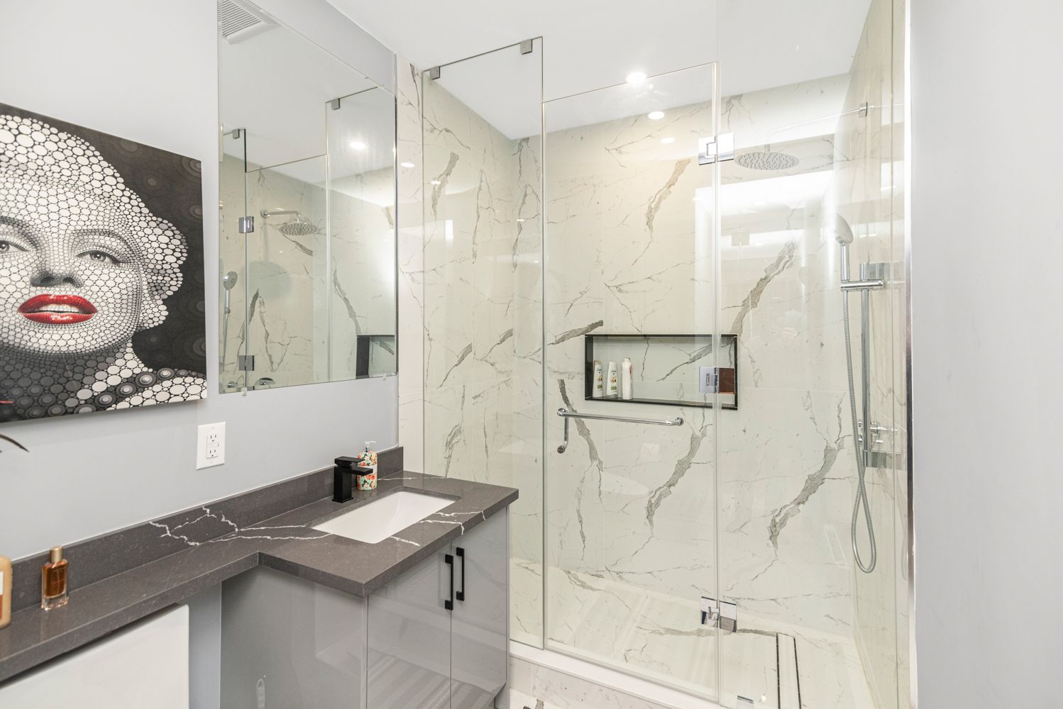 • Includes two full bathrooms and in-suite laundry for convenience.