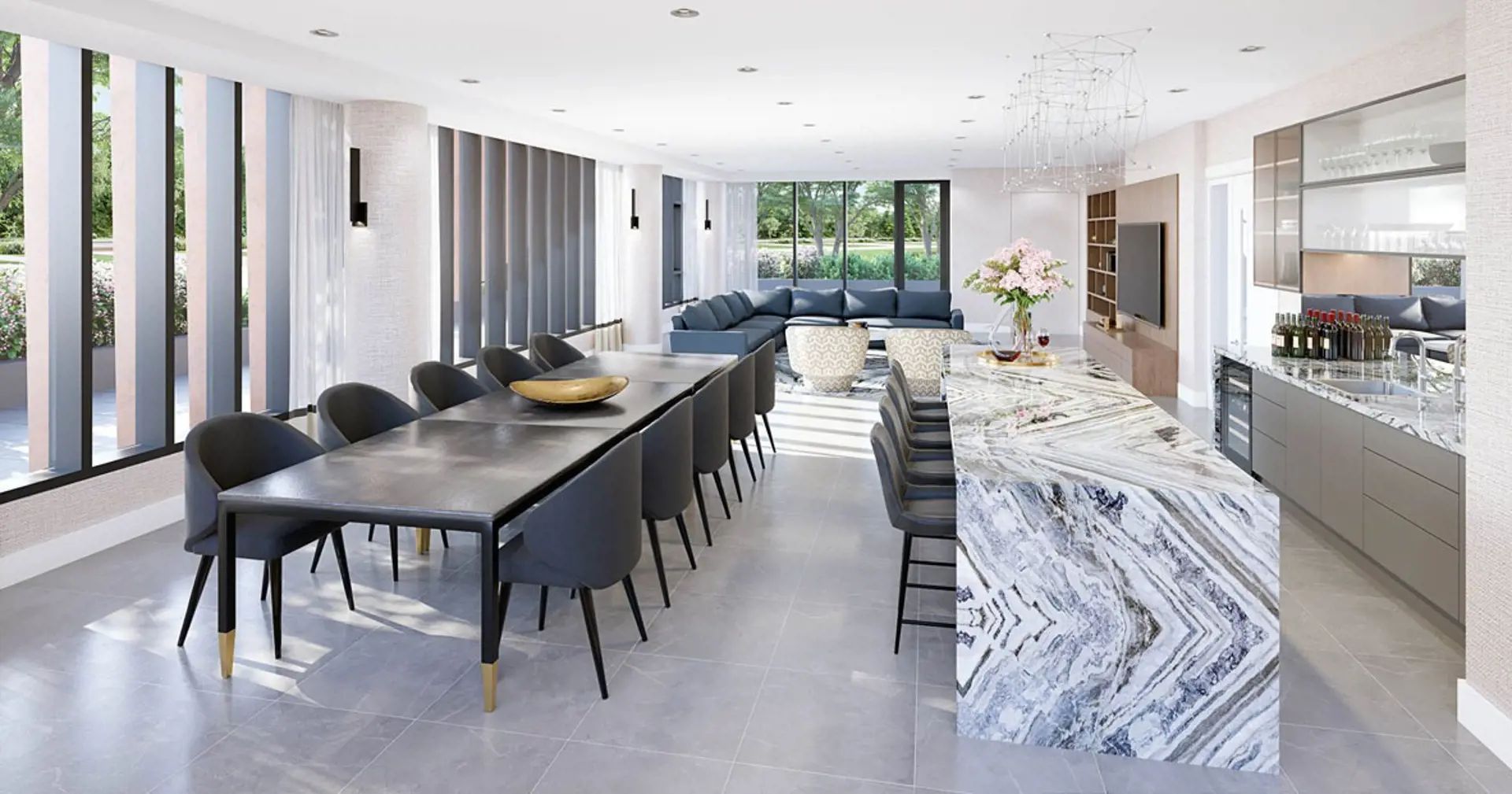 • Modern kitchen featuring high-end finishes and built-in appliances.