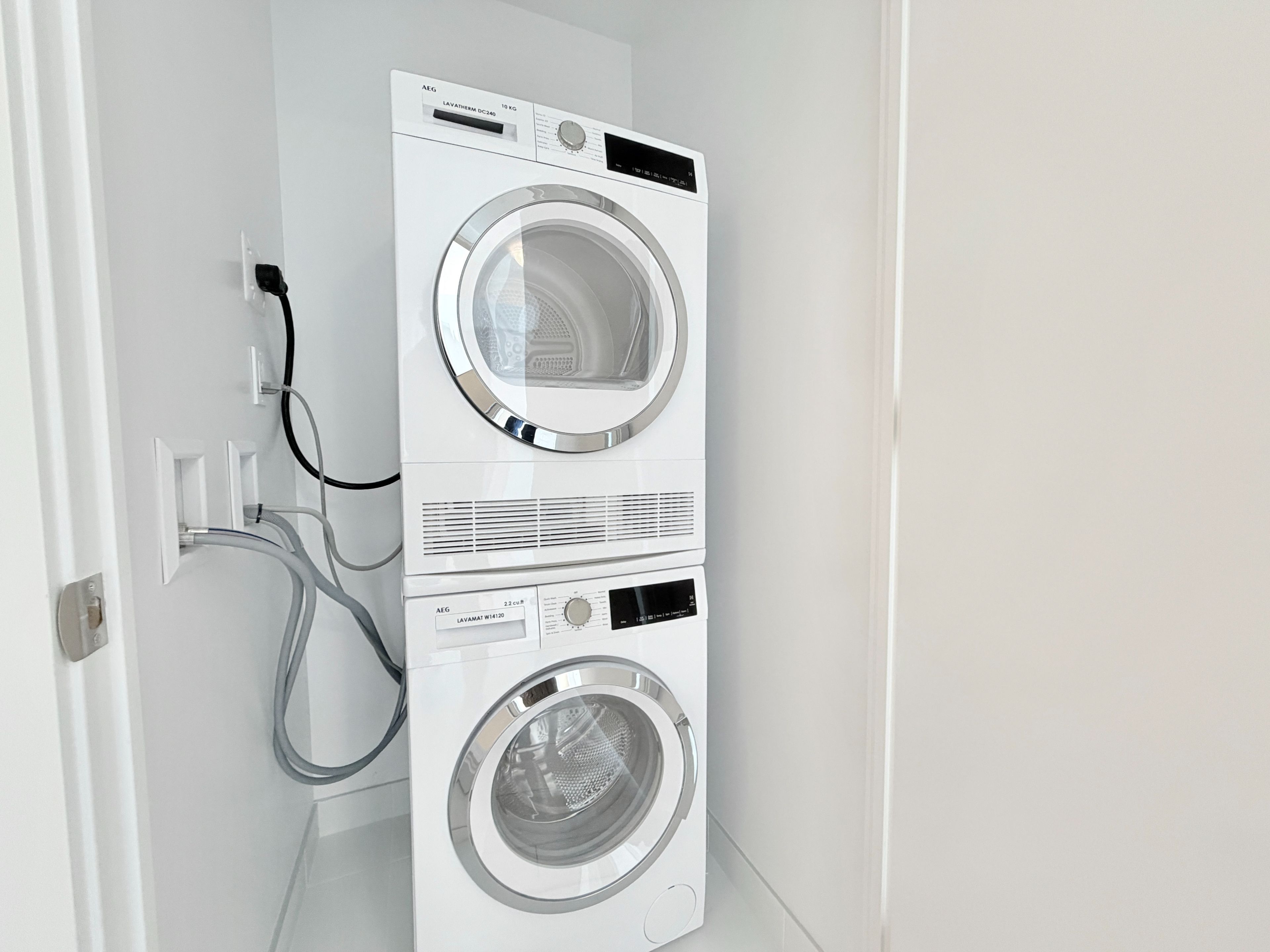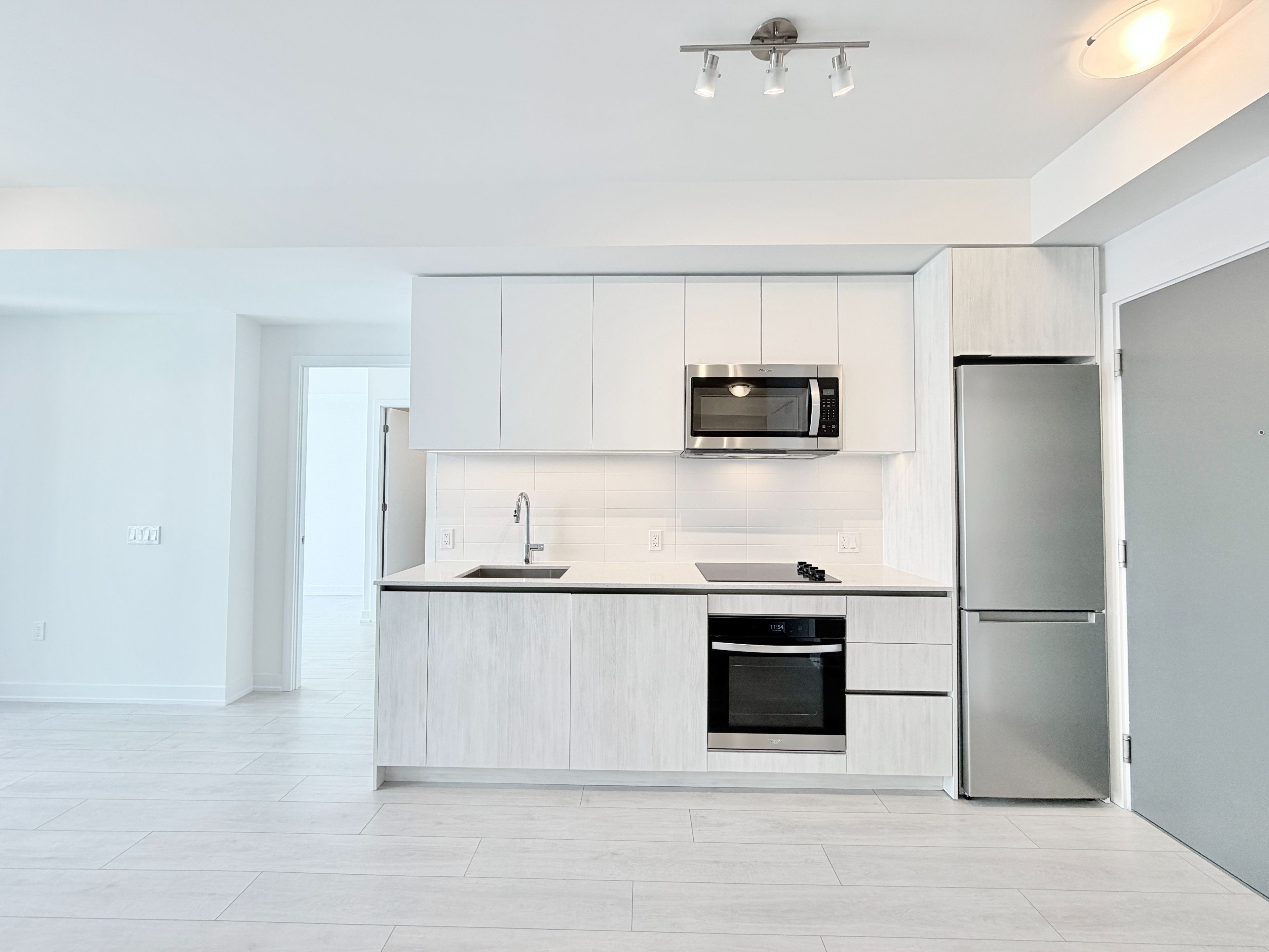 • Modern kitchen features quartz countertops and stainless steel appliances.