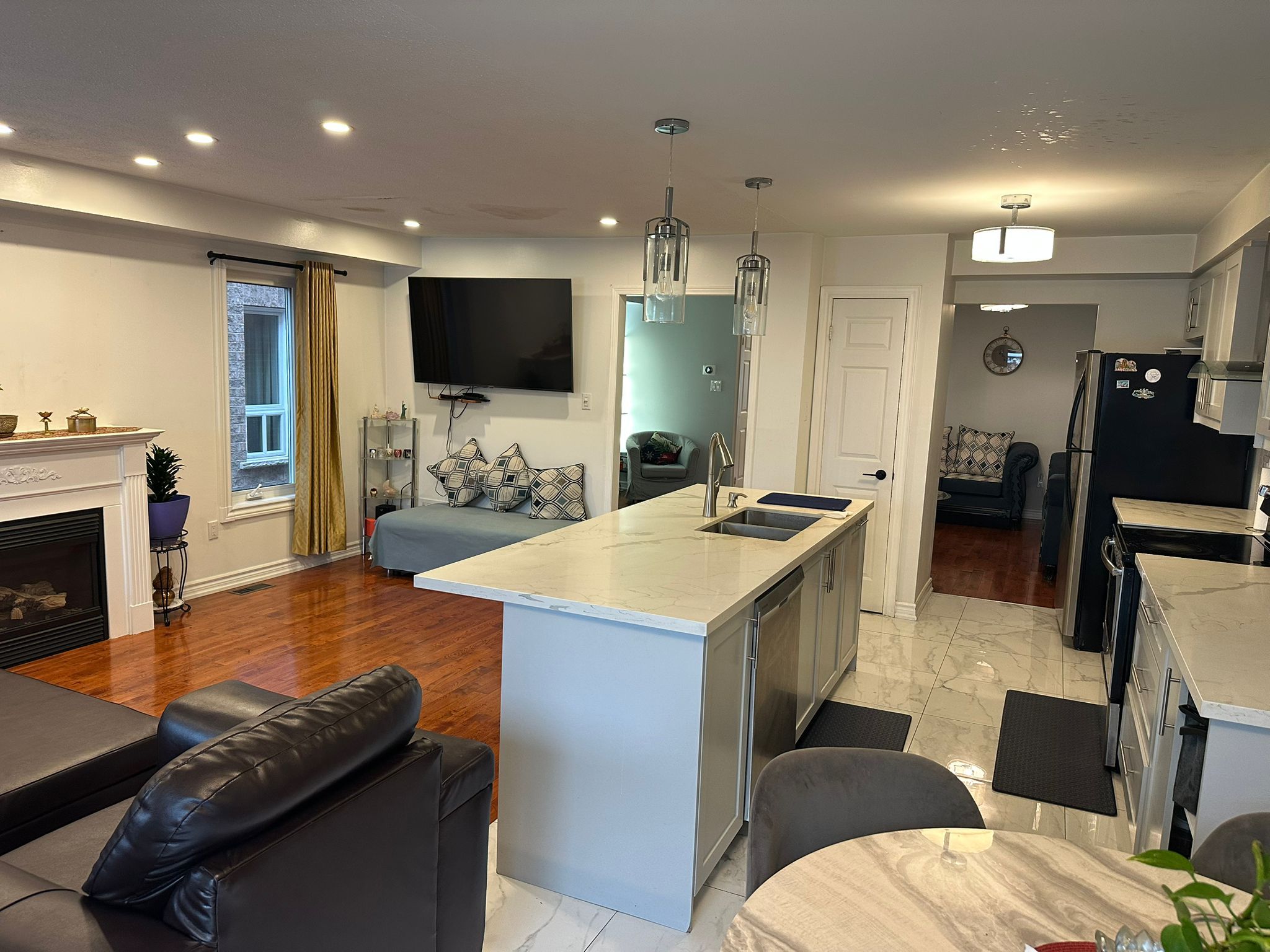 • Spacious family room featuring a cozy gas fireplace for relaxing nights.