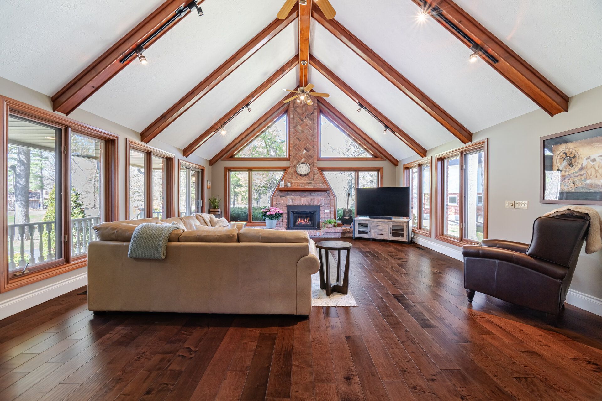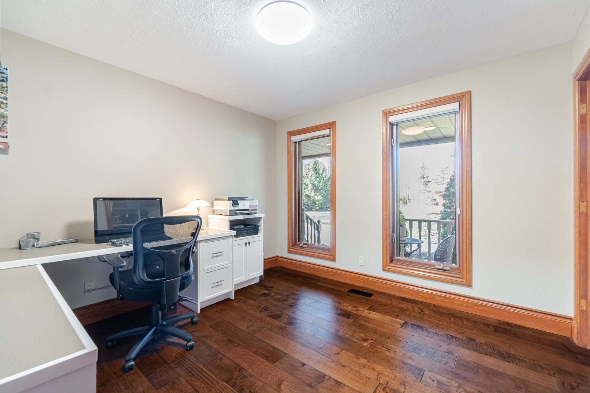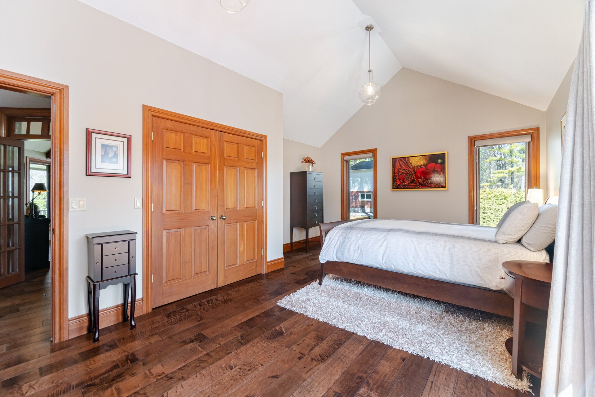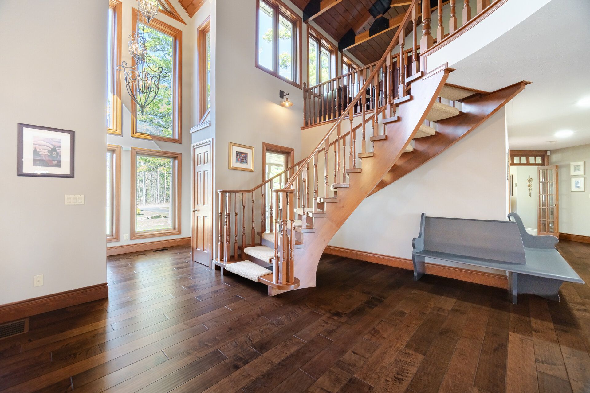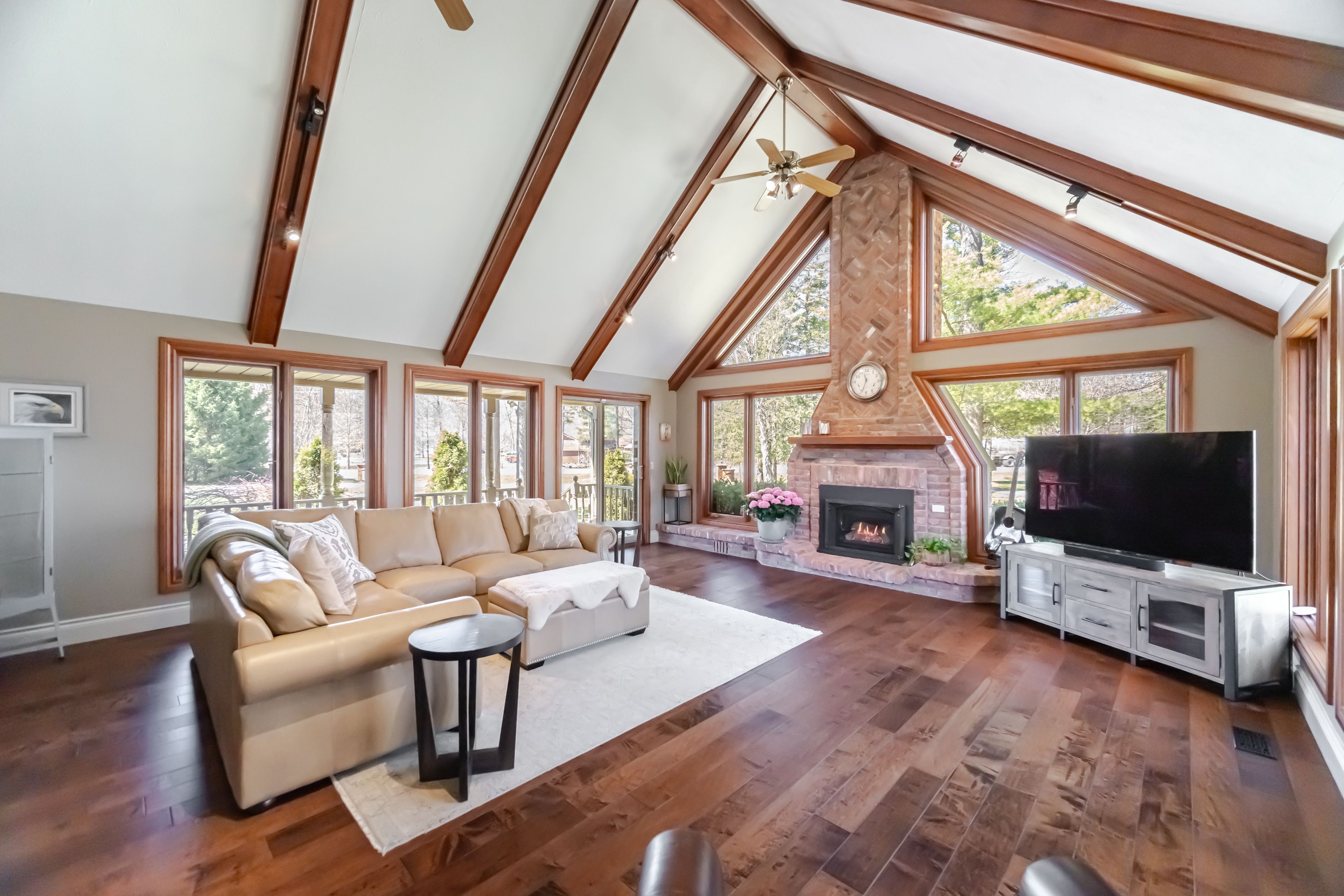 Stunning country estate !!! This one-of-a-kind masterpiece with main floor principle bedroom suite captivates from the very first glance with unmatched curb appeal and it's distinctive design. A true architectural gem, the home showcases custom exposed timber and iron construction, offering a dramatic welcome with soaring 26-ft ceilings in the foyer & great room. Anchoring the space is a striking gas stove and dramatic staircase just two of of the many bespoke touches throughout. The chefs kitchen is a showstopper in its own right, thoughtfully positioned between the great room & the expansive rear deck. Designed for seamless indoor-outdoor living, its perfect for entertaining on any scale, from intimate gatherings to grand events incorporating the sparkling heated saltwater pool, hot tub, deck, & beyond. Prepare to be awestruck yet again in the window-walled family room, where vaulted ceilings rise above a stunning floor-to-ceiling brick fireplace. Here, panoramic views of the beautifully manicured grounds, create a tranquil yet breathtaking backdrop for family gatherings. The main floor offers 2 bedrooms, including an expansive primary suite that feels like a private retreat. It features a luxurious 5-piece spa-style bath w/glass shower enclosure, a generous walk-in closet & direct access to the deck through a private walkout. Additional features include renovated 3 piece bath & laundry rm. The sweeping, open-riser circular staircase leads to the equally impressive upper level. Here you'll find two spacious bedrooms, a sleek and modern 3-piece bathroom, and a versatile loft-style den or studio area. The open-to-below wrap around balcony offers a front-row seat to the craftsmanship of the handcrafted artistry that defines this remarkable home. For the hobbyist or diy, an incredible bonus awaits: heated 1,200 sq ft- accessory building, equipped with a 3-piece bathroom. This versatile space is ideal for a workshop, studio- home gym, the possibilities are endless!