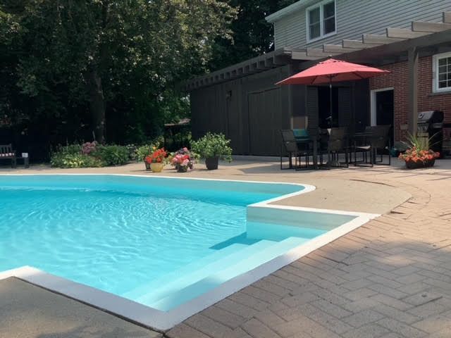 • Spacious backyard features a unique concrete pool and outdoor entertaining space.