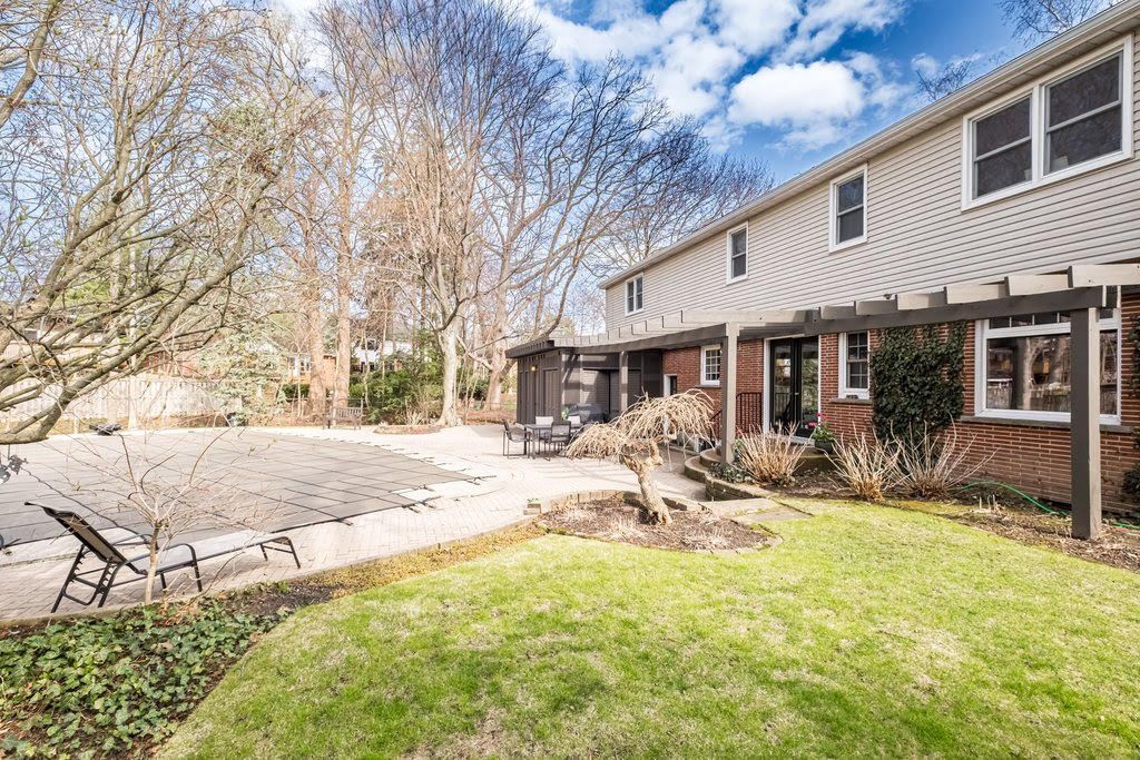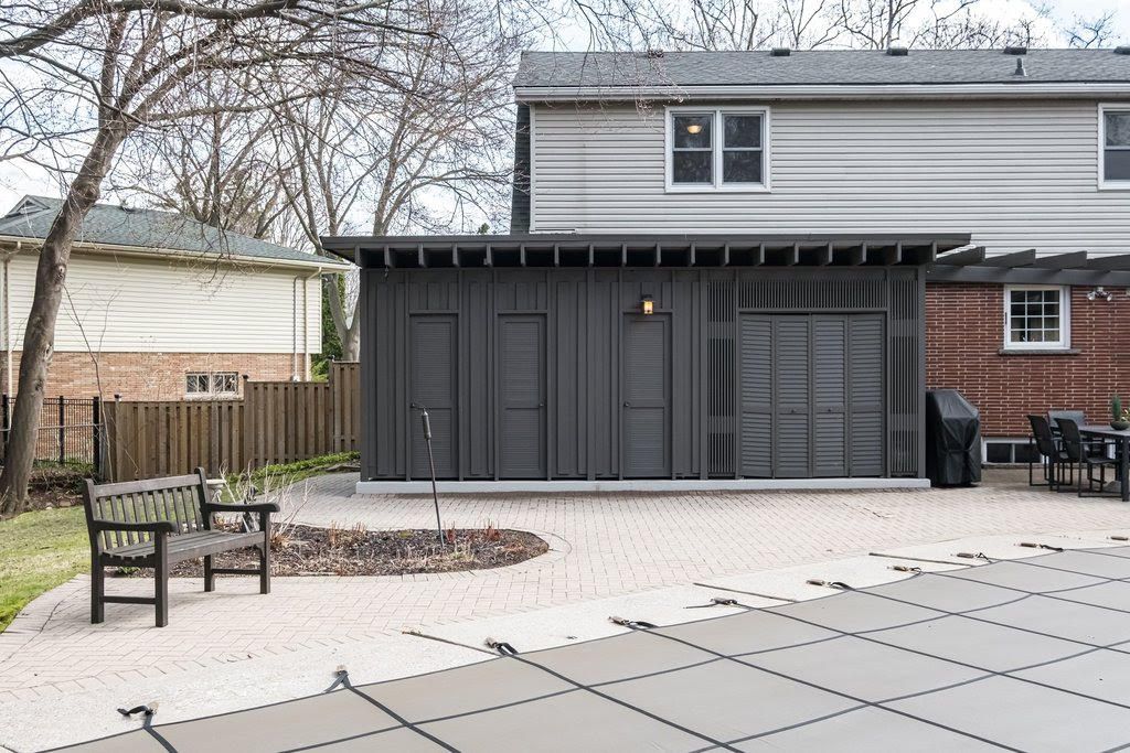 This is the kind of home that rarely comes to market, offered for the first time in nearly half a century. Proudly owned by the same family since 1977, it has been lovingly maintained and cared for throughout the years. Set in a neighbourhood where life still feels the way it used to, kids spill out onto the street for hockey games, ride their bikes until dusk, and knock on doors to see who can come out and play. Surrounded by parks, green space, and trails just minutes away, outdoor living is part of everyday life. The backyard is truly one of a kind. A concrete pool anchors the space, while the cabana with bar and 3 piece bath keeps the activity outdoors where it belongs. Long summer days turn into effortless evenings entertaining family and friends, all set to the backdrop of a nearby stream and birdsong. The home reflects a cape cod influenced design with mid century charm. A symmetrical front, original red brick, and clean lines give it a timeless presence. Set on a mature lot with established trees, the approach is as calming as it is inviting. Inside, the layout is designed for family living. The main floor offers a walk out to the deck, an eat in updated kitchen, living room with fireplace, dining room, and a tucked away nook ideal for an office or library overlooking the backyard, perfect for bird watching. Upstairs features four bedrooms, including a spacious primary with walk in closet, 4 piece ensuite, and views of the trees and stream. Two full bathrooms (total) complete the second level. The lower level offers a family room and open space with potential for a games room, gym, or additional living area. Heated 20' x 40' chlorine pool. A quiet court location, strong sense of community, and a home that blends character with everyday practicality.