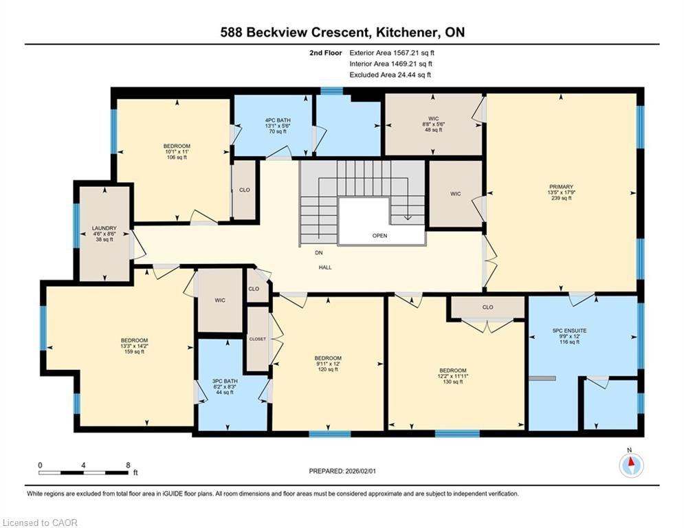 Offers anytime. Million dollar view! Large 5+3 bedroom executive home with a legal basement apartment & walkout basement - backing onto greenspace! Welcome to 588 beckview crescent, kitchener - a truly exceptional two-storey home offering space, versatility, and upscale finishes throughout. This impressive residence features 8 bedrooms and 7 bathrooms, ideal for large families, multi-generational living, or savvy investors. The carpet-free hardwood main floor is bright and inviting, offering a convenient 2-piece bath and a spacious open-concept family and dining area anchored by a cozy gas fireplace and filled with natural light. The chef-inspired kitchen showcases a large island, ample cabinetry, stainless steel appliances, and a walkout to the back deck - perfect for everyday living and entertaining. Upstairs, you'll find five generously sized bedrooms, including a luxurious primary suite with a 5-piece ensuite and two walk-in closets. Two bedrooms share a jack & jill 3-piece bathroom (one with a walk-in closet), while another bedroom enjoys a private 4-piece cheater ensuite. A conveniently located second-floor laundry room completes this level. The fully finished legal basement adds incredible value, featuring three bedrooms, each with its own 3-piece ensuite, a bright recreation room, a kitchen, ample storage, and a rare walkout basement. Additional highlights include parking for 5 vehicles, a double-car garage, no rear neighbours, and a private backyard overlooking peaceful greenspace. A rare opportunity in a sought-after kitchener neighbourhood-this home truly checks every box.