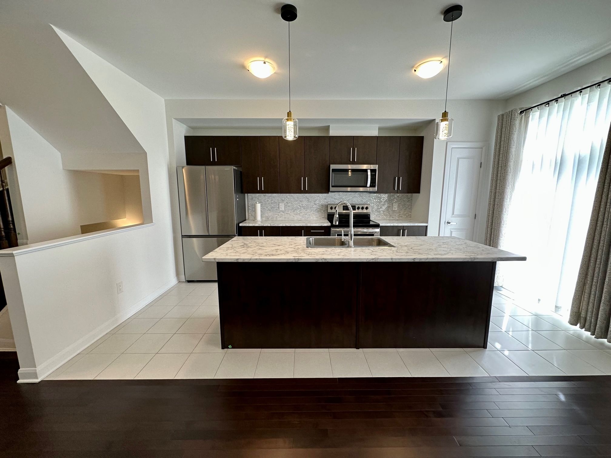 • Upgraded kitchen features stainless steel appliances and a large island.
