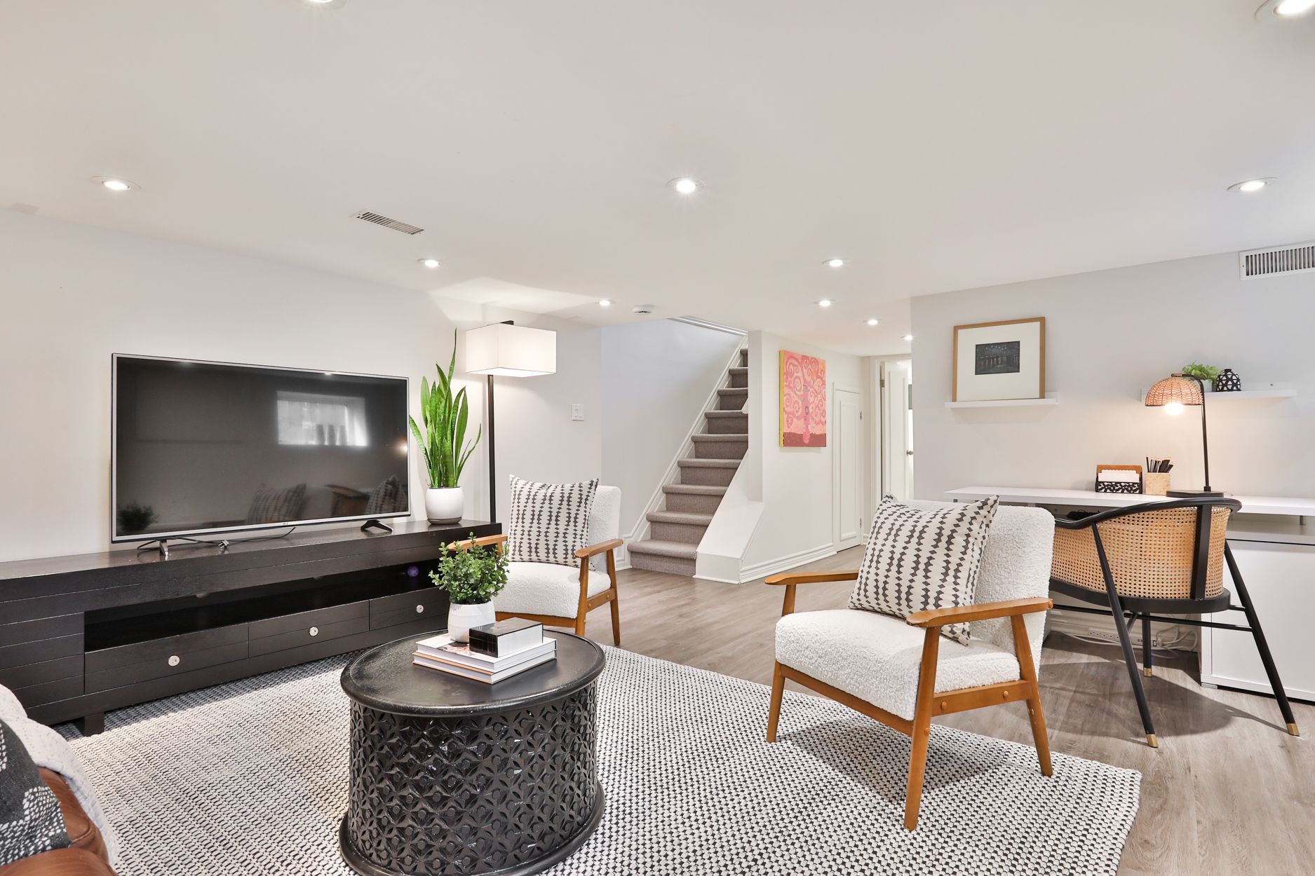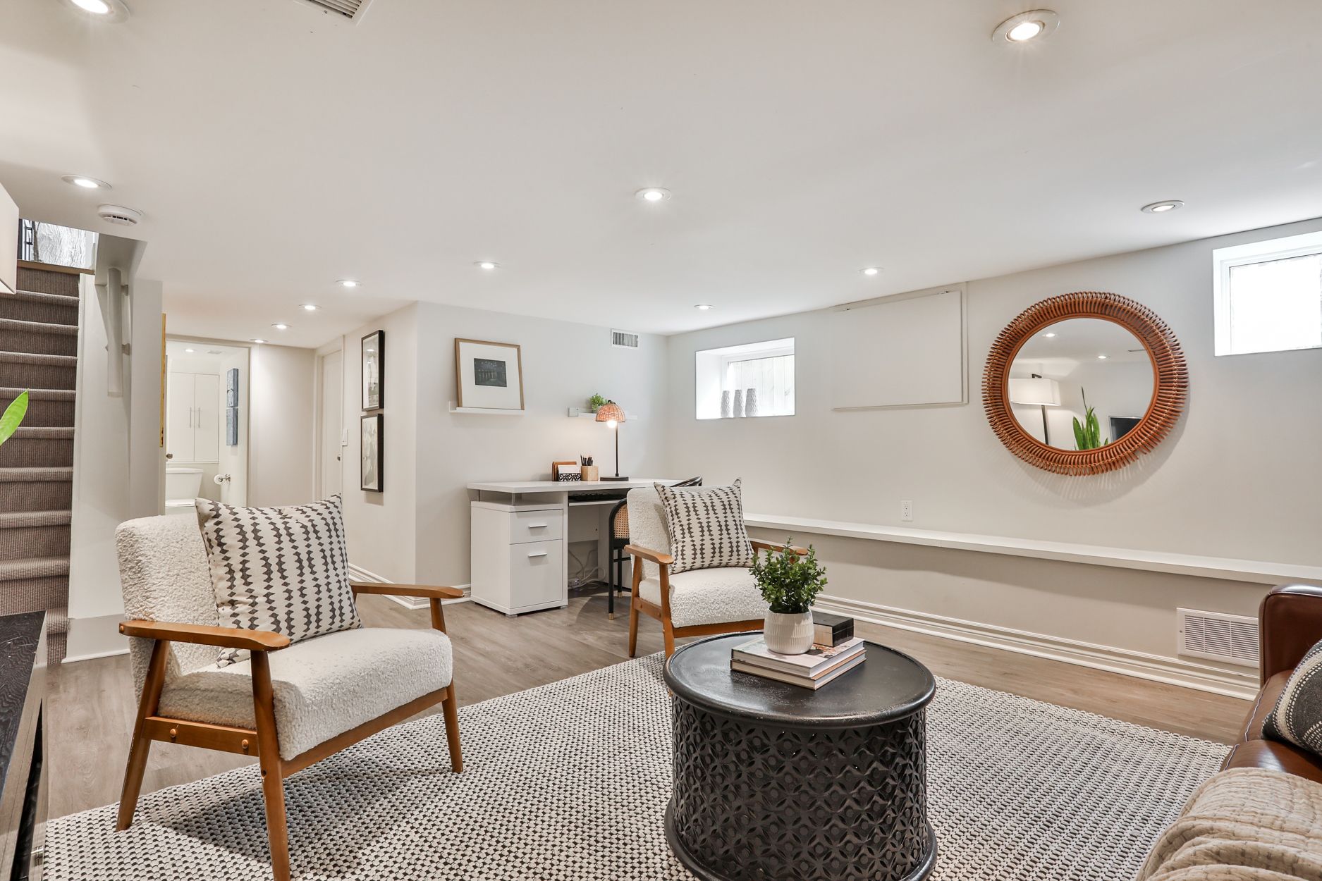 • Lower level offers a versatile retreat with ample storage and bright spaces.