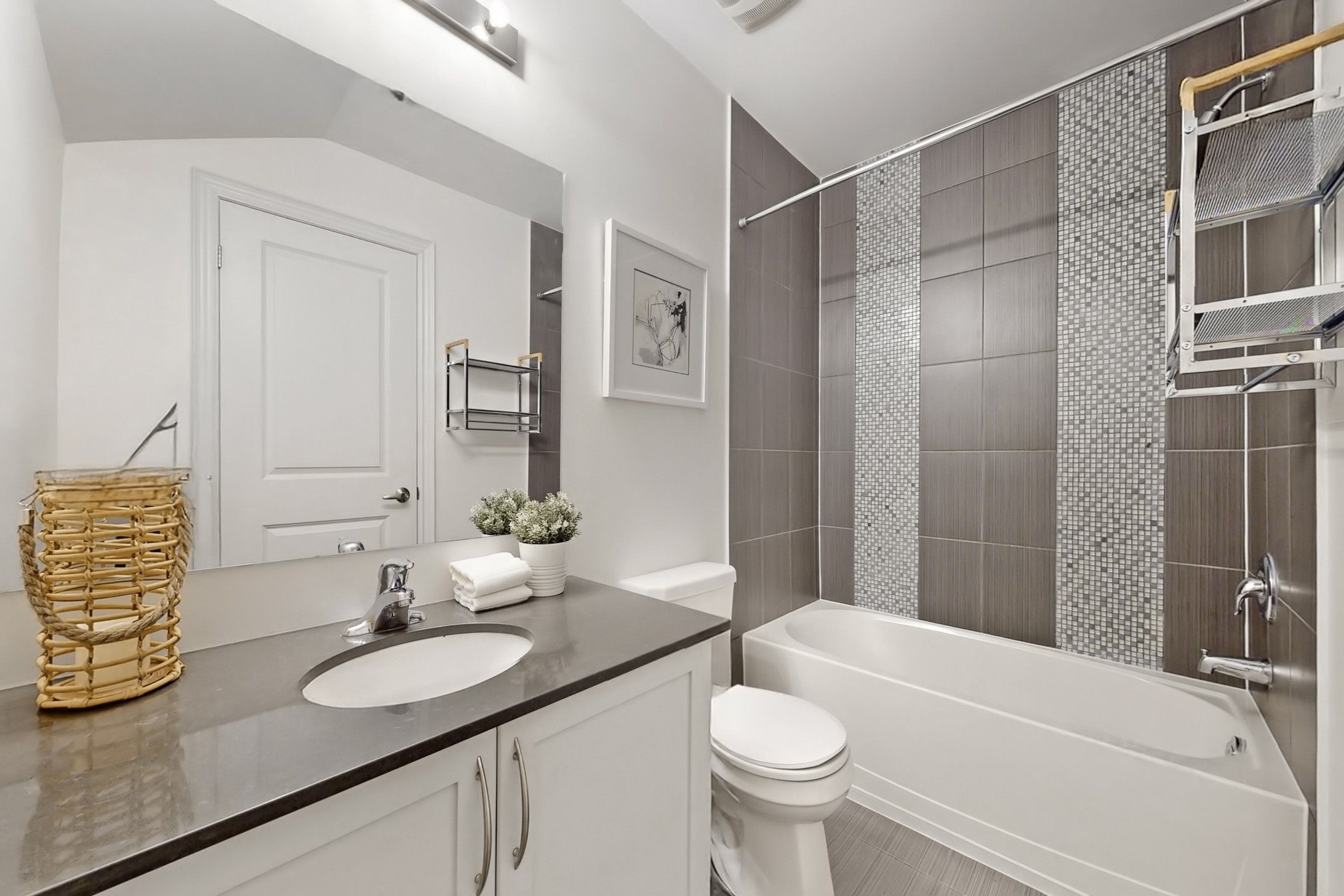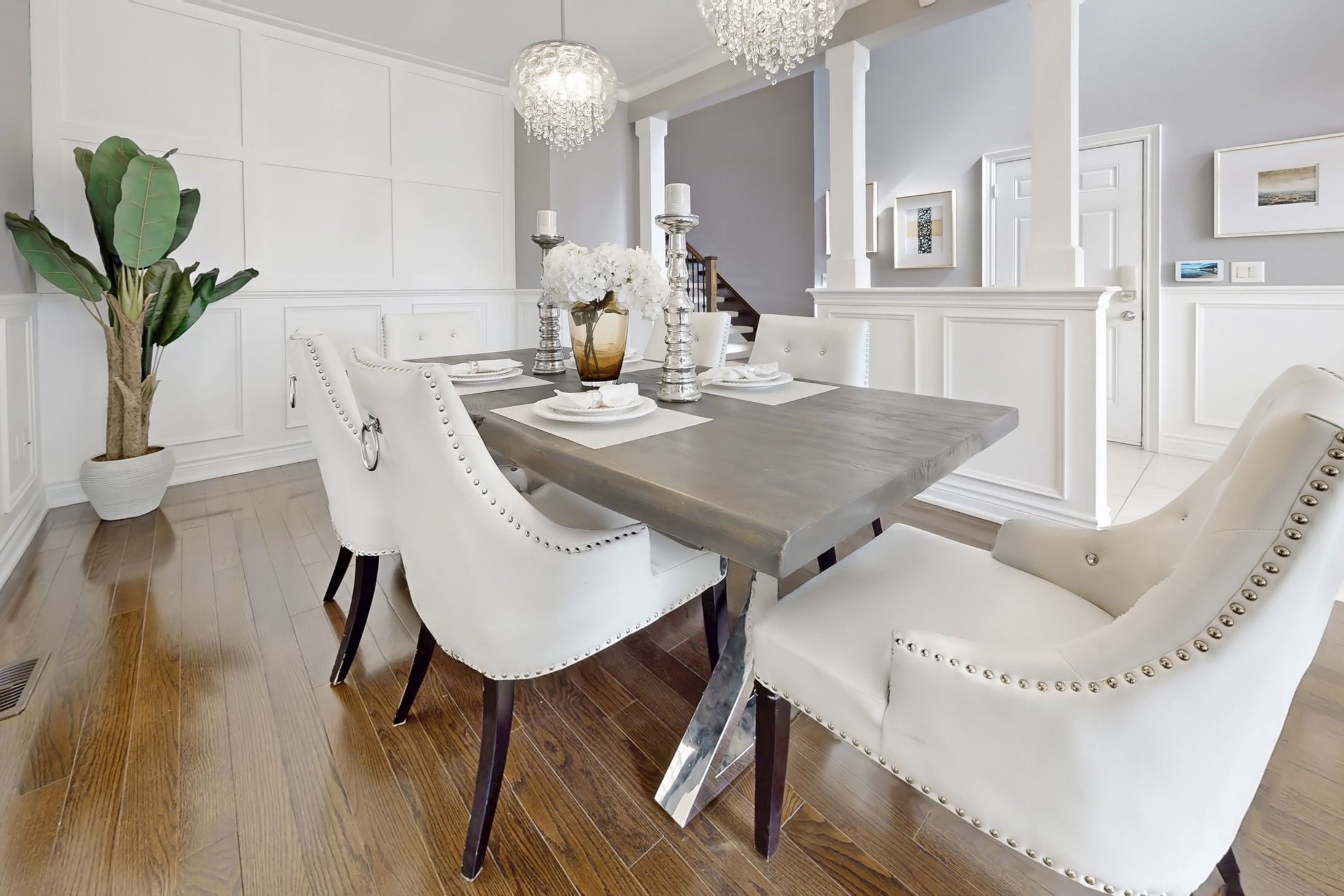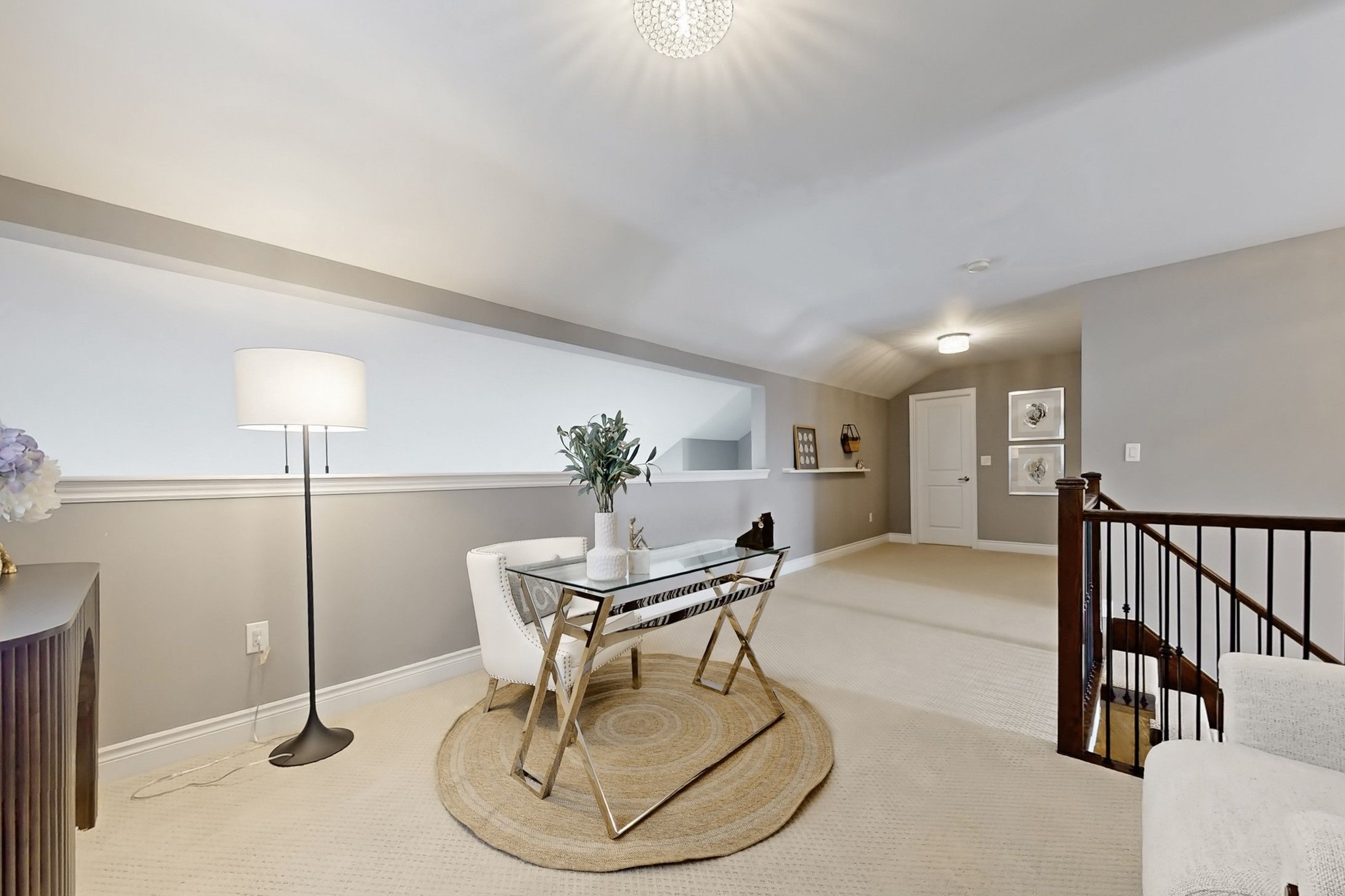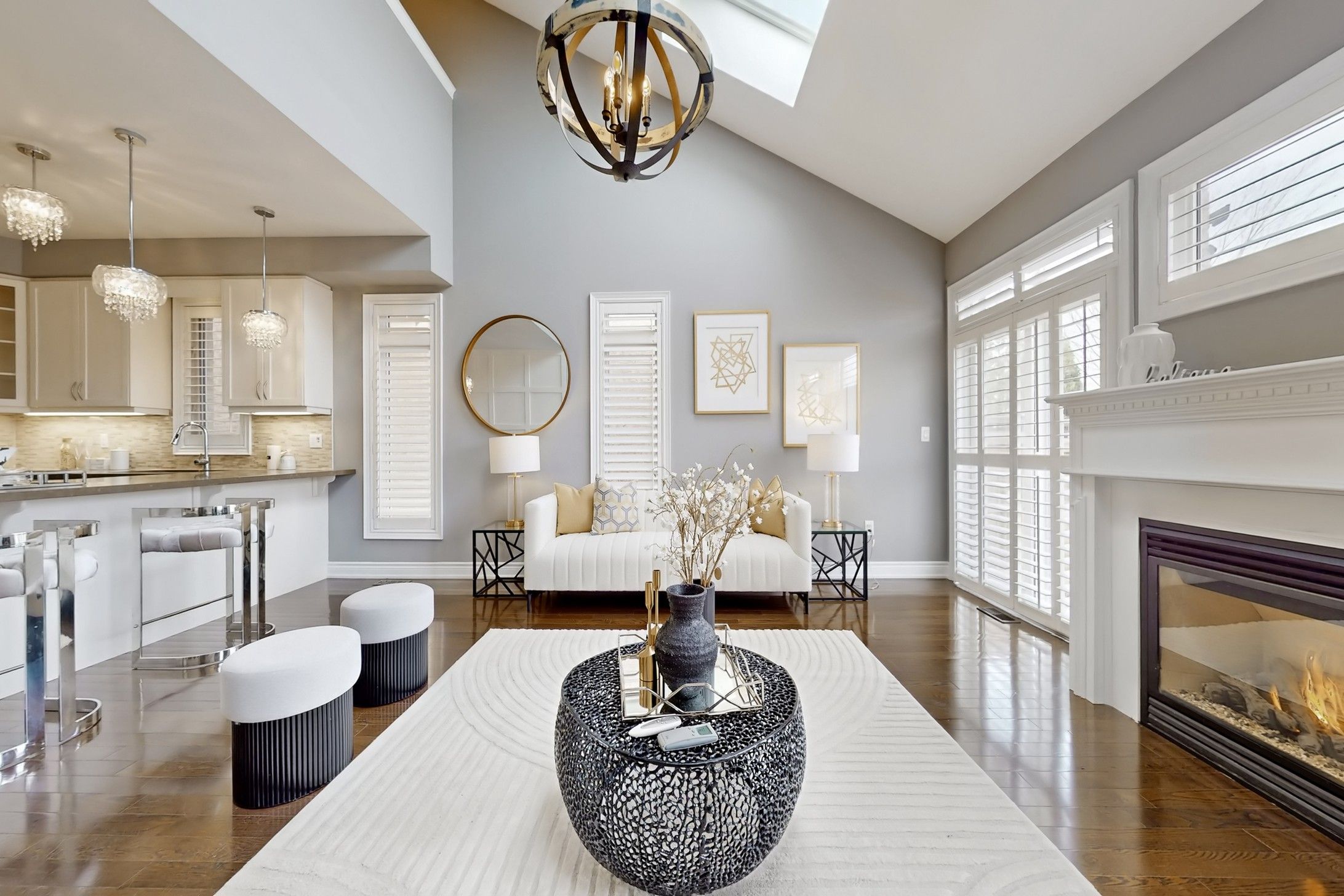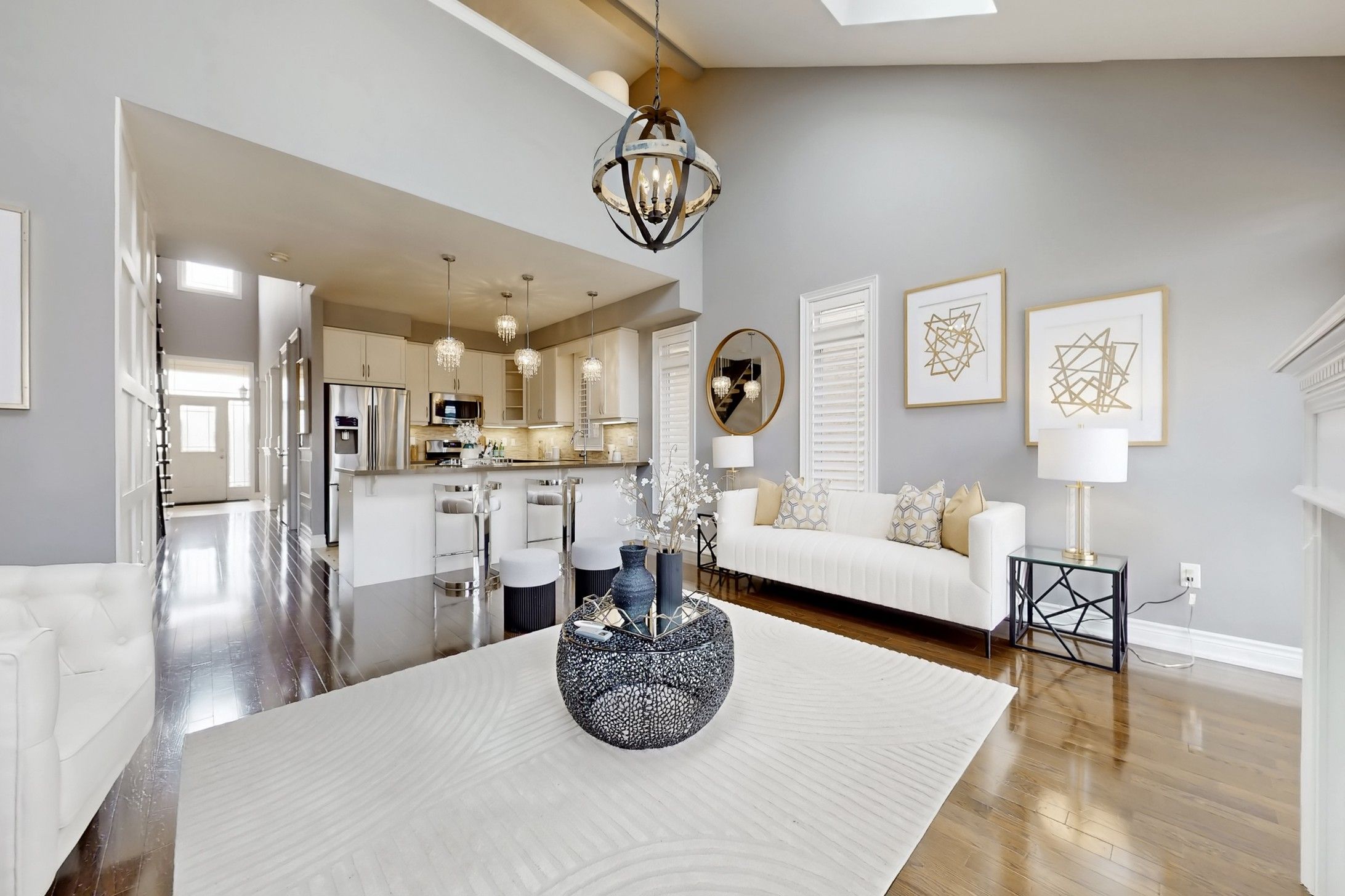 • Dramatic 17-ft foyer and vaulted ceilings enhance modern appeal.