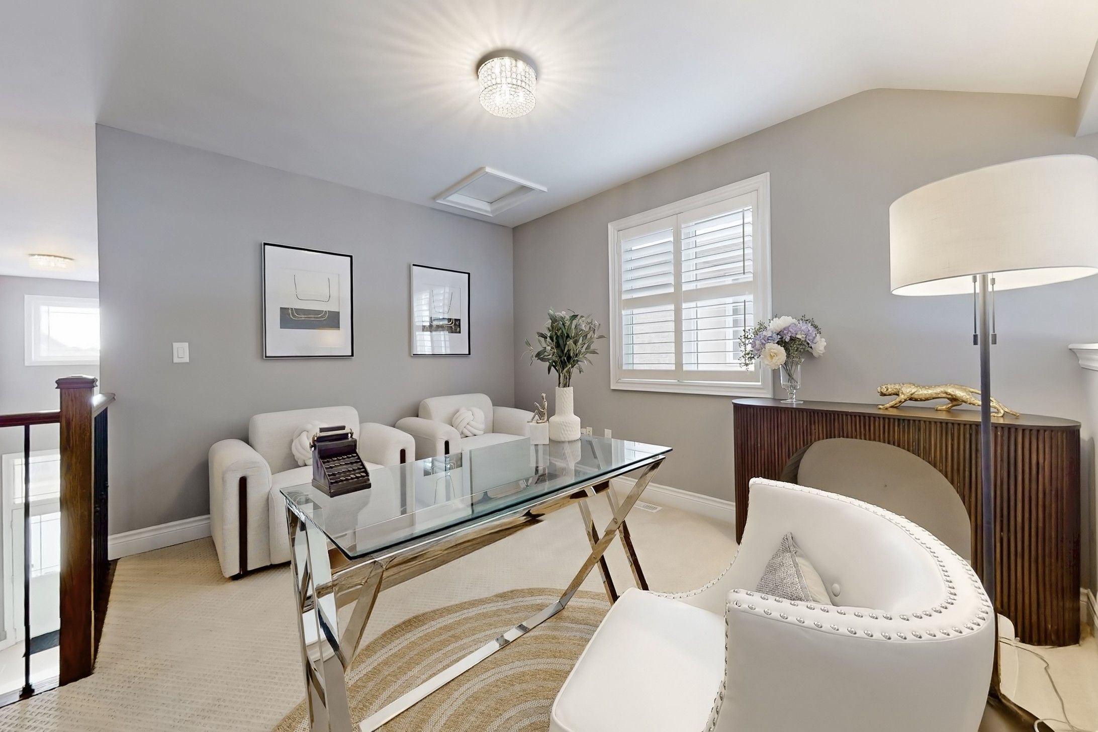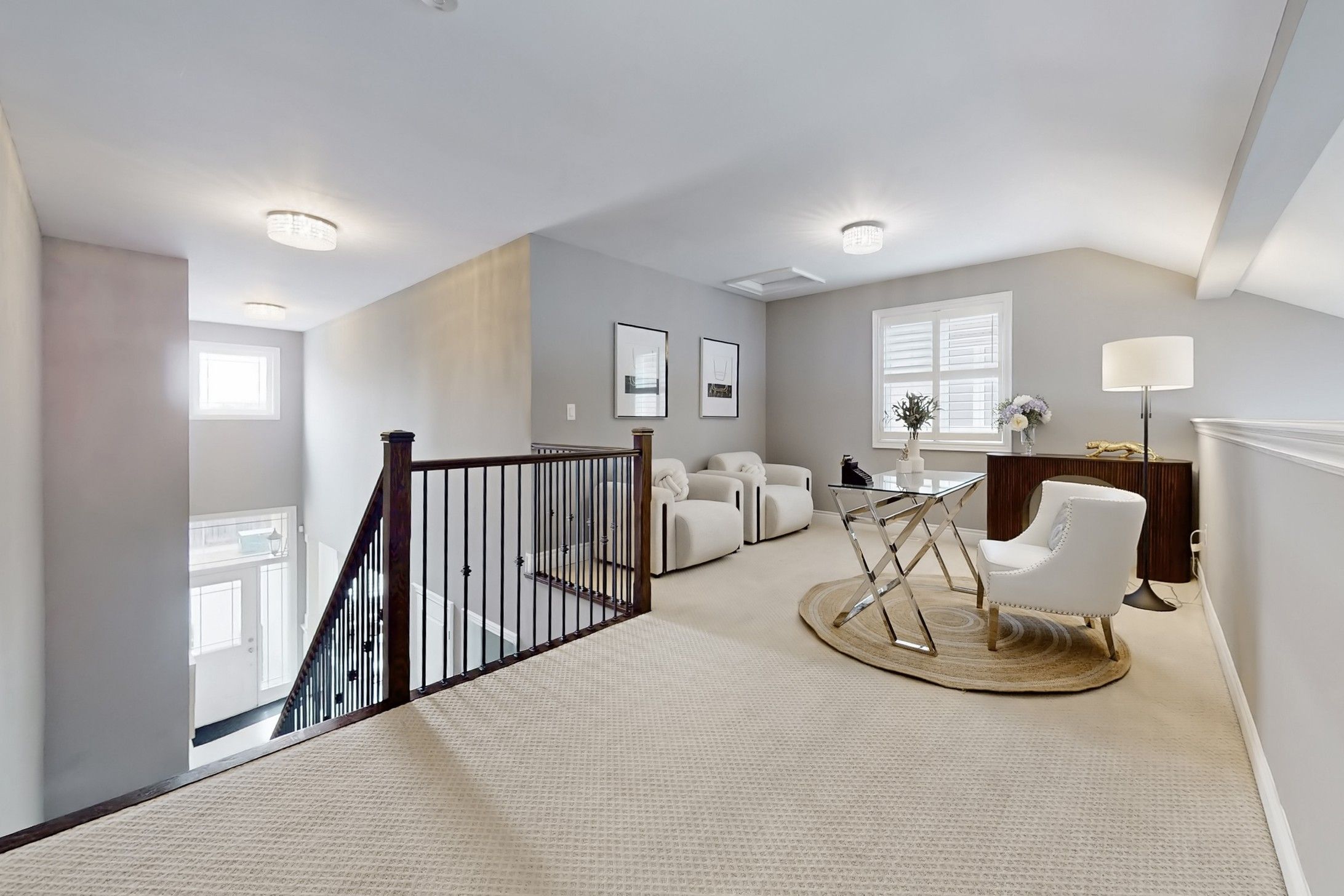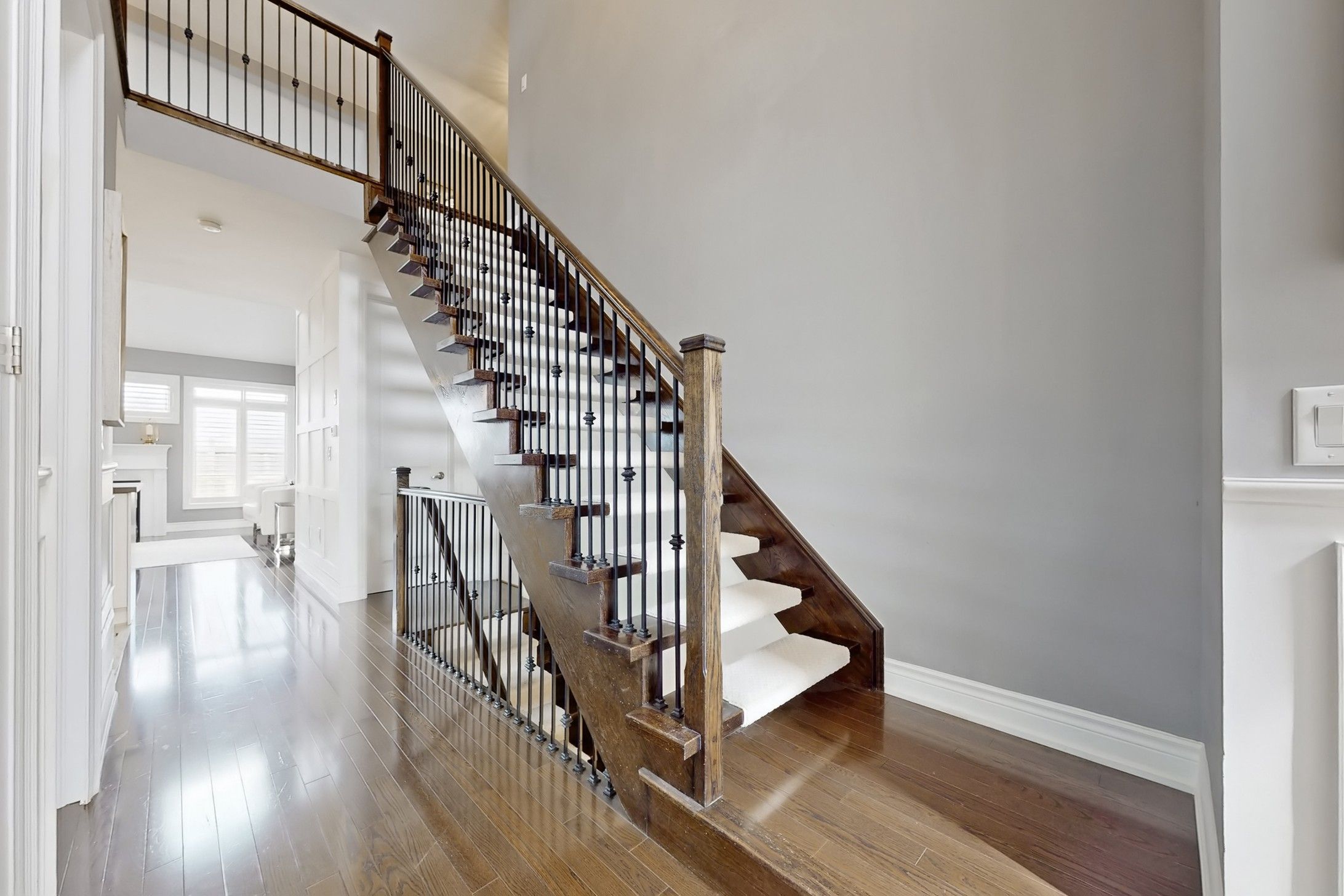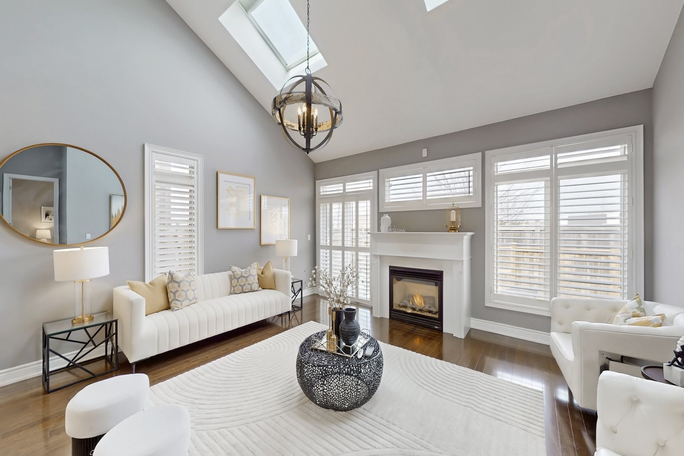 Welcome to one of milton's most sought-after communities! Situated on a rare 43-ft wide lot, this beautifully designed bungaloft offers 3+2 bedrooms and 3 bathrooms, showcasing an elegant stone and stucco exterior with professionally landscaped front yard that exudes curb appeal. Step inside to discover refined finishes throughout, including 9-ft ceilings, 8-ft doors, rich hardwood flooring, and a striking open-rise oak staircase with wrought iron pickets. The home welcomes you with a formal living and dining area-perfect for both entertaining and everyday living. A standout feature of this loft-style home is the impressive approx. 17-ft open-to-above foyer and hallway, creating a dramatic sense of space and modern sophistication. At the rear, the upgraded gourmet kitchen seamlessly connects to the spacious family room, forming a bright and functional open-concept layout ideal for today's lifestyle. The family room is truly a showstopper, featuring a vaulted ceiling with two skylights and hunter douglas motorized blinds, filling the space with natural light while offering comfort and convenience. The main level includes two generously sized bedrooms and two full bathrooms, highlighted by a luxurious primary retreat with a private ensuite. Upstairs, you'll find an additional bedroom and a versatile loft space-perfect as a home office, lounge, or media area. A partially finished basement provides additional living space and excellent future potential. Unbeatable location-just steps to milton sports centre, parks, top-rated schools, and all essential amenities. This is a rare opportunity to own a stylish and spacious home in a prime family-friendly neighborhood.
