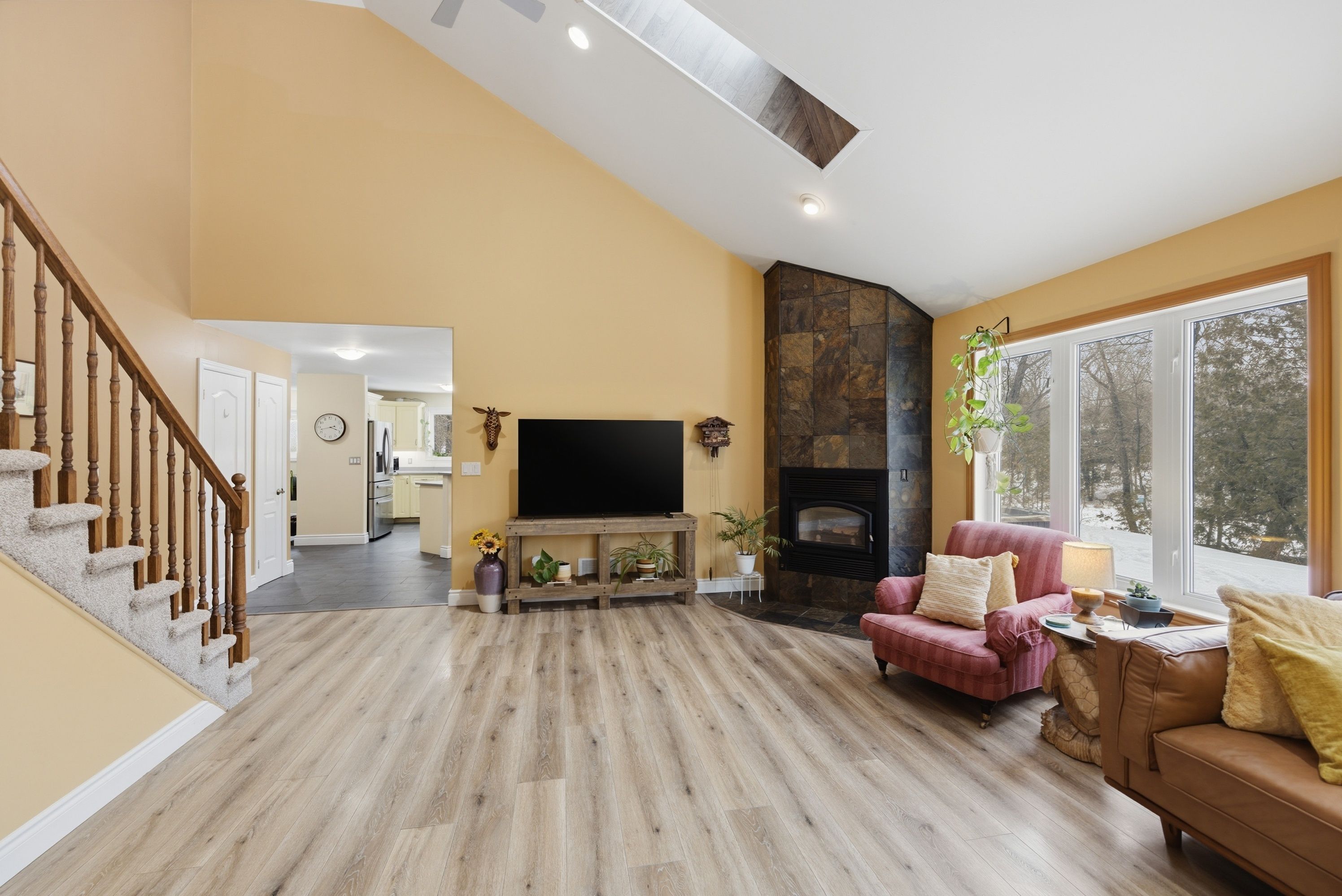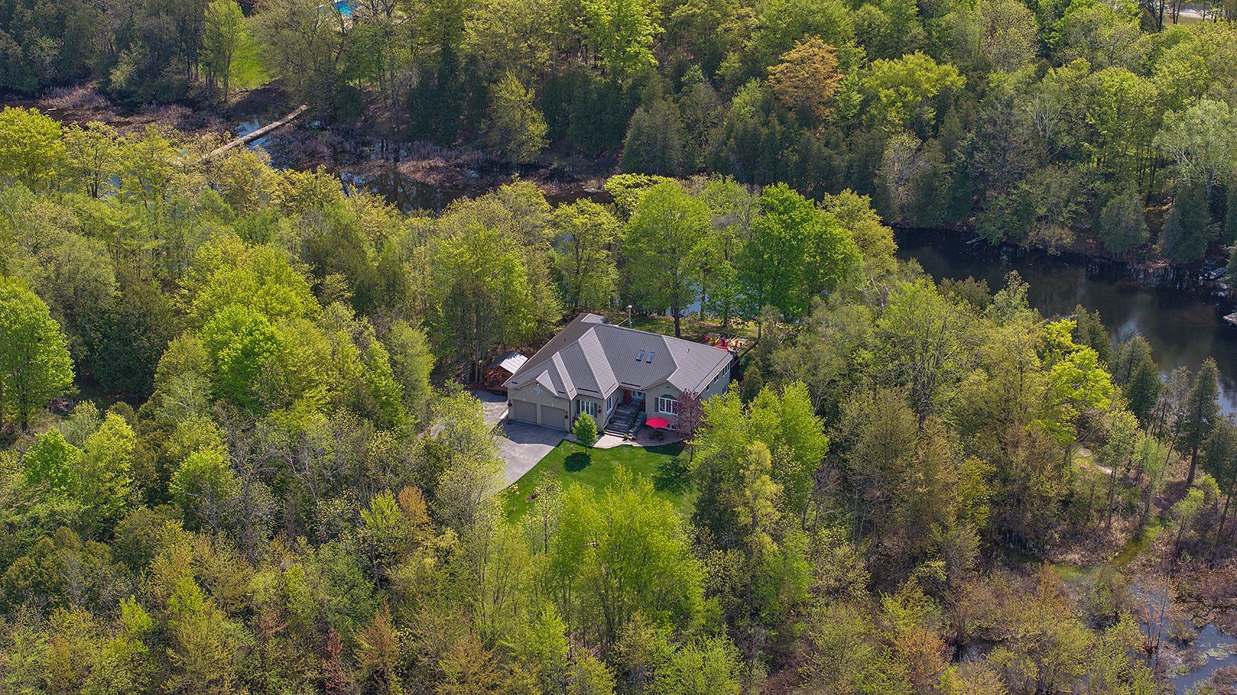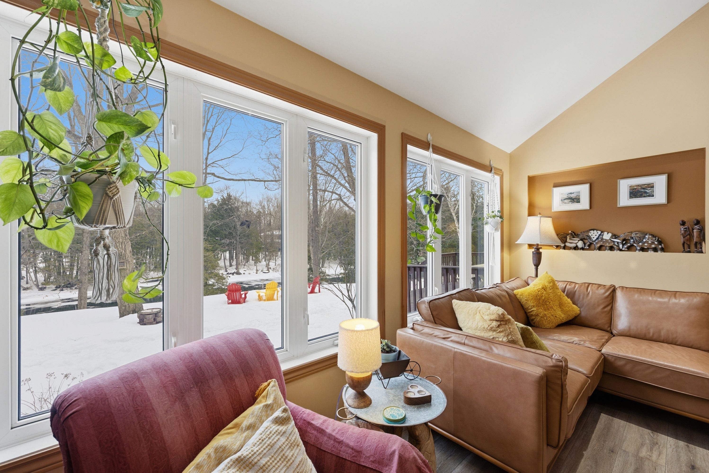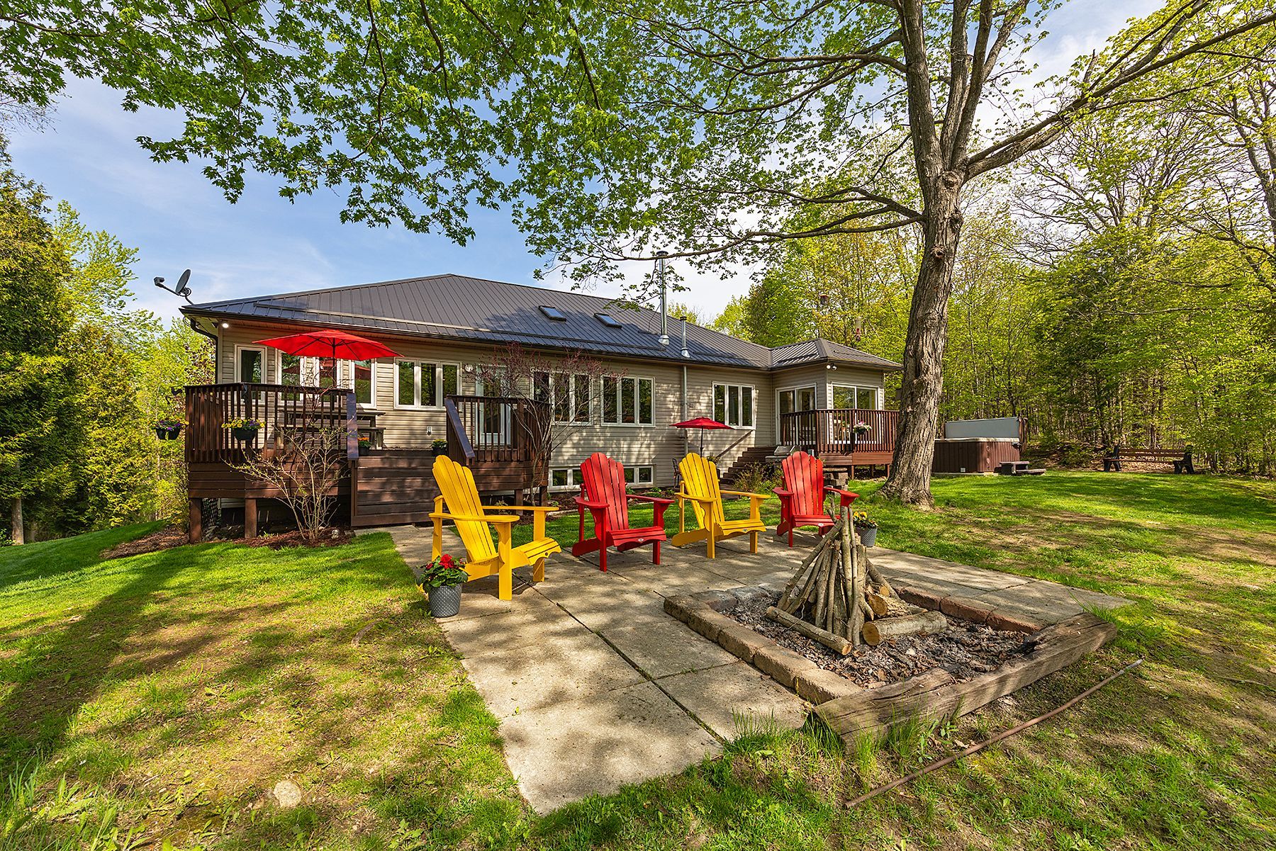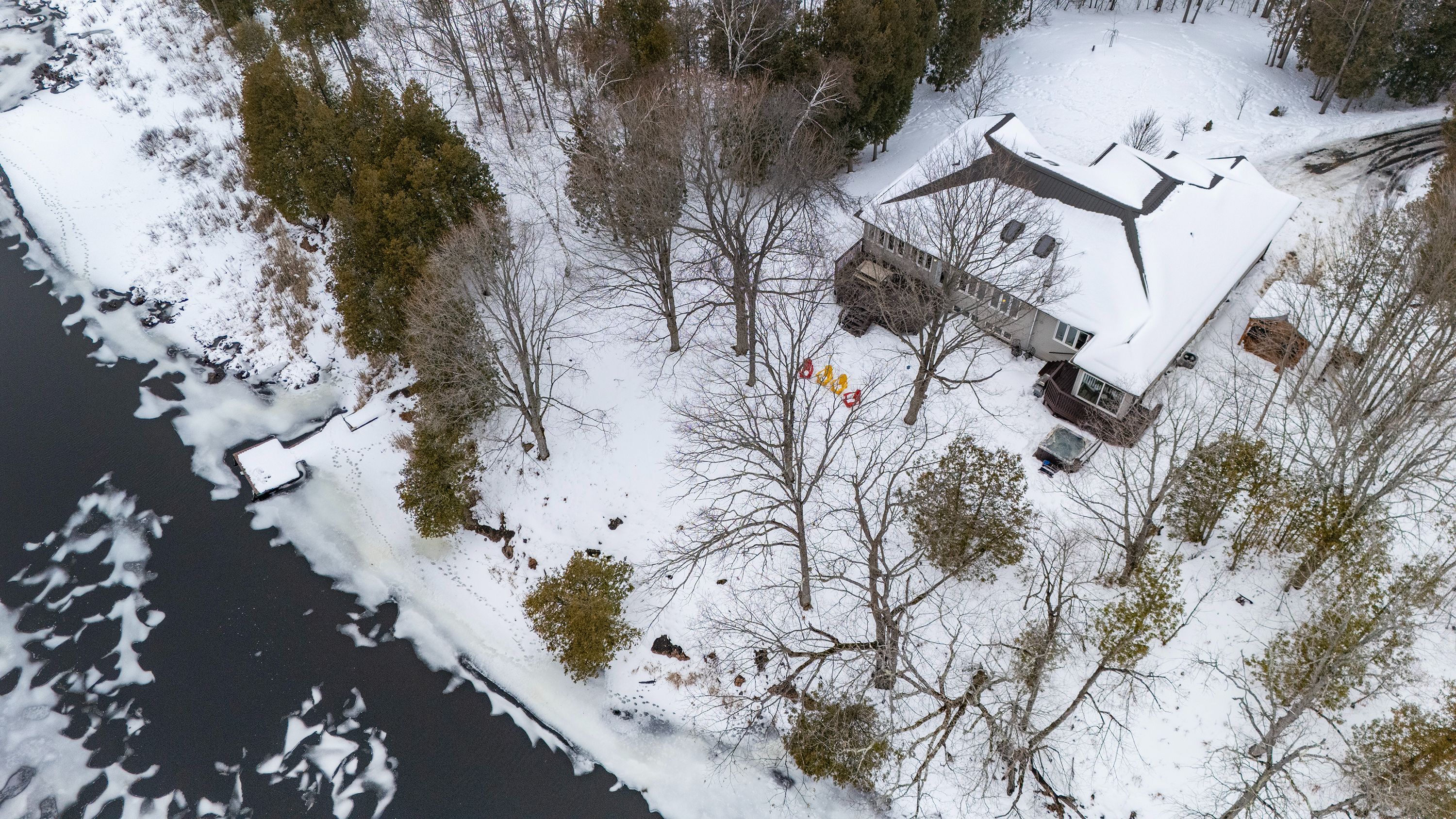 Welcome home to 5885 davey drive - where your dream of waterfront living becomes a reality. This immaculately maintained,fully renovated bungalow sits on just under 3 acres along quiet hardwood creek. Offering 300 feet of private waterfront thisproperty provides a quiet rural setting with access to verona, howes, and hambly lakes. Bright and inviting at every turn, thishome is packed with updates offering you peace of mind from the moment you move in. The spacious main floor featuresvaulted ceilings in the living area and a cozy wood-burning fireplace. The kitchen was beautifully renovated in 2019, includingnew cabinets and granite countertops. Enjoy your morning coffee or nighttime stargazing from the solarium located off thedining room. Patio doors open to the deck for easy access to the hot tub, firepit, or waterfront. The primary suite has a walk-incloset and a private 3-piece ensuite bathroom. A lofted area overlooks the main floor providing ample room for a secludedoffice or reading space. The fully finished basement includes three bedrooms, two full bathrooms, and plenty of space for arecreation room, games area, home gym, and storage. This thoughtfully designed layout allows you to host guests with ease andoffers room for teenagers to have their own space. Additional outdoor features include a gazebo with smoker, landscapedgrounds, 2-car garage, walking/atv trails, and 3600 sq ft fenced space ideal for dog training or other outdoor uses of yourliking. 25 minutes to kingston and minutes from the amenities of verona. Don't miss this wonderful property and all its ruralcharm.