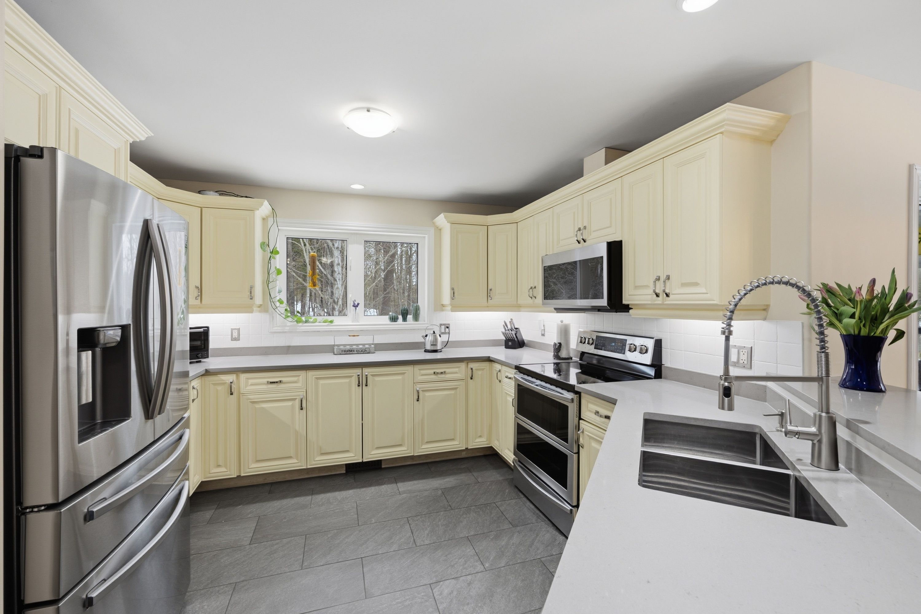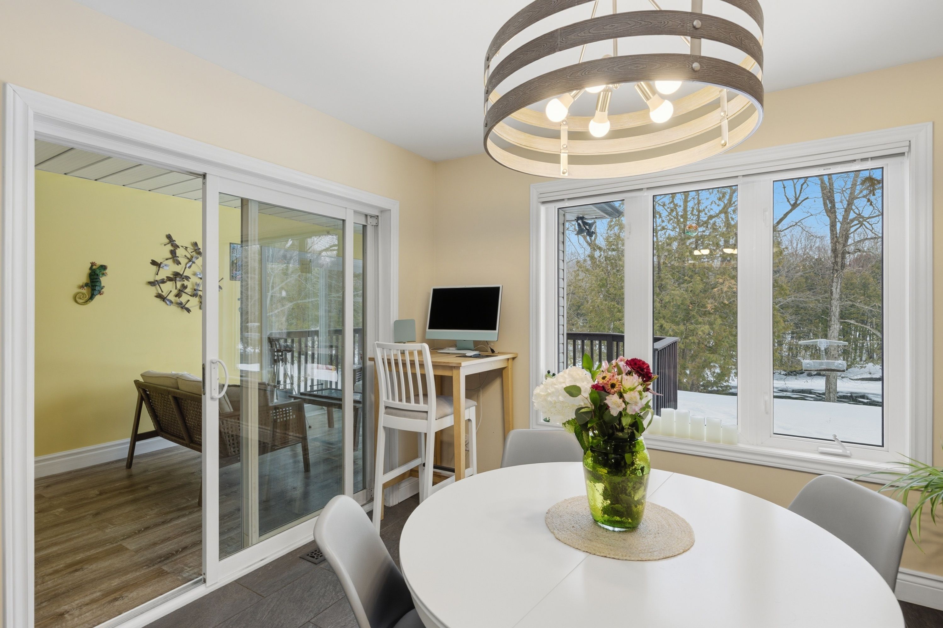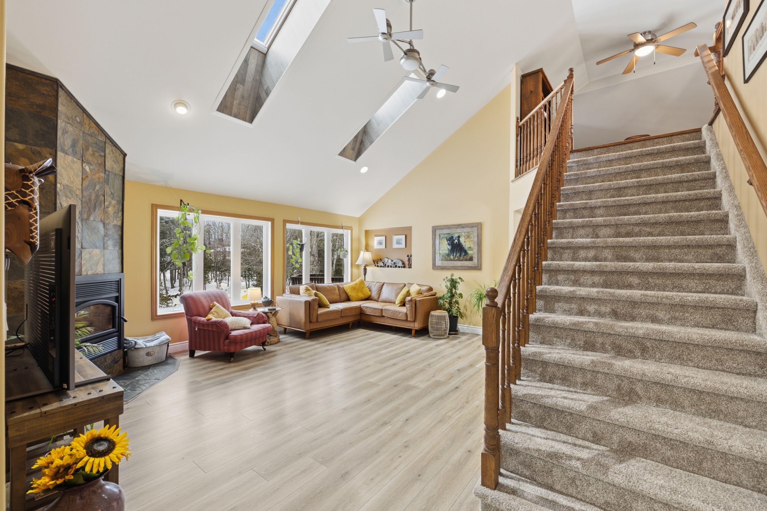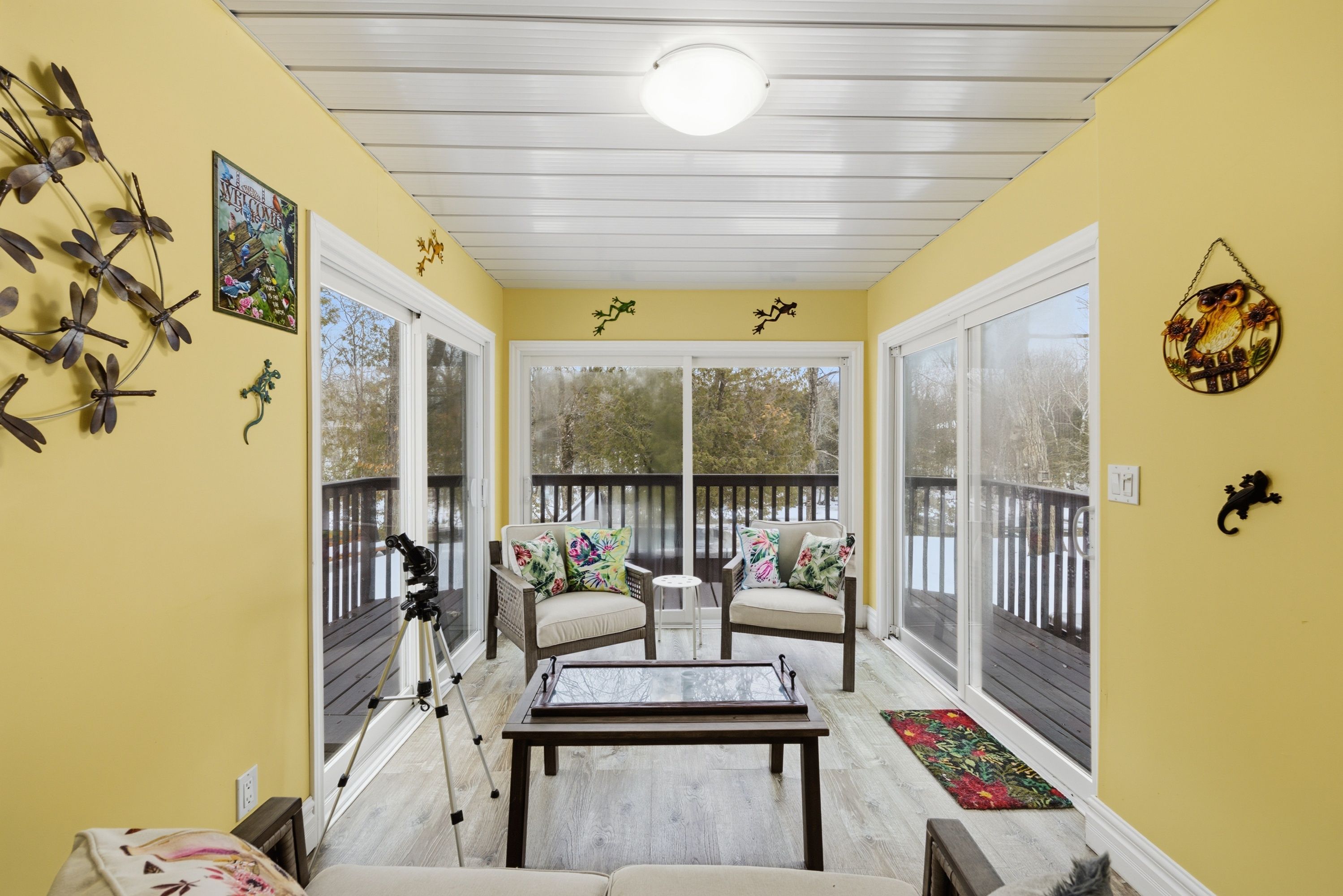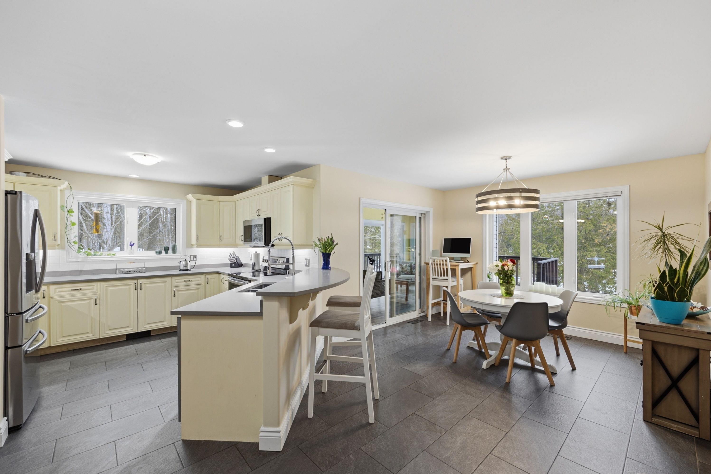 Welcome home to 5885 davey drive - where your dream of waterfront living becomes a reality. This immaculately maintained,fully renovated bungalow sits on just under 3 acres along quiet hardwood creek. Offering 300 feet of private waterfront thisproperty provides a quiet rural setting with access to verona, howes, and hambly lakes. Bright and inviting at every turn, thishome is packed with updates offering you peace of mind from the moment you move in. The spacious main floor featuresvaulted ceilings in the living area and a cozy wood-burning fireplace. The kitchen was beautifully renovated in 2019, includingnew cabinets and granite countertops. Enjoy your morning coffee or nighttime stargazing from the solarium located off thedining room. Patio doors open to the deck for easy access to the hot tub, firepit, or waterfront. The primary suite has a walk-incloset and a private 3-piece ensuite bathroom. A lofted area overlooks the main floor providing ample room for a secludedoffice or reading space. The fully finished basement includes three bedrooms, two full bathrooms, and plenty of space for arecreation room, games area, home gym, and storage. This thoughtfully designed layout allows you to host guests with ease andoffers room for teenagers to have their own space. Additional outdoor features include a gazebo with smoker, landscapedgrounds, 2-car garage, walking/atv trails, and 3600 sq ft fenced space ideal for dog training or other outdoor uses of yourliking. 25 minutes to kingston and minutes from the amenities of verona. Don't miss this wonderful property and all its ruralcharm.