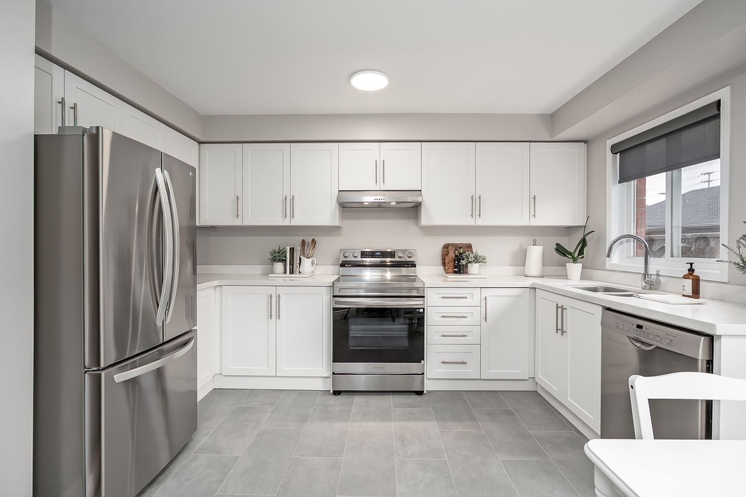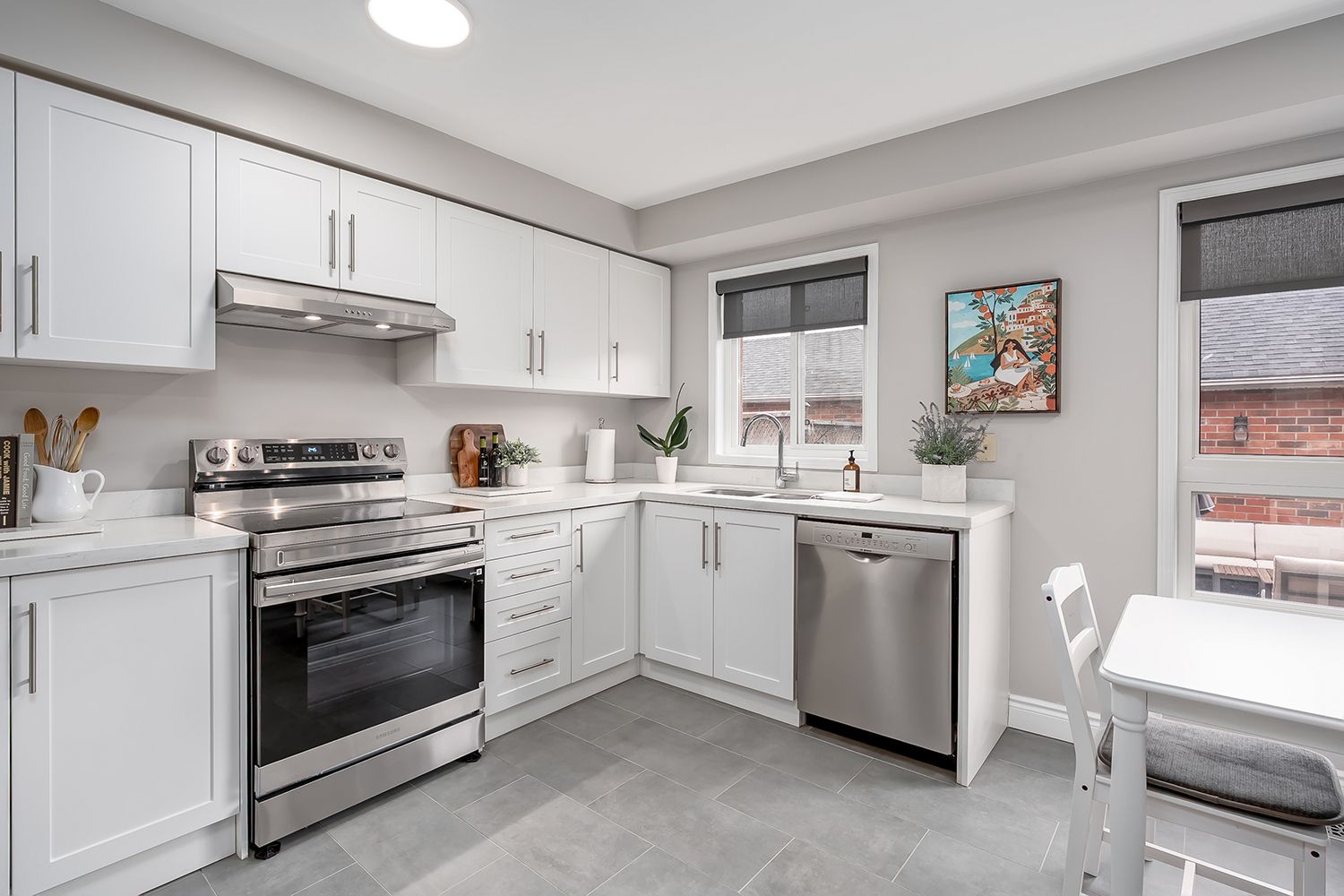• Modern kitchen with quartz countertops and stainless steel appliances.