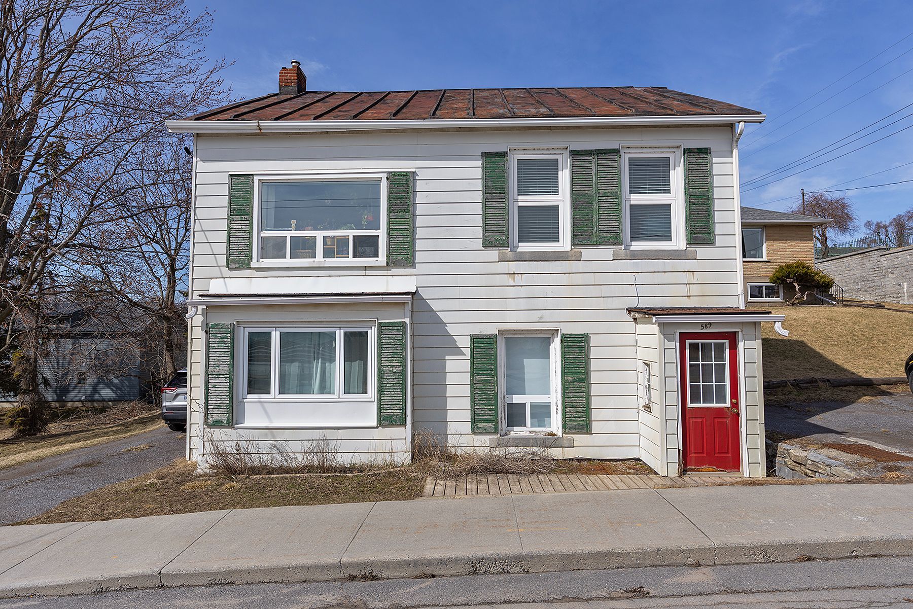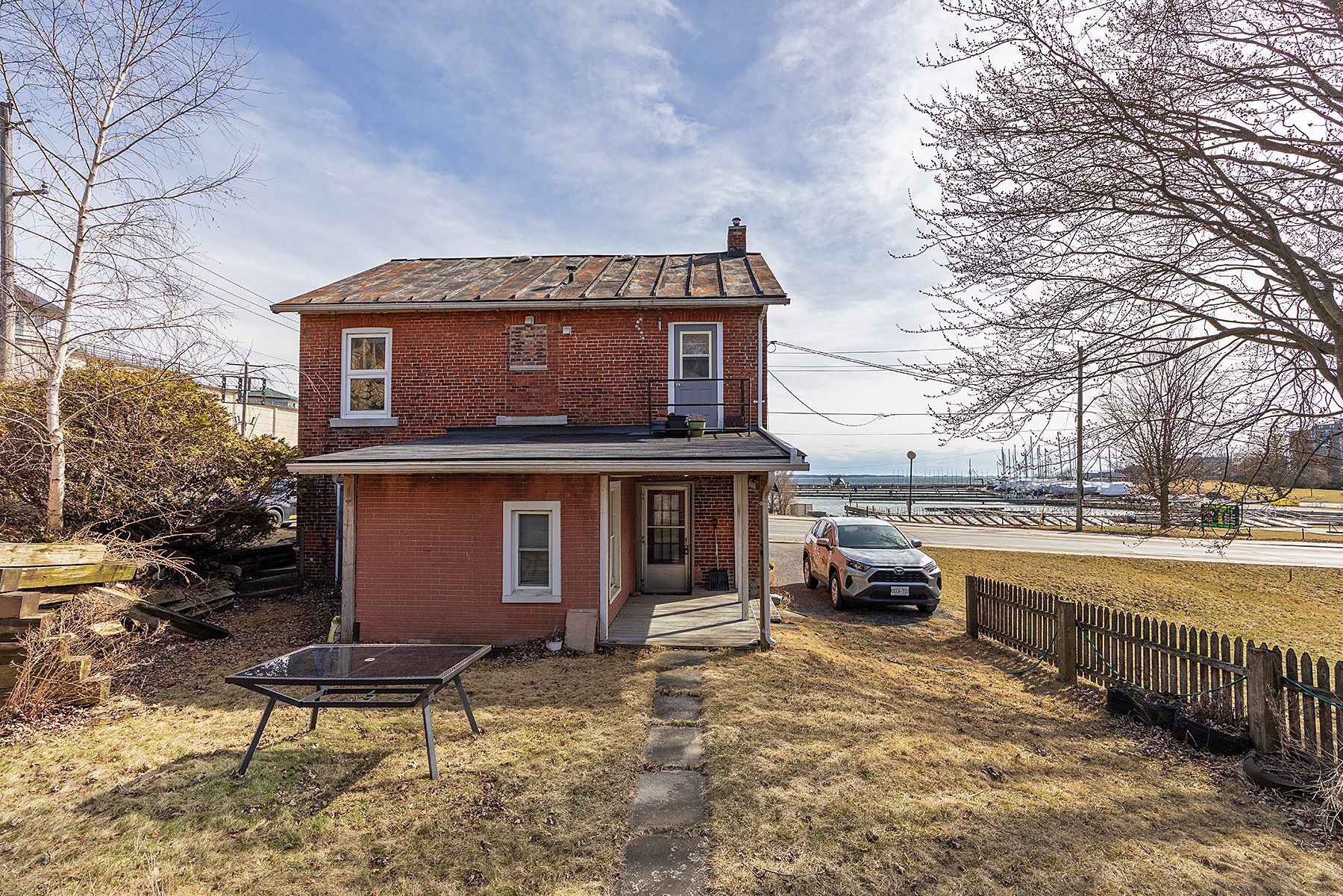 Welcome to 589 king street w and enjoy an unobstructed view of portsmouth olympic harbour from this charming two-story brick duplex, ideally located in one of kingston's most desirable areas. The main floor offers flexibility with one or two bedrooms, along with a kitchen, living room, and dining area with separate laundry and parking. Upstairs, you'll find two additional bedrooms, beautifully refinished softwood floors, and an abundance of natural light throughout. Both bathrooms on each level have been recently renovated. While the property sits on a 120ft (+/-) deep lot, this unique property is believed to have once served as a hotel during kingston's trolley car era, adding a touch of historic character. A rare opportunity with unbeatable views, perfect for sailors or those looking to live near the water! Updates include: furnace and rear shingles are approximately 5 years old, both front bay windows are around 10 years old.
