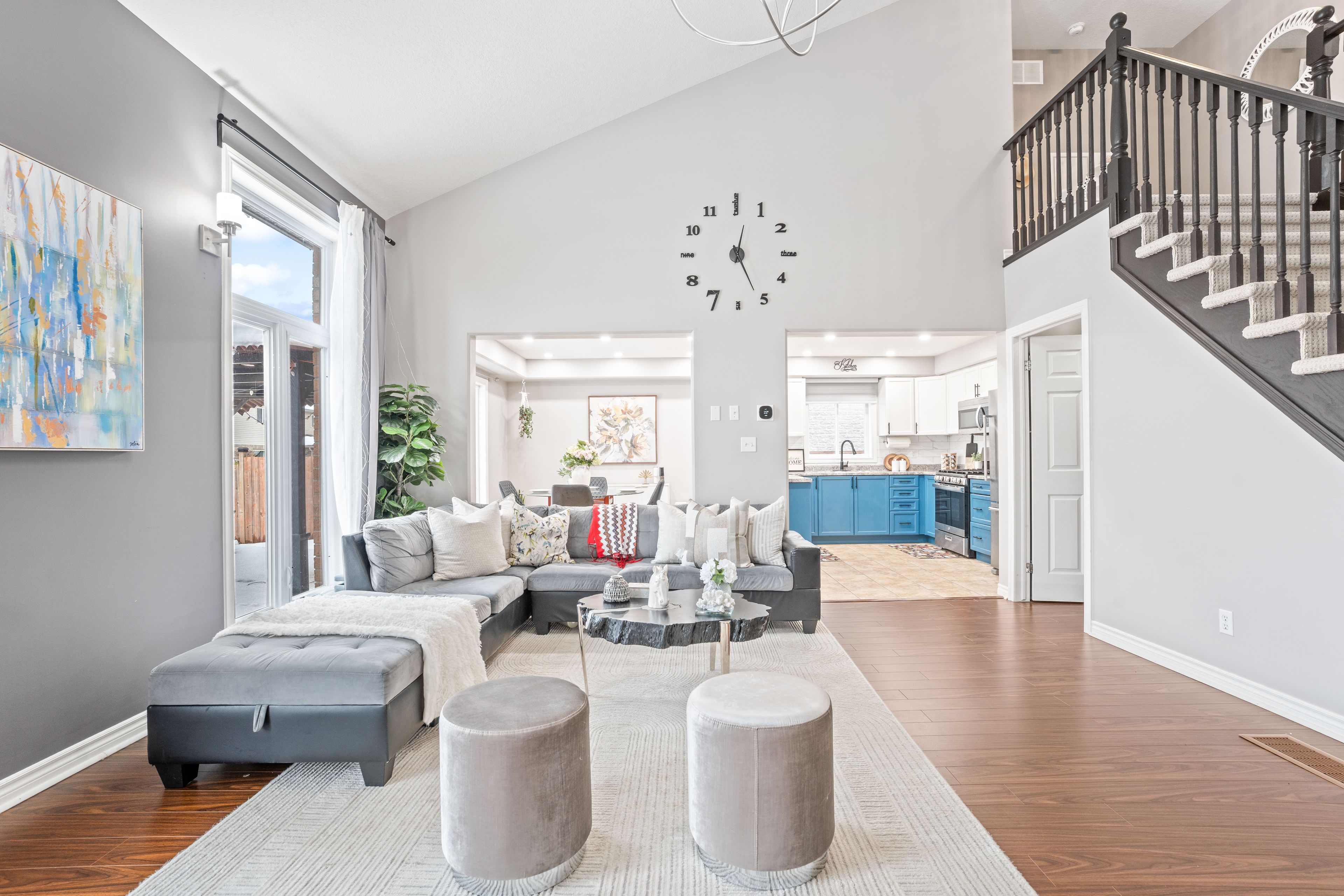 • Bright open-concept main floor with a modern kitchen and dining area.