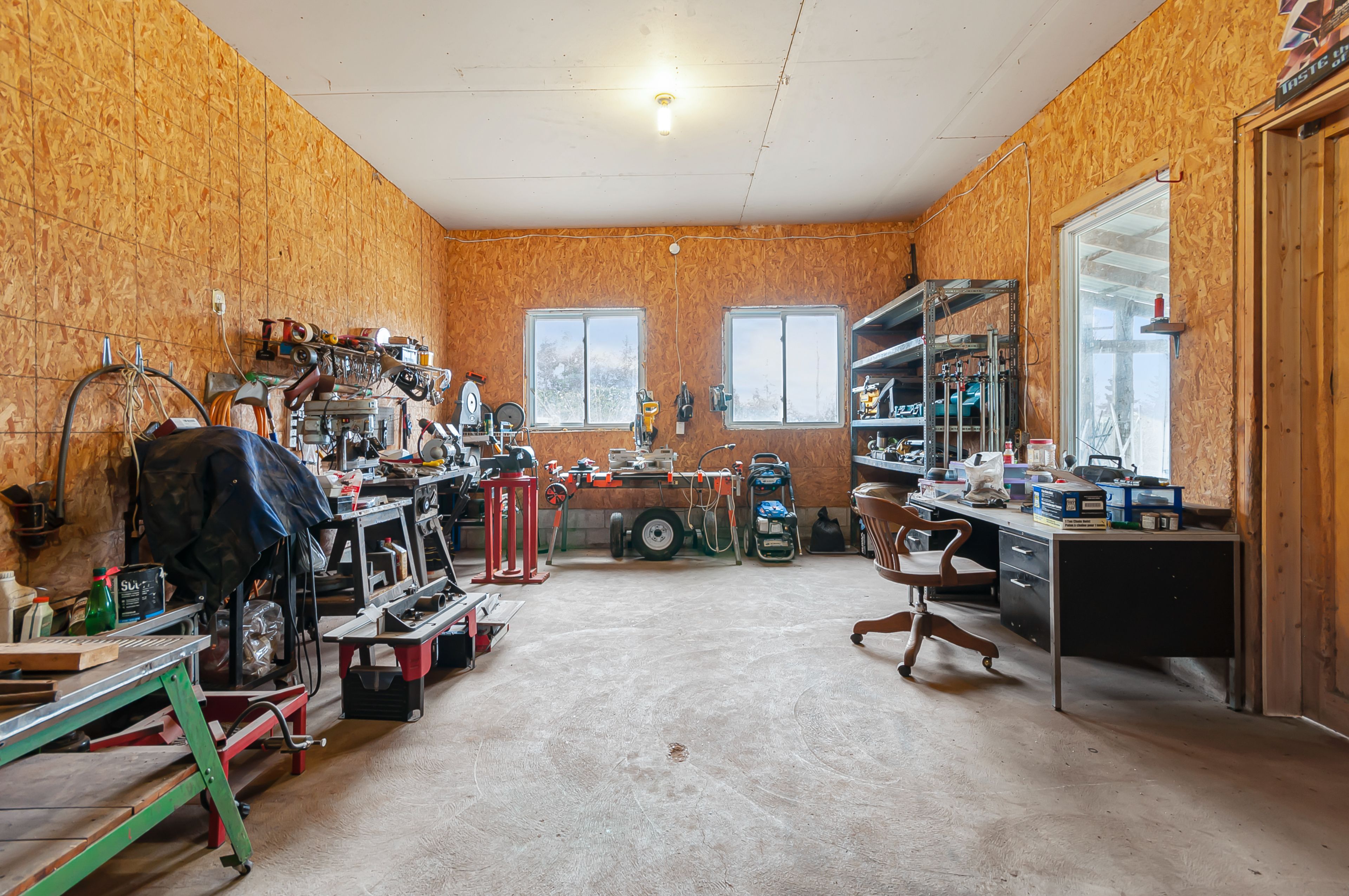 • Includes a workshop and sauna for hobbies and wellness.