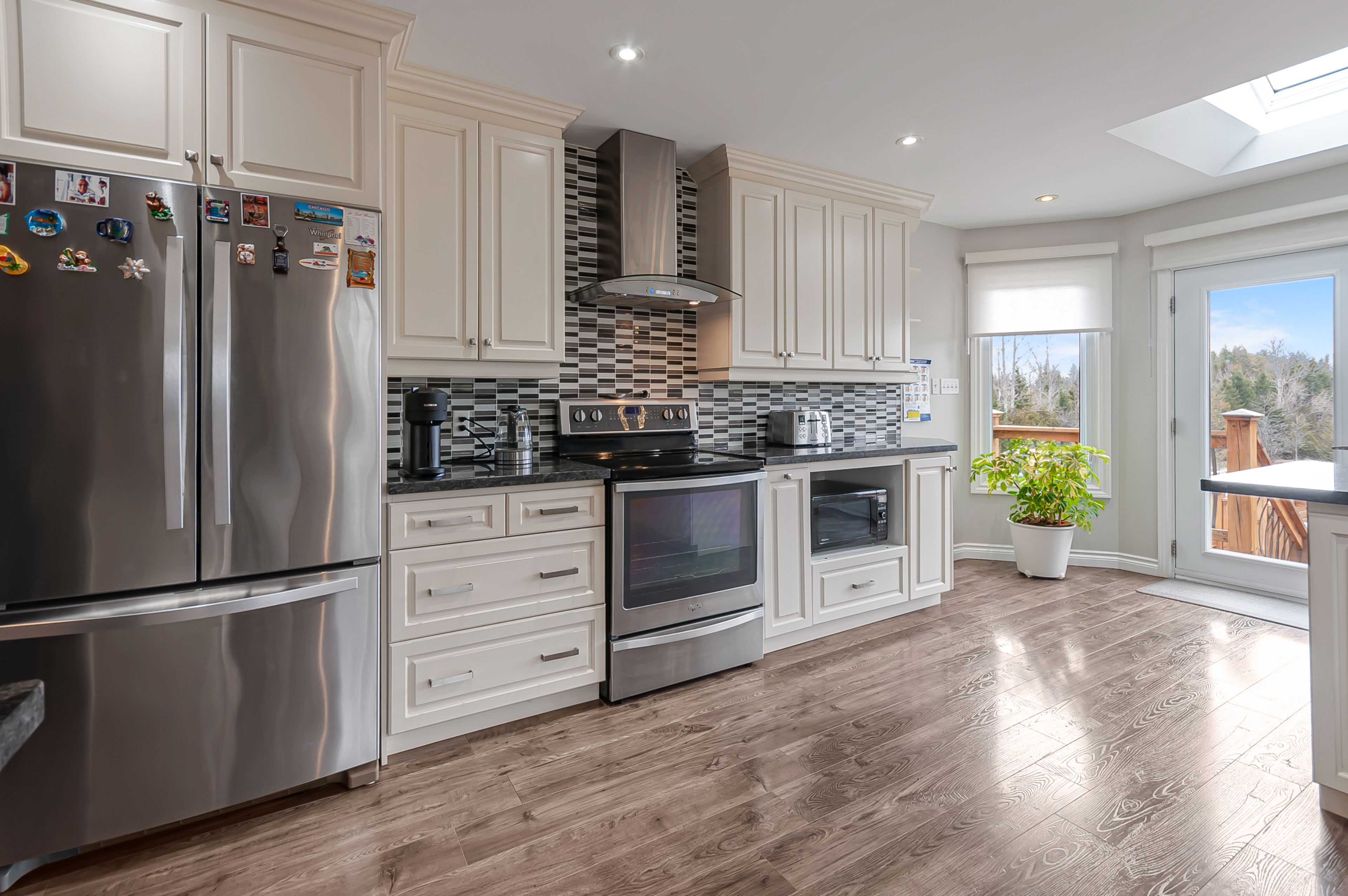 • Bright home features skylights and refined finishes throughout.