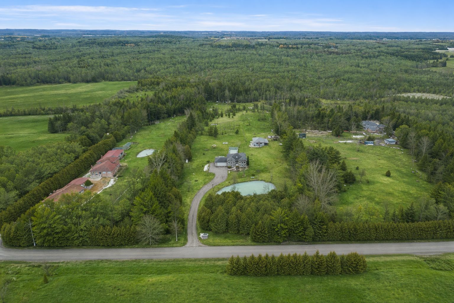 • Sprawling 10-acre estate with beautiful landscaping and privacy.