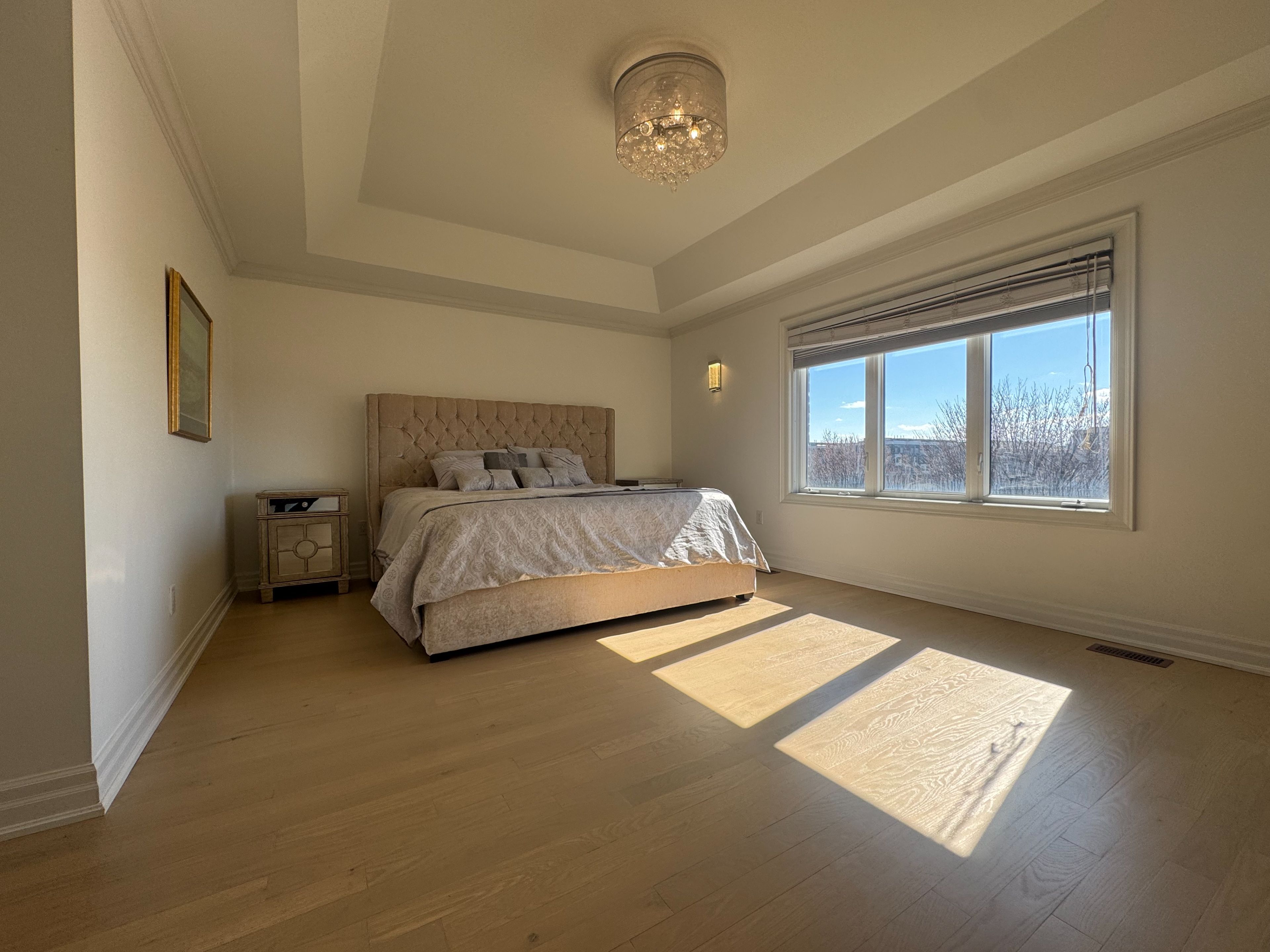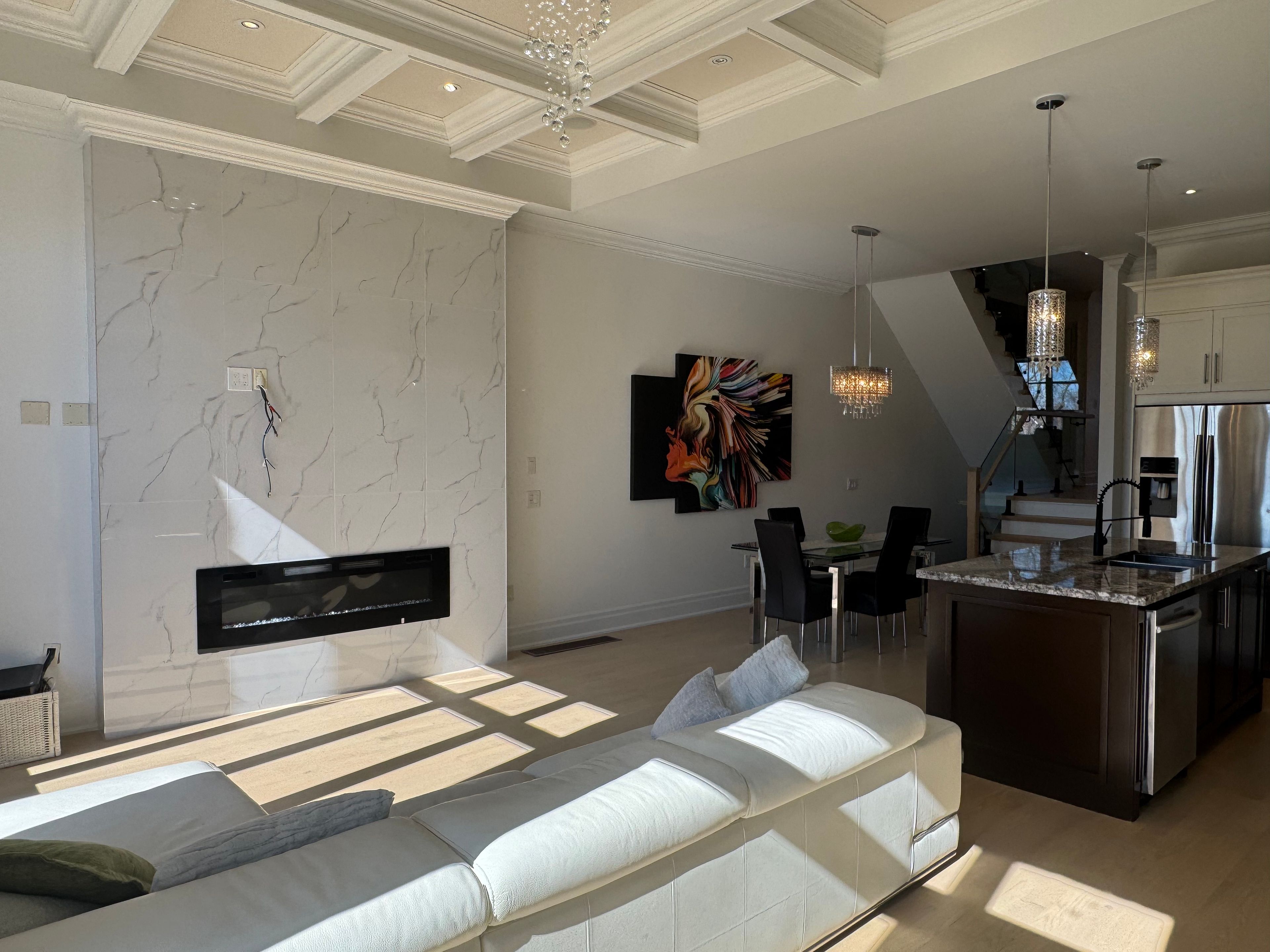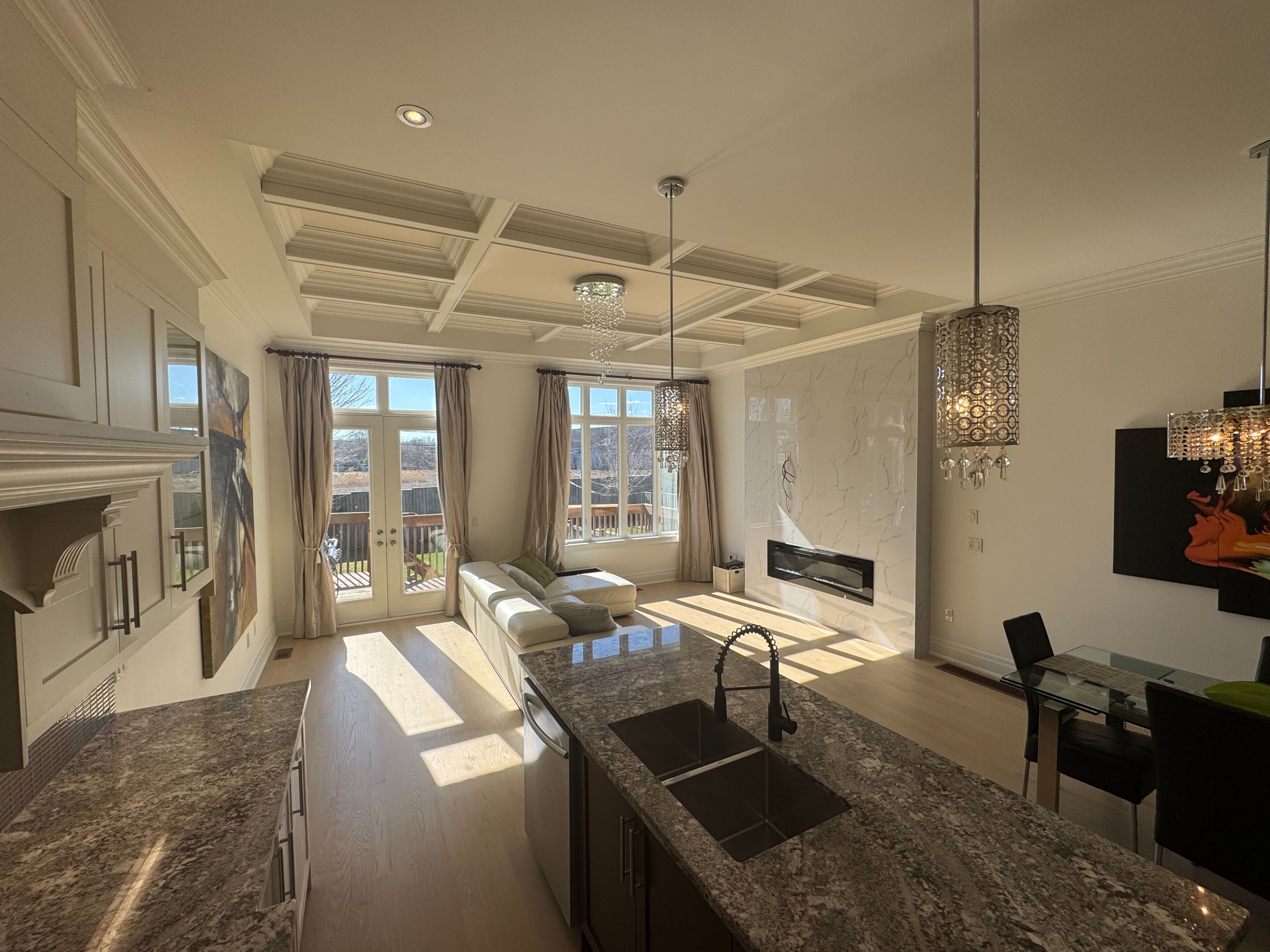 A rare offering on a quiet, family-friendly dead-end street (ideal for families seeking low traffic and a safe, peaceful home), this custom-built residence sits on a deep lot and showcases refined design, elevated finishes, and a fully renovated interior (apr/2026). From the moment you enter, you're greeted by soaring ceilings, rich natural light, and a seamless blend of modern sophistication and timeless craftsmanship. Freshly painted in the 2026 pantone colour of the year ("cloud dancer"), the home features newly refinished genuine hardwood flooring and sleek glass railings that enhance its clean architectural lines. The open-concept main level is anchored by a dramatic family room with 11. 5-ft coffered ceilings, a new bespoke fireplace feature wall, and integrated ceiling speakers- ideal for intimate evenings and upscale entertaining. Western exposure bathes the space in golden afternoon light, culminating in stunning sunset views. The chef's kitchen is equally impressive - 10-ft ceilings, large island, with high-end finishes designed for function and style. Upstairs, a statement staircase wall featuring custom wainscoting leads to a serene private retreat. Three skylights further elevate the ambiance, filling the upper level with natural light. The primary suite exudes comfort and sophistication with 9-ft beveled ceilings, a spacious walk-in closet, and a spa-inspired ensuite featuring a double vanity, deep soaker tub, and a glass shower. Fully finished lower level, complete with a separate entrance, is thoughtfully appointed with ss appliances and a granite counter-ideal for a private guest suite, executive home office, or income-generating opportunity. Outdoors, the expansive (135ft lot) backyard offers privacy & scale-perfect for entertaining, relaxation, or family living. Perfectly positioned steps from boutique shops, dining, transit, parks, and major commuter routes, this home delivers a seamless balance of luxury, lifestyle, and convenience.