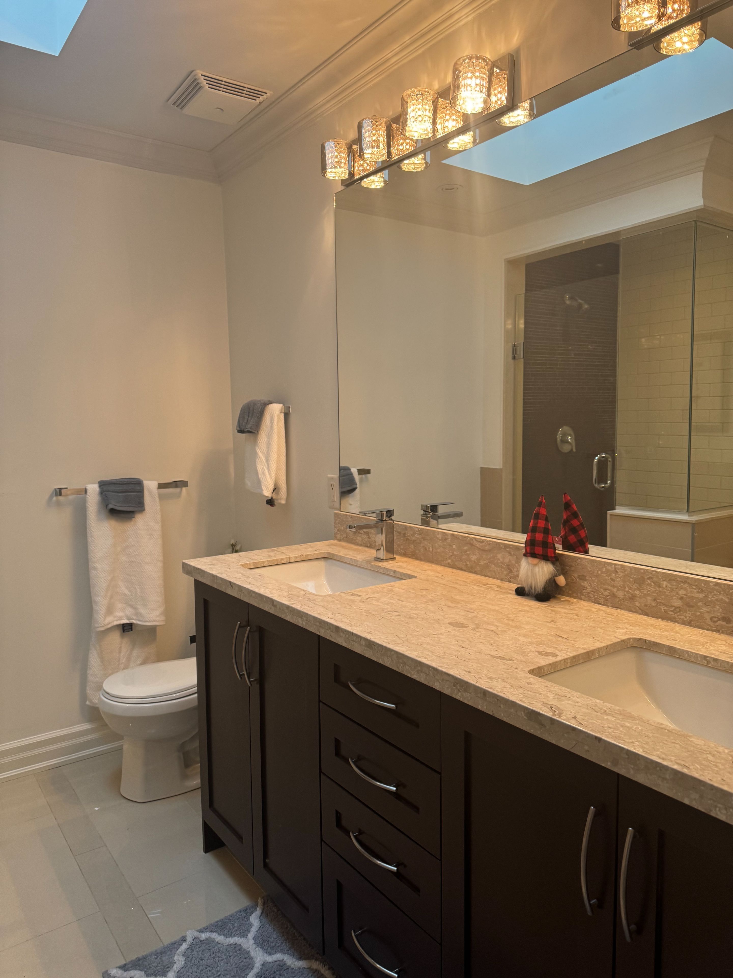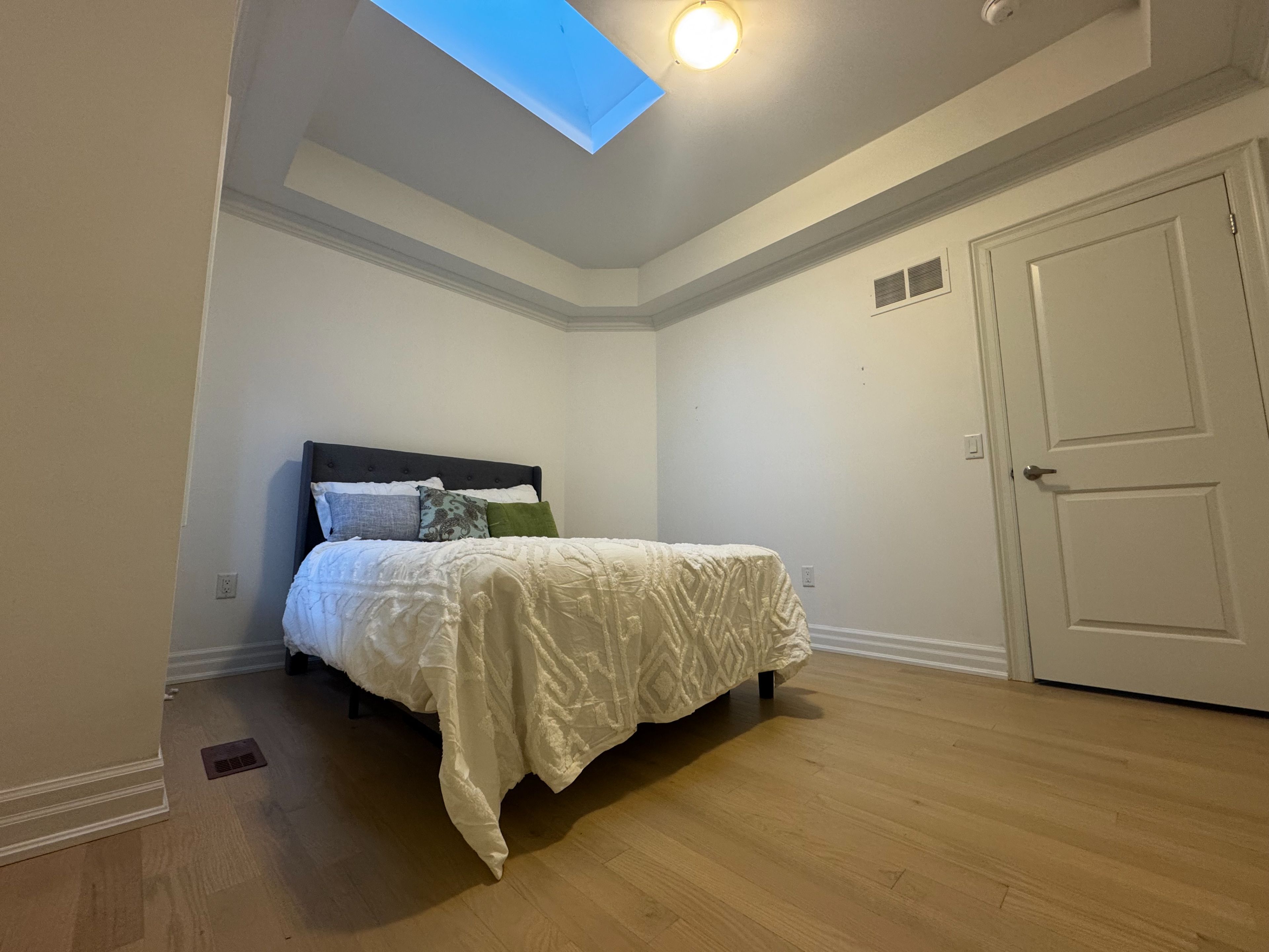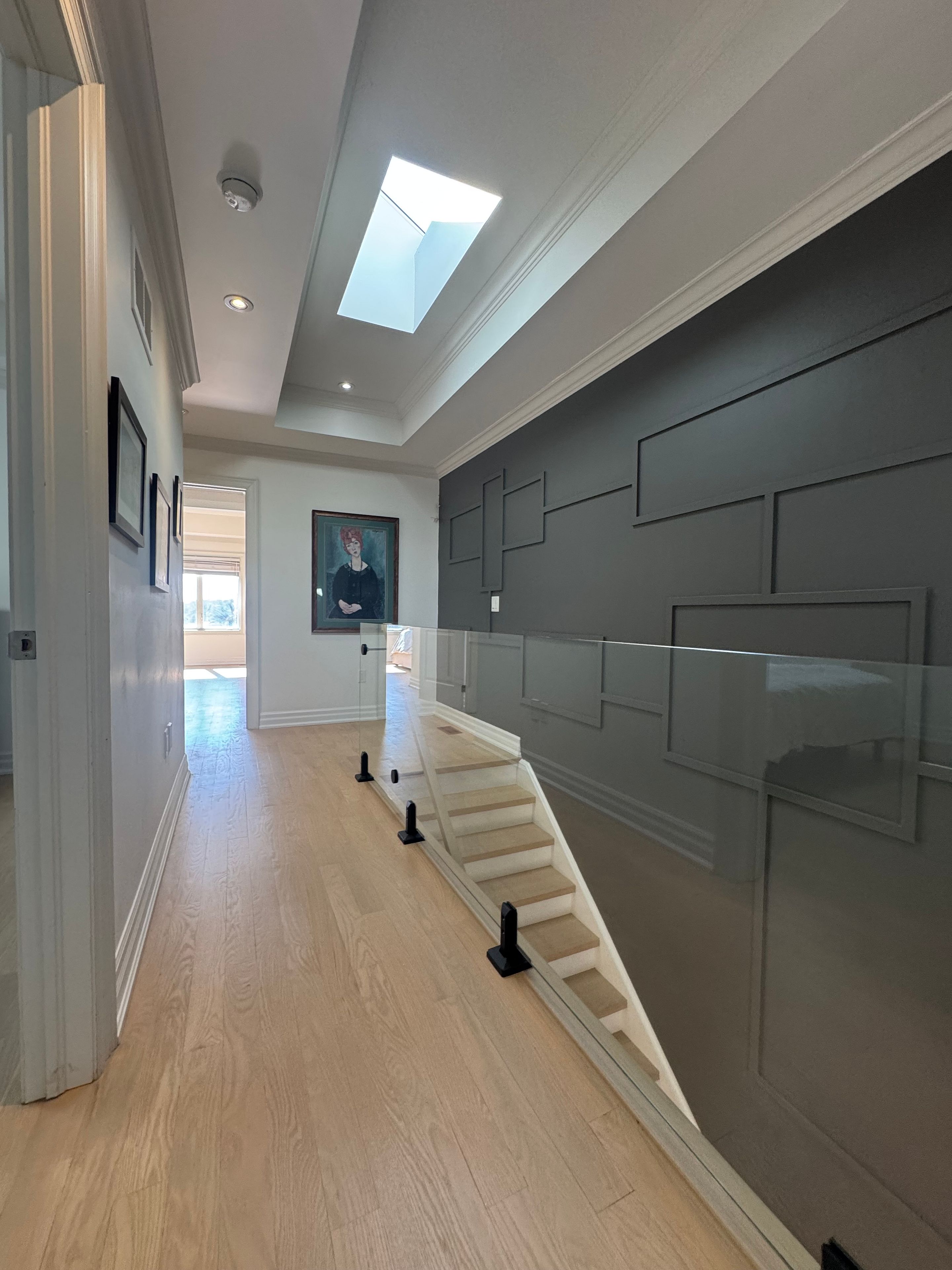 A rare offering on a quiet, family-friendly dead-end street (ideal for families seeking low traffic and a safe, peaceful home), this custom-built residence sits on a deep lot and showcases refined design, elevated finishes, and a fully renovated interior (apr/2026). From the moment you enter, you're greeted by soaring ceilings, rich natural light, and a seamless blend of modern sophistication and timeless craftsmanship. Freshly painted in the 2026 pantone colour of the year ("cloud dancer"), the home features newly refinished genuine hardwood flooring and sleek glass railings that enhance its clean architectural lines. The open-concept main level is anchored by a dramatic family room with 11. 5-ft coffered ceilings, a new bespoke fireplace feature wall, and integrated ceiling speakers- ideal for intimate evenings and upscale entertaining. Western exposure bathes the space in golden afternoon light, culminating in stunning sunset views. The chef's kitchen is equally impressive - 10-ft ceilings, large island, with high-end finishes designed for function and style. Upstairs, a statement staircase wall featuring custom wainscoting leads to a serene private retreat. Three skylights further elevate the ambiance, filling the upper level with natural light. The primary suite exudes comfort and sophistication with 9-ft beveled ceilings, a spacious walk-in closet, and a spa-inspired ensuite featuring a double vanity, deep soaker tub, and a glass shower. Fully finished lower level, complete with a separate entrance, is thoughtfully appointed with ss appliances and a granite counter-ideal for a private guest suite, executive home office, or income-generating opportunity. Outdoors, the expansive (135ft lot) backyard offers privacy & scale-perfect for entertaining, relaxation, or family living. Perfectly positioned steps from boutique shops, dining, transit, parks, and major commuter routes, this home delivers a seamless balance of luxury, lifestyle, and convenience.