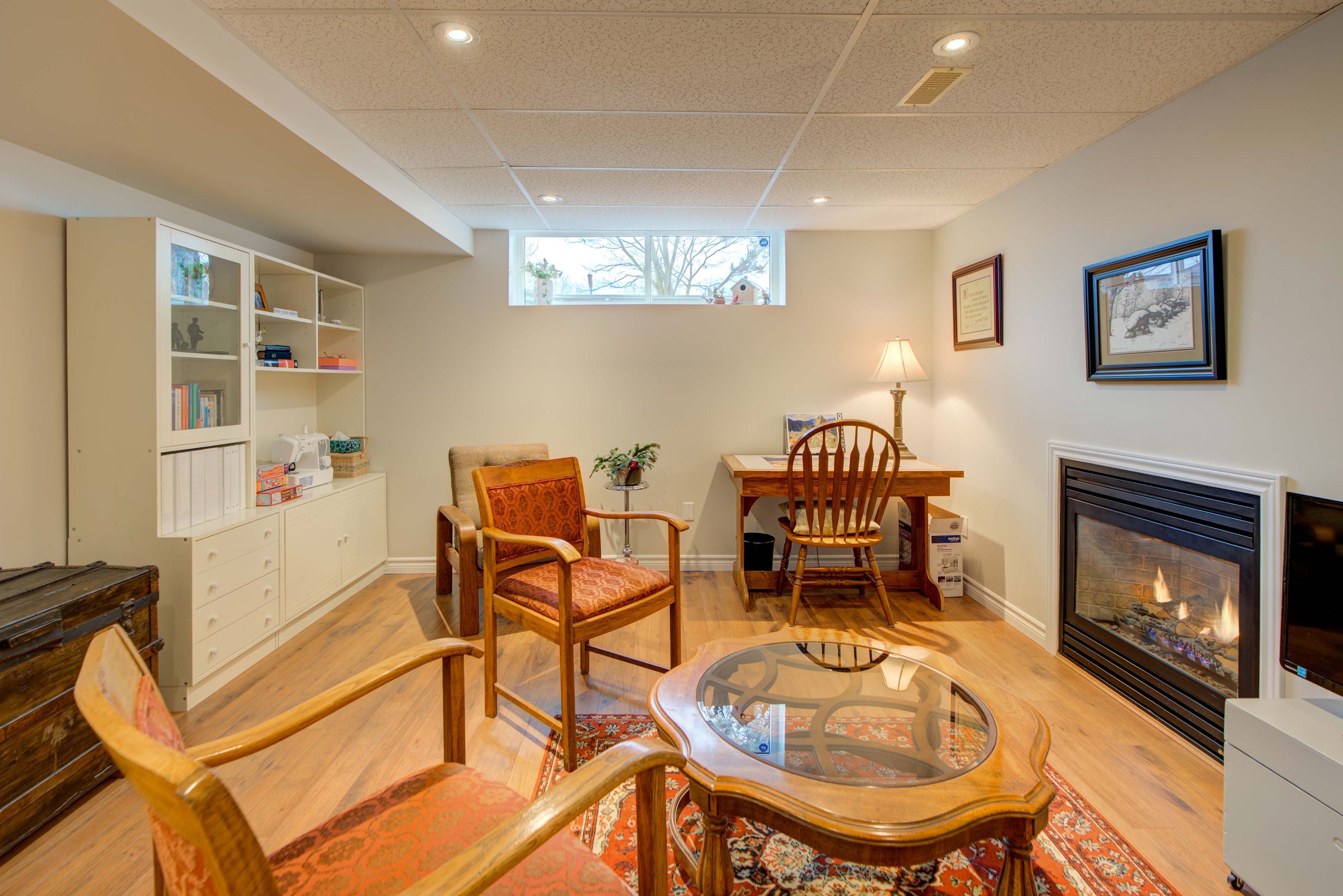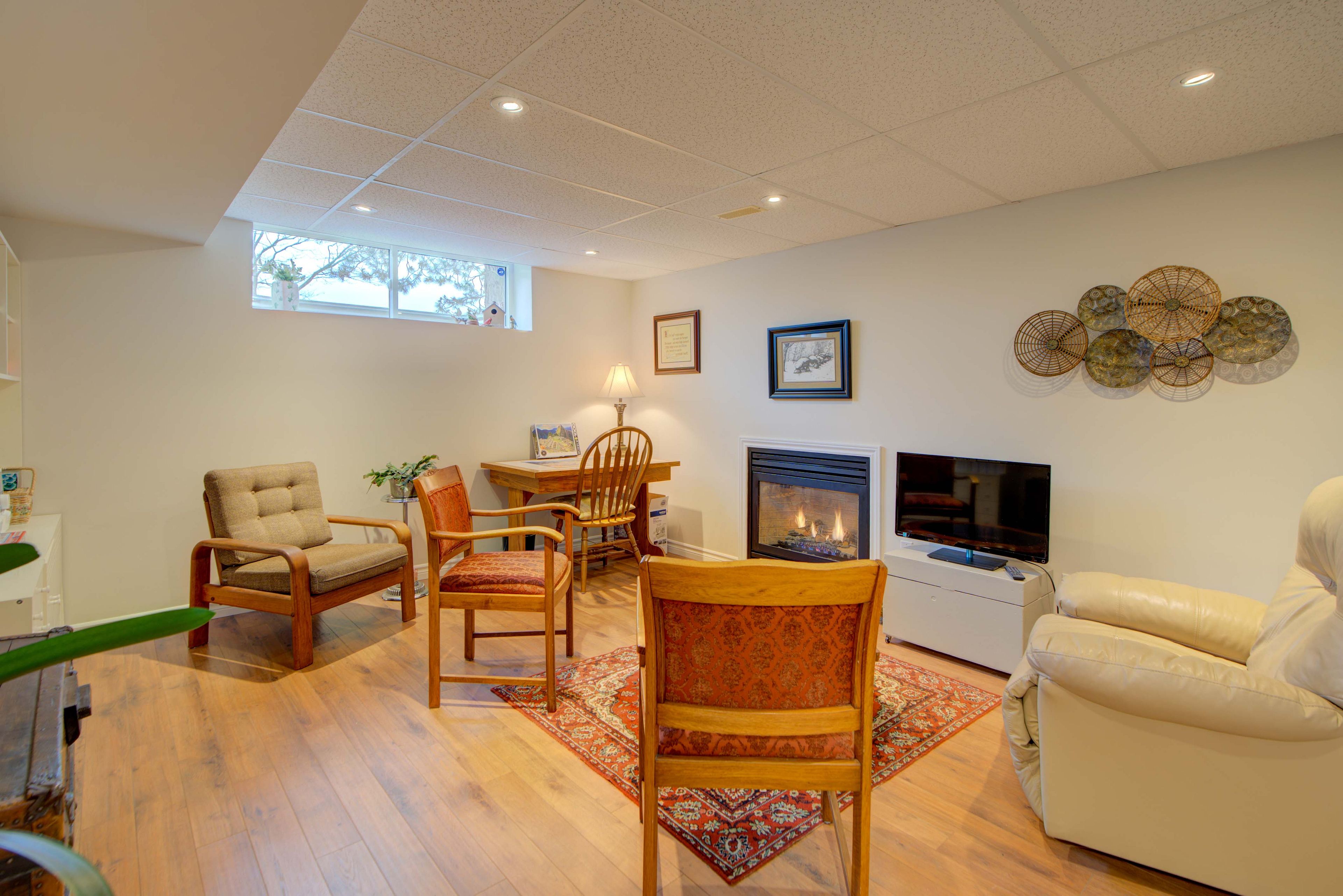 • Finished lower level offers extra living space with a cozy gas fireplace.