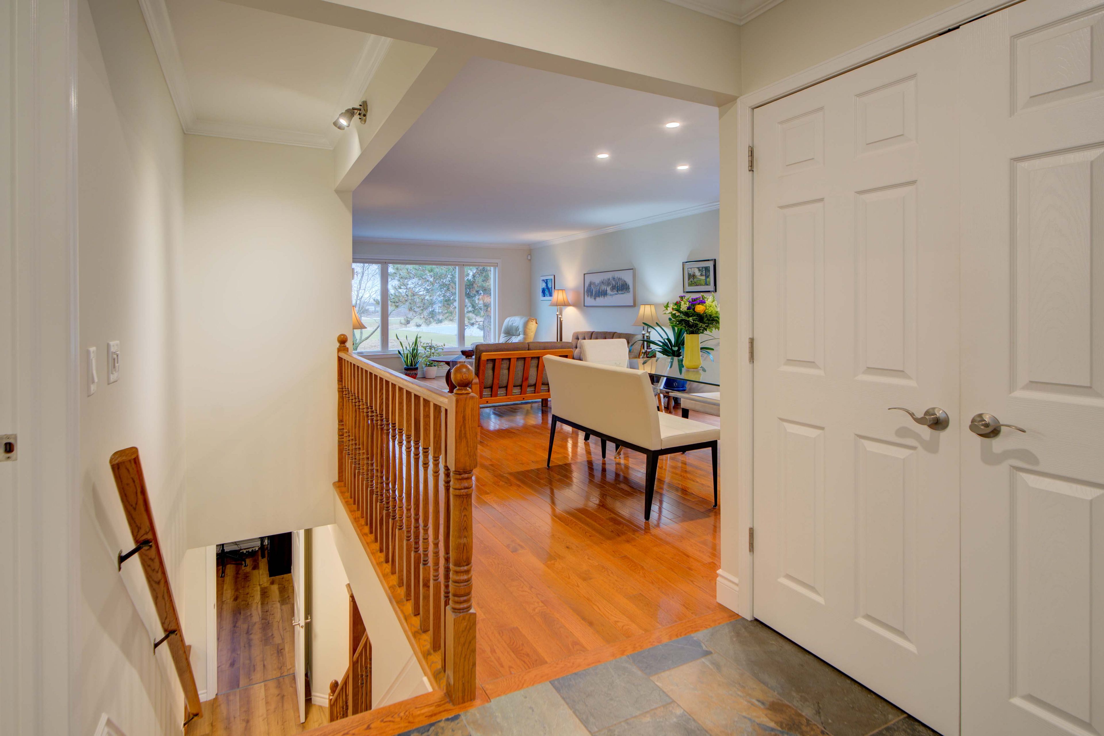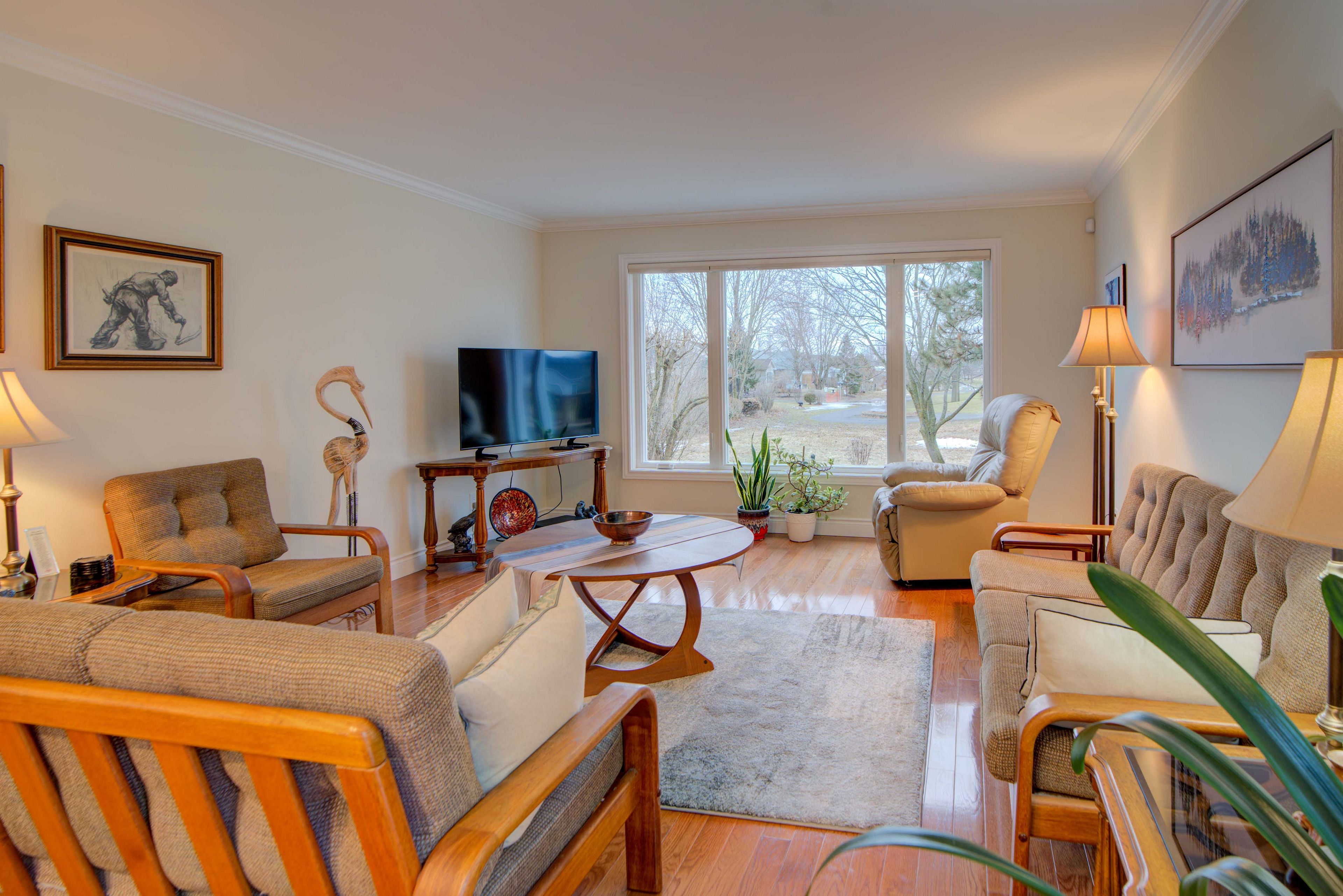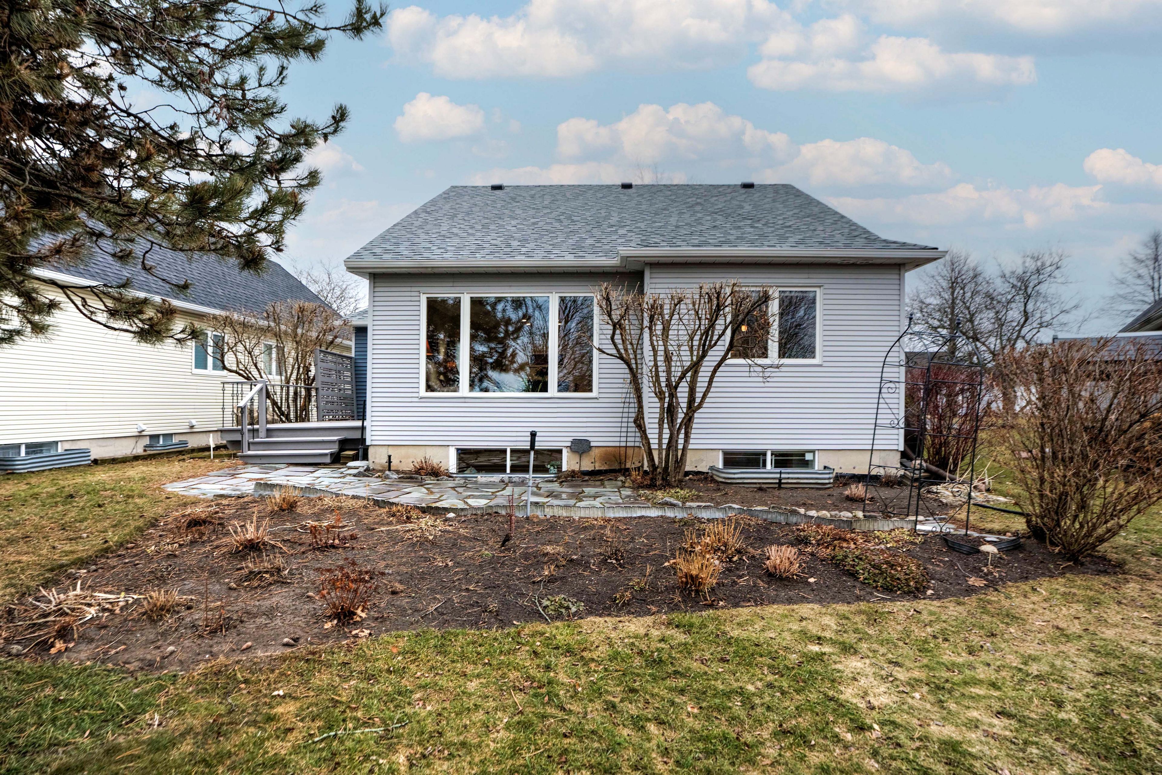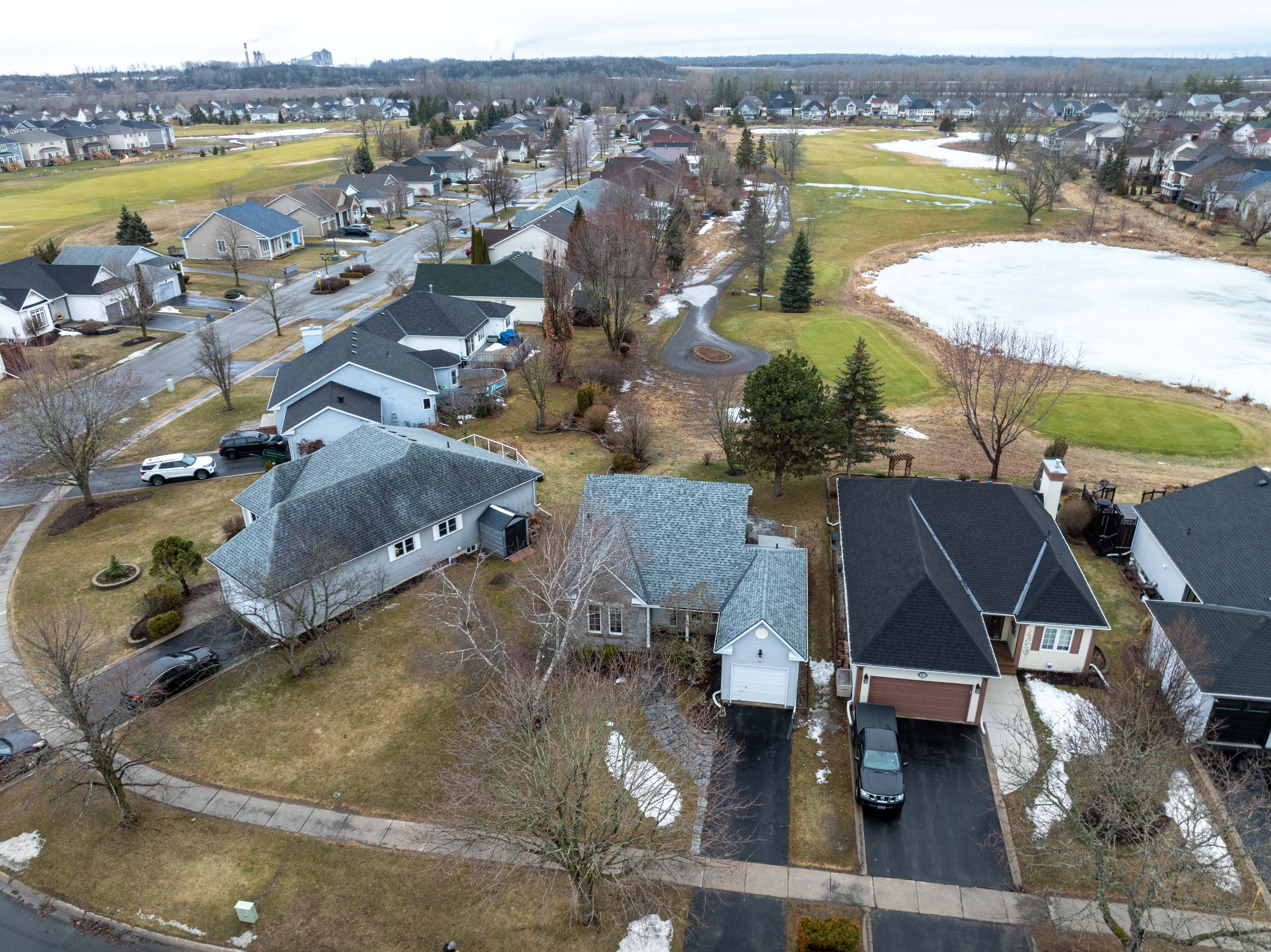 Golf & sunset views! Enjoy beautiful sunset views straight down the 16th fairway of loyalist country club-with membership included! This charming bungalow offers comfortable living in a picturesque golf course setting. The main level features hardwood and ceramic flooring, a functional kitchen with a picture window overlooking the deck and backyard, and a cozy breakfast nook. The bright and spacious living/dining area is filled with natural light and includes new patio doors leading to a side deck and a flagstone patio surrounded by lovely perennial gardens. There are two bedrooms on the main floor, including a generous primary bedroom with a convenient walk-through to the updated main bathroom. The finished lower level offers even more living space with a third bedroom or den, a 3-piece bathroom, a family room with a cozy gas fireplace, a workshop area, and plenty of storage. Recent updates include: all new windows with clear, unobstructed views. Flat ceilings with crown molding throughout. Pot lighting in the front bedroom, hallway & dining room. New patio door. This carpet-free, pet-free, and smoke-free home is truly move-in ready. Perfect for enjoying a relaxed retirement lifestyle in a beautiful golf course community.