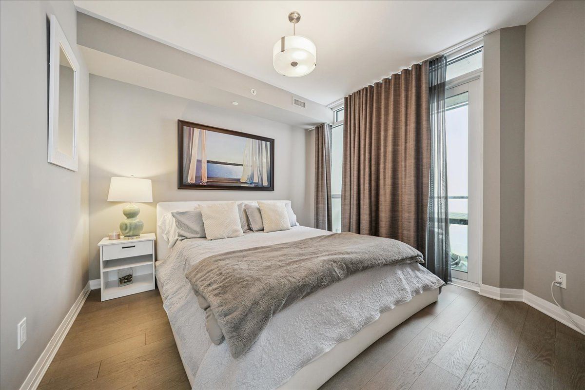 Rarely offered south-facing corner residence at ocean club! Breathtaking, unobstructed views of the lake and toronto skyline. 2 bed, 2. 5 bathroom layout features nearly 1000 sq ft. Of interior space + an exceptional 330 sq. Ft. Wrap-around balcony - creating a seamless indoor-outdoor experience rarely found in condo living. Both elegant and functional - this sought-after split bedroom layout is framed by floor-to-ceiling windows providing ample natural light. Recently completed custom kitchen remodel (approx. $50,000) elevates the space with a chef-inspired design, featuring an enlarged waterfall island and built-in appliances. Primary suite offers a walk-in closet and a spa-like ensuite, while the second bedroom is enhanced with a custom closet system & it's own ensuite. A 2 pc powder room is placed near the entrance, separate for guests. Situated in the prestigious humber bay shores waterfront community, residents enjoy direct access to scenic trails, parks, cafés, grocery, ttc service, and quick connectivity to the gardiner & downtown toronto. Lifestyle-driven location - ideal as a luxury principal residence or a high-quality turn key investment. This suite may be offered fully furnished, presenting a rare turn-key opportunity for discerning end-users or investors alike.