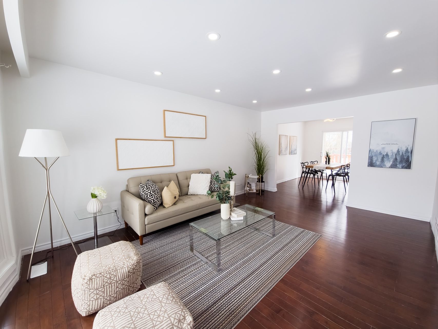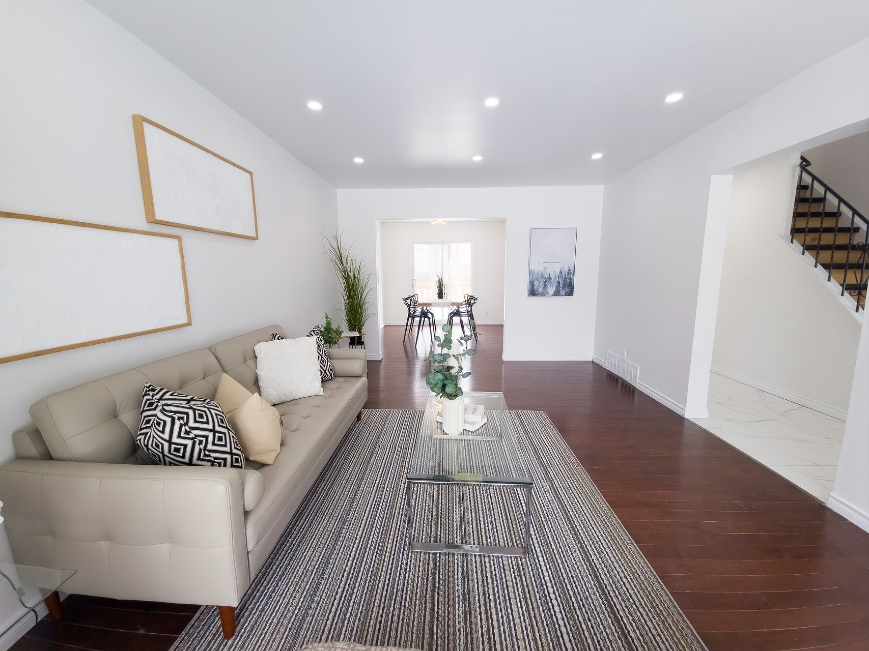 The intersection of nature and design. Welcome to a residence that defies the standard suburban narrative. Nestled in the protected "greenbelt oasis" of blackburn hamlet, 59 bearbrook rd. Is more than a 4-bedroom detached home; it is a masterclass in modern organic design, offering a lifestyle that is increasingly rare in the ottawa market: a designer-renovated sanctuary just 15 minutes from the city core. From the moment you cross the threshold, the tone is set by a seamless flow of natural light and sophisticated textures. The main living area is anchored by a stunning vertical wood-slat feature wall-a nod to japandi minimalism-framing a linear fireplace that serves as the home's emotional heart. Dark hardwood floors provide a rich contrast to the crisp, gallery-white walls, leading you into a dining space designed for lingering conversations and views of the mature greenery outside. The kitchen is a chef's dream, executed with a "tuxedo" palette of deep charcoal cabinetry and brilliant white uppers. Oversized porcelain tile flooring meets expansive granite countertops, punctuated by a central island that acts as a natural gathering point for morning coffee or evening hors d'oeuvres. With high-end stainless steel appliances and double-wide windows overlooking the backyard, this is a space where function and form live in perfect harmony.