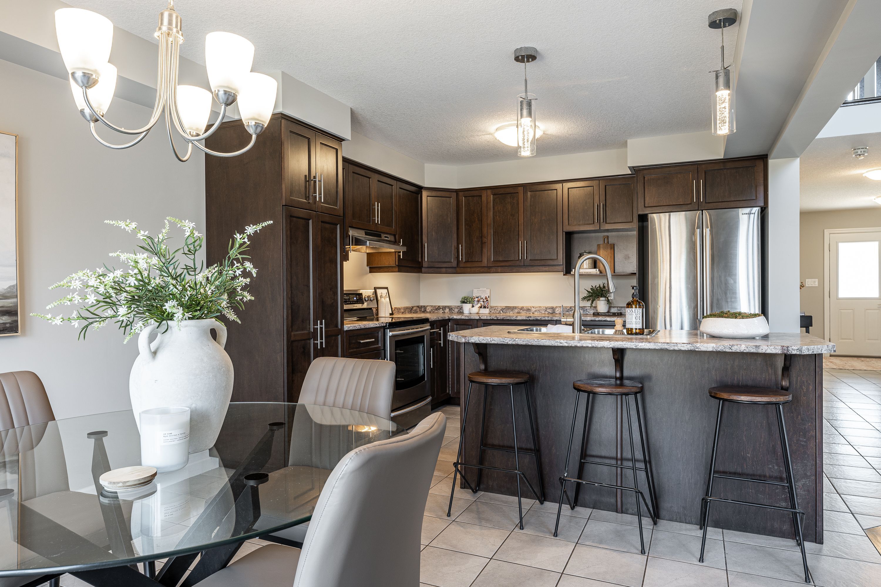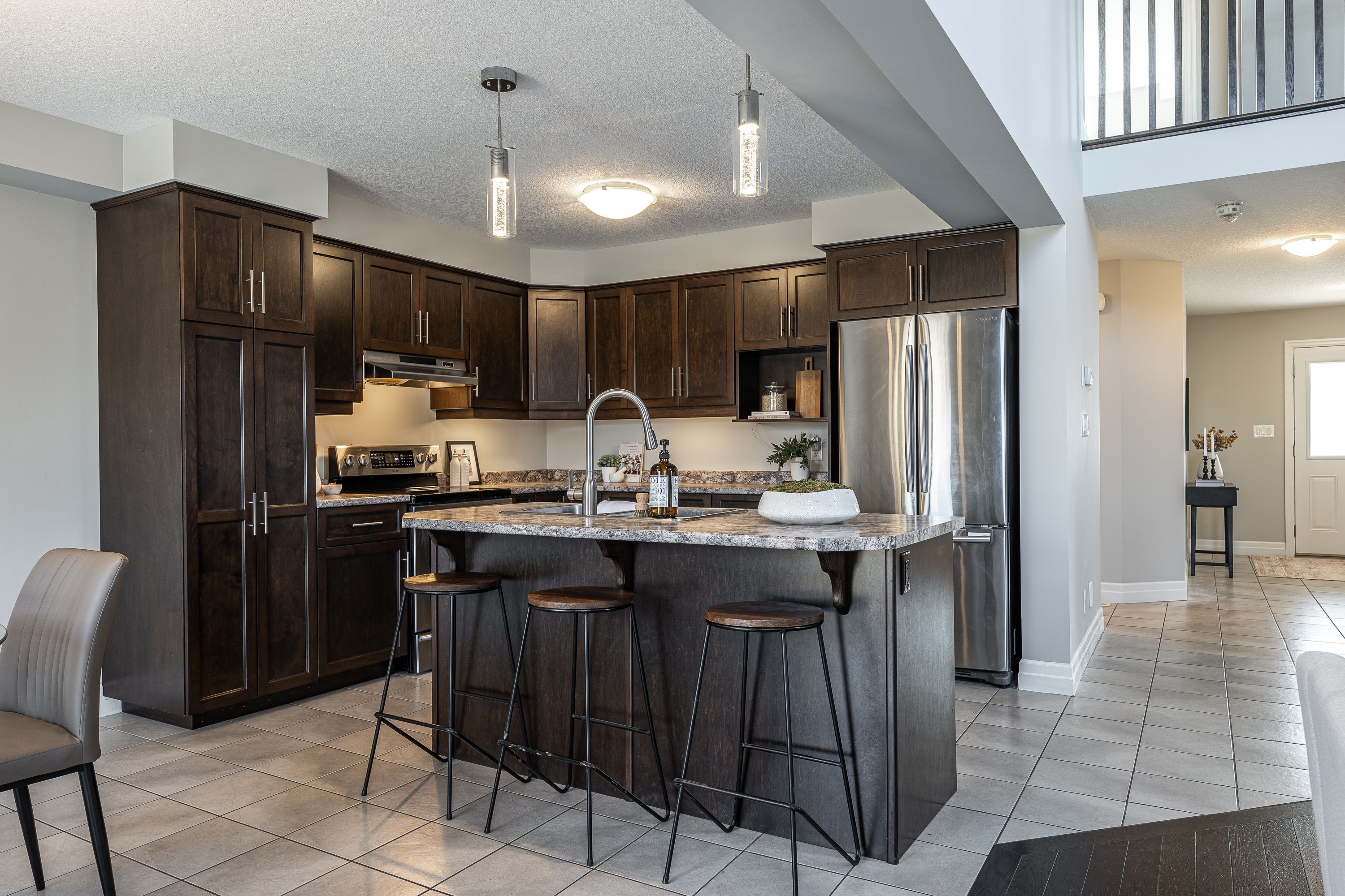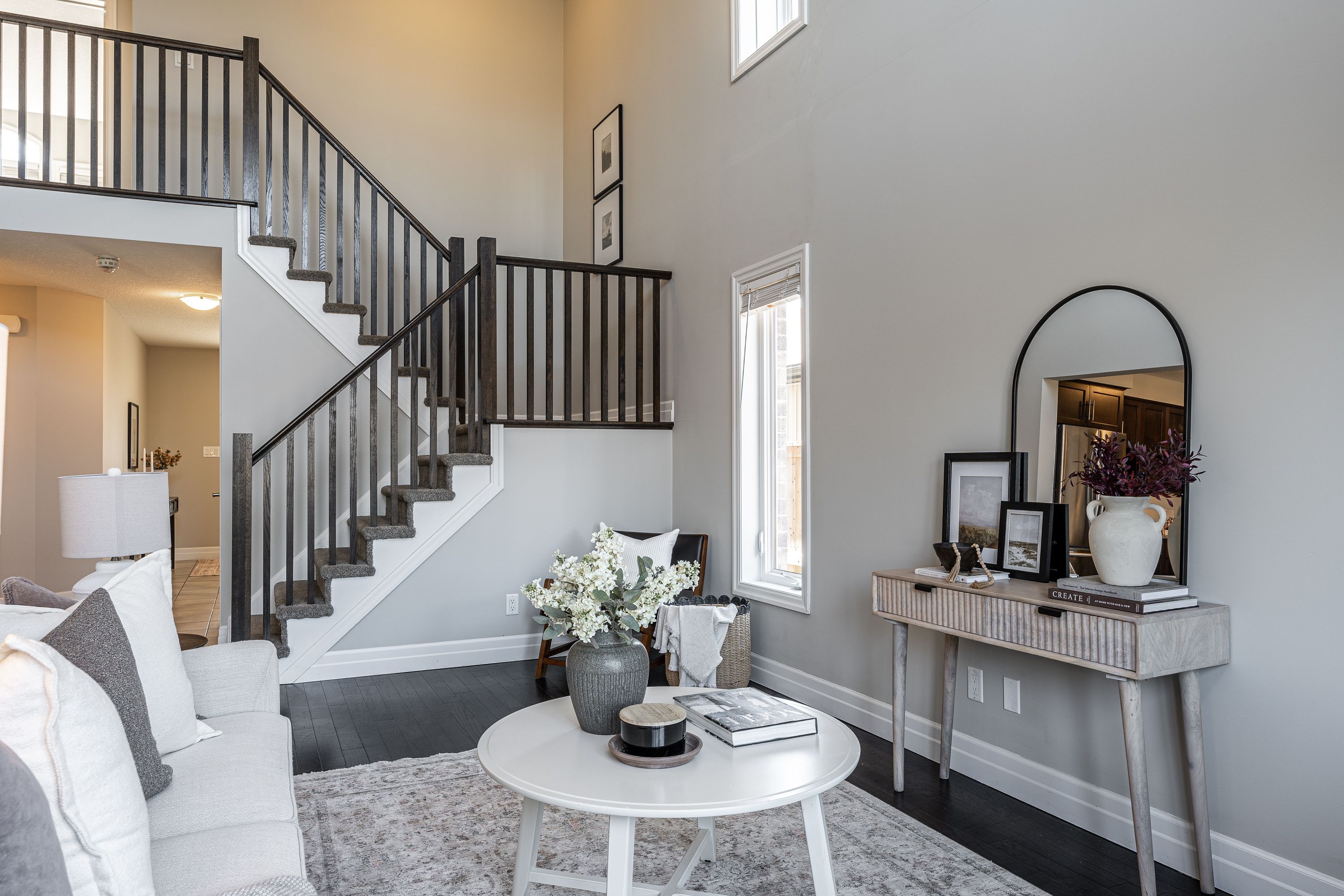 Step through the impressive double front doors at 59 bradshaw drive into a warm and welcoming foyer offering a beautiful introduction to this thoughtfully designed home. The main floor features a stylish powder room and convenient laundry, while the heart of the home unfolds into an open-concept kitchen, dining, and living space. Soaring cathedral ceilings and expansive windows create a light-filled atmosphere, perfectly blending comfort and sophistication for both everyday living and entertaining. Upstairs, an open and airy layout continues with three generously sized bedrooms. The large primary suite is complete with his-and-hers closets that lead seamlessly into a private ensuite. The unfinished basement presents great potential, featuring a bathroom rough-in, an egress window, and abundant storage, ideal for future development into a spacious rec room, additional bedroom, or in-law suite. Outdoors, enjoy a fully fenced backyard designed for both relaxation and gathering, highlighted by a large wood deck and a convenient storage shed. A double car garage completes this beautifully appointed property, ideally located near the stratford rotary complex, parks, schools and amenities. A home where comfort meets style, ready for you to move in and make it your own.