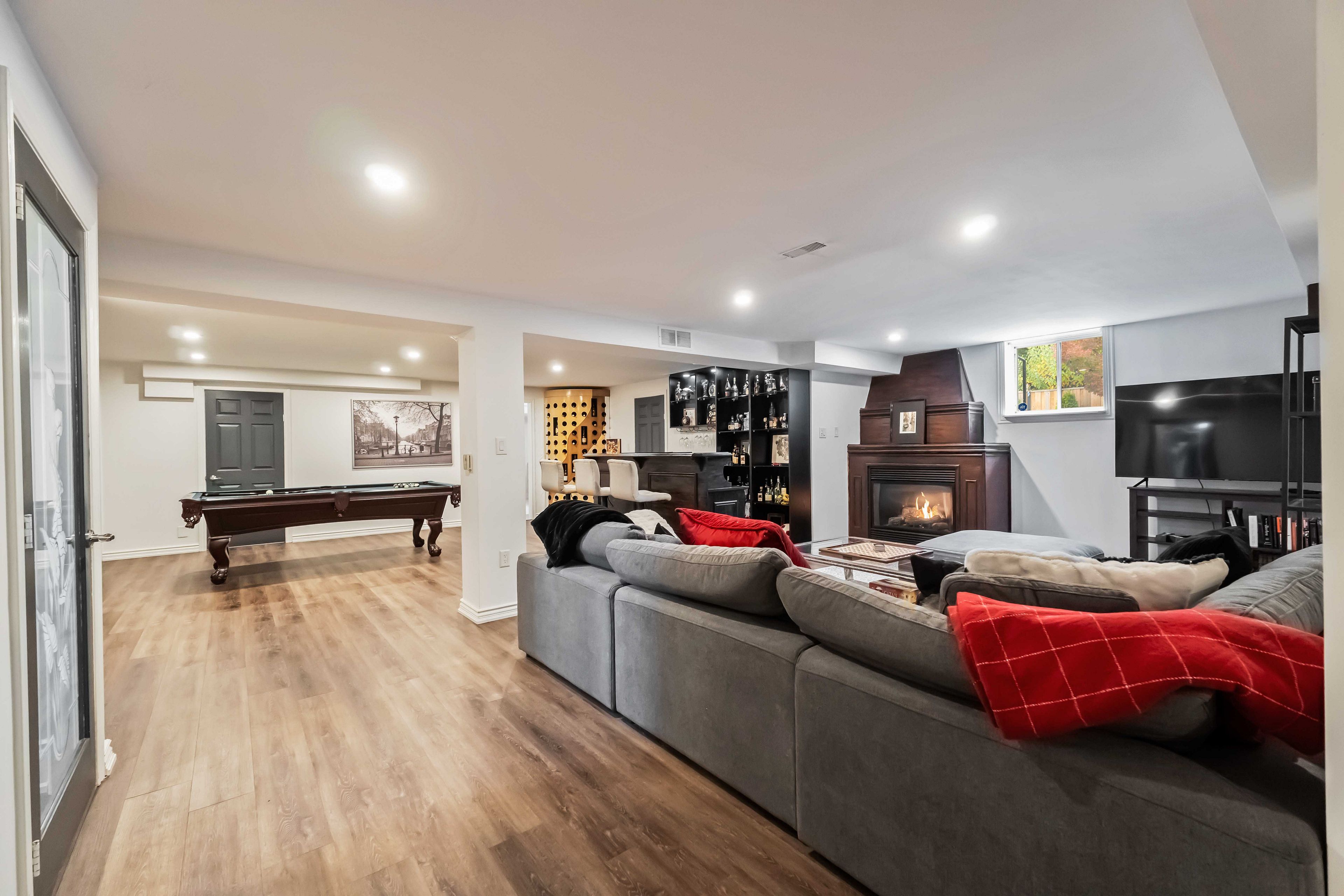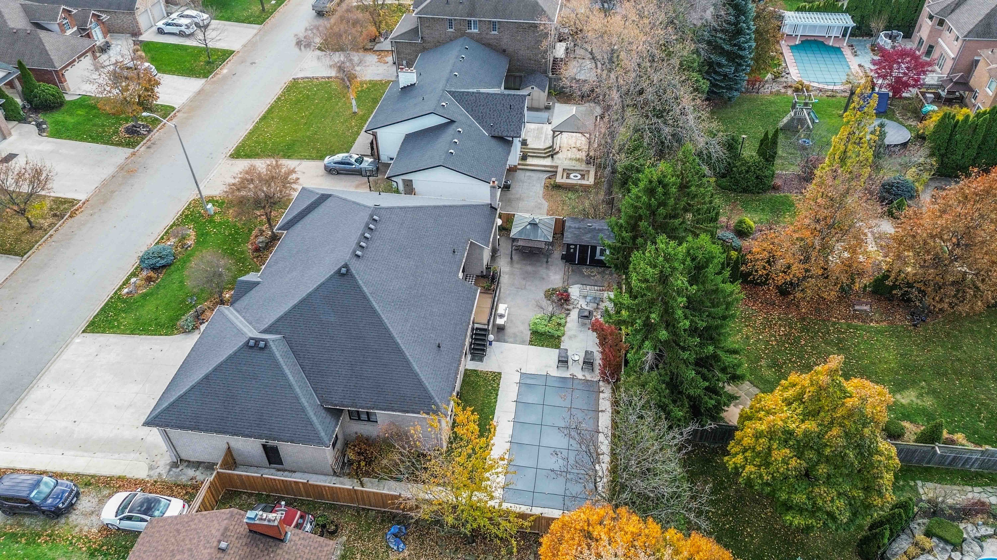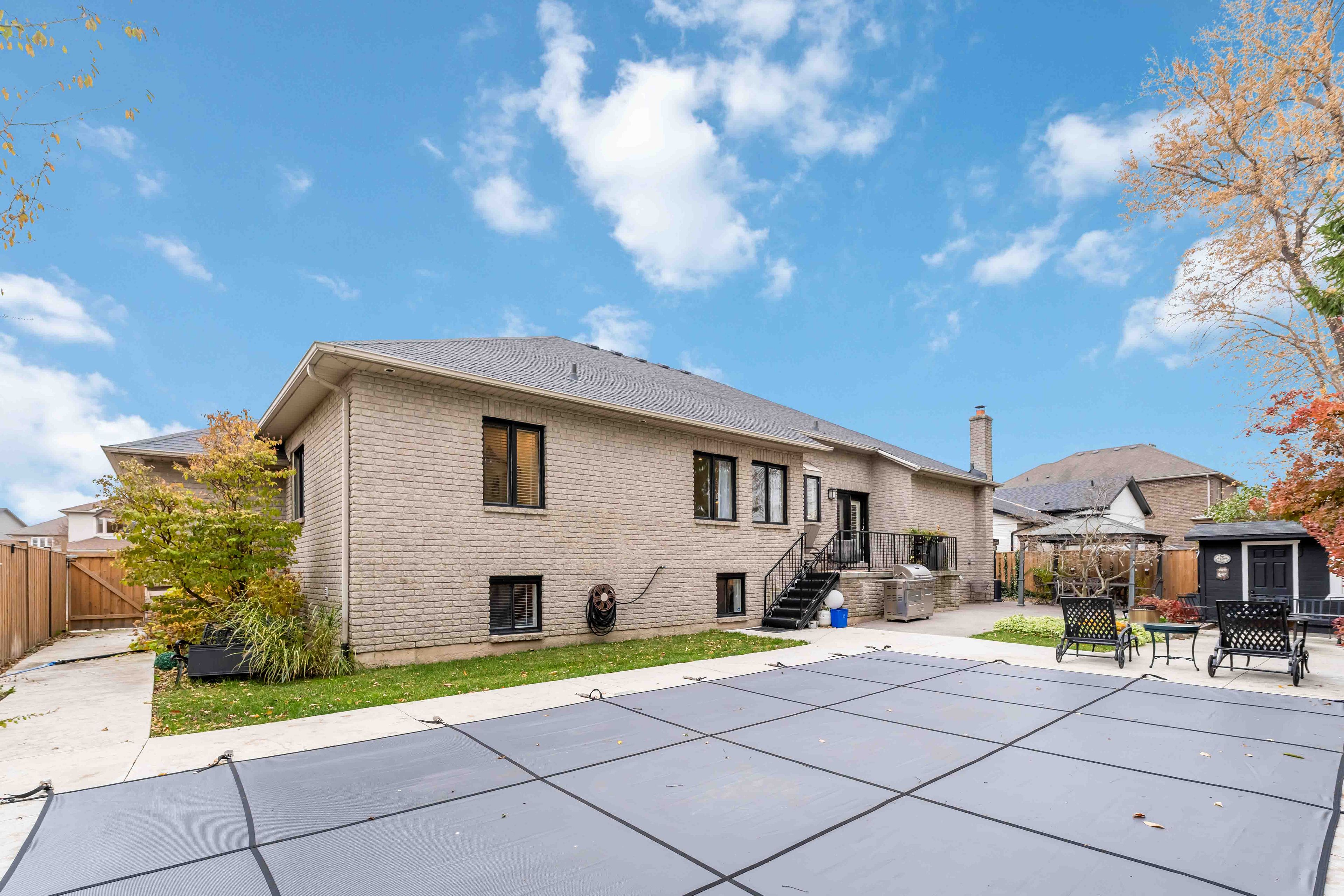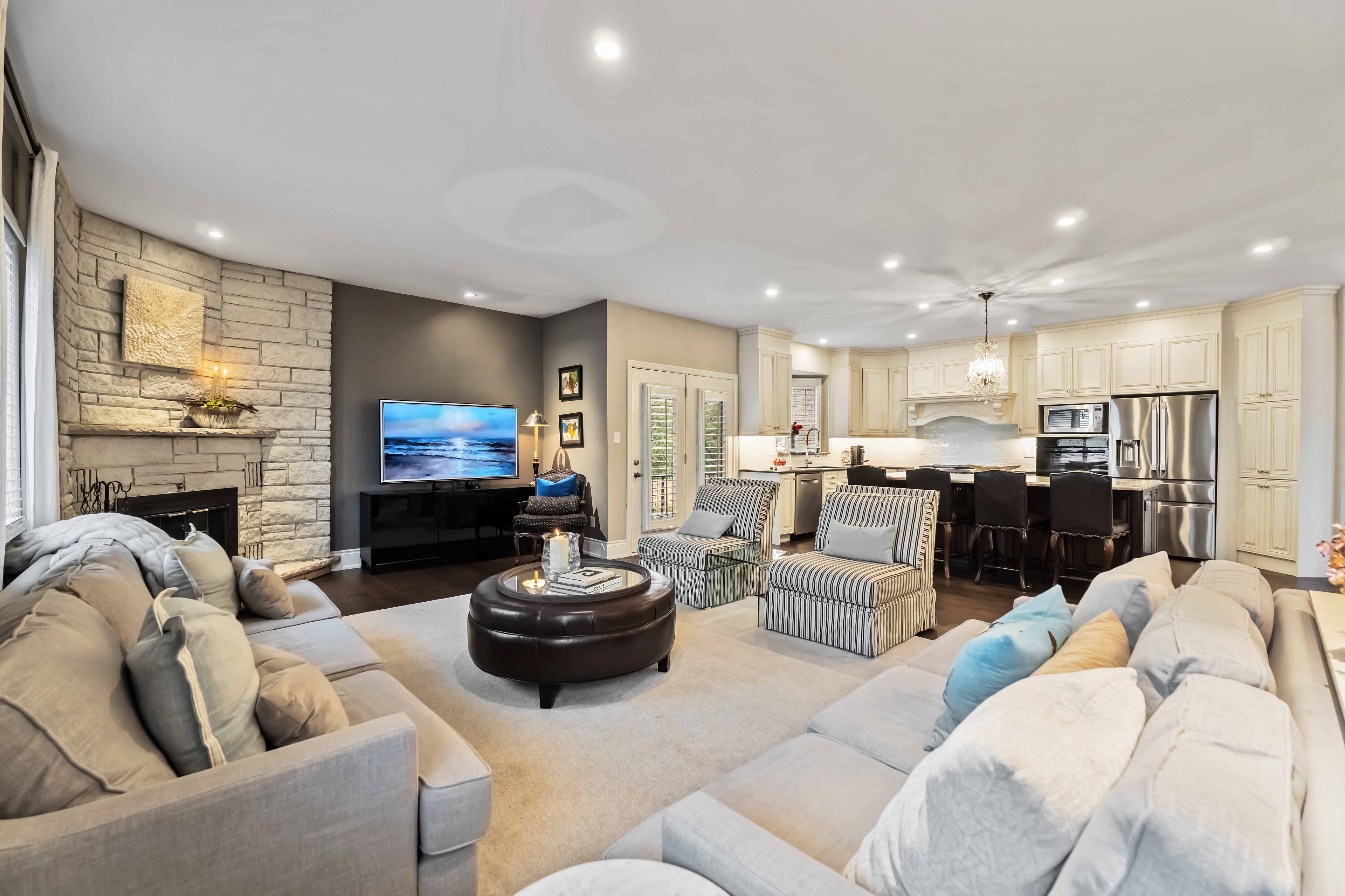 Absolutely gorgeous! This fabulously renovated bungalow offers over 4300 sq ft of refined living in the prestigious lakefront community of fifty point. Renovated within the last five years, the home blends high-end craftsmanship with warm, inviting style for a truly turnkey experience. A dramatic 11 ft foyer welcomes you into sun-filled spaces featuring 9 ft ceilings, elegant lighting, and rich new hardwood floors throughout the main level. The open-concept gourmet kitchen is the centerpiece of the home, boasting stone countertops, premium appliances, custom cabinetry, and an impressive island designed for cooking, gathering, and entertaining. The spacious dining area flows into a warm yet grand great room anchored by a charming wood-burning fireplace-perfect for everyday living or hosting. The primary bedroom feels like a private retreat with a walk-in closet and spa-inspired ensuite featuring a glass shower, deep soaker tub, and modern designer finishes. Two additional large bedrooms, a stylish 4-piece bath, and a chic 2-piece powder room complete the main floor. The professionally finished lower level, with its own separate entrance, offers a full in-law suite ideal for extended family or guests. It includes a generous rec room with a gas fireplace and bar, two big bedrooms with walk-in closets, a renovated 3-piece bath, and a functional eat-in kitchen. Step outside to your private backyard oasis, featuring a new saltwater pool with fibre-optic lighting, lush landscaping, a spacious patio, gazebo, and storage shed-perfect for relaxing or entertaining. With luxury finishes, thoughtful updates, and undeniable curb appeal, this home delivers comfort, style, and resort-like living. Close to the marina, beach, bruce trail, and 50 point conservation area-ideal for nature lovers and outdoor enthusiasts.