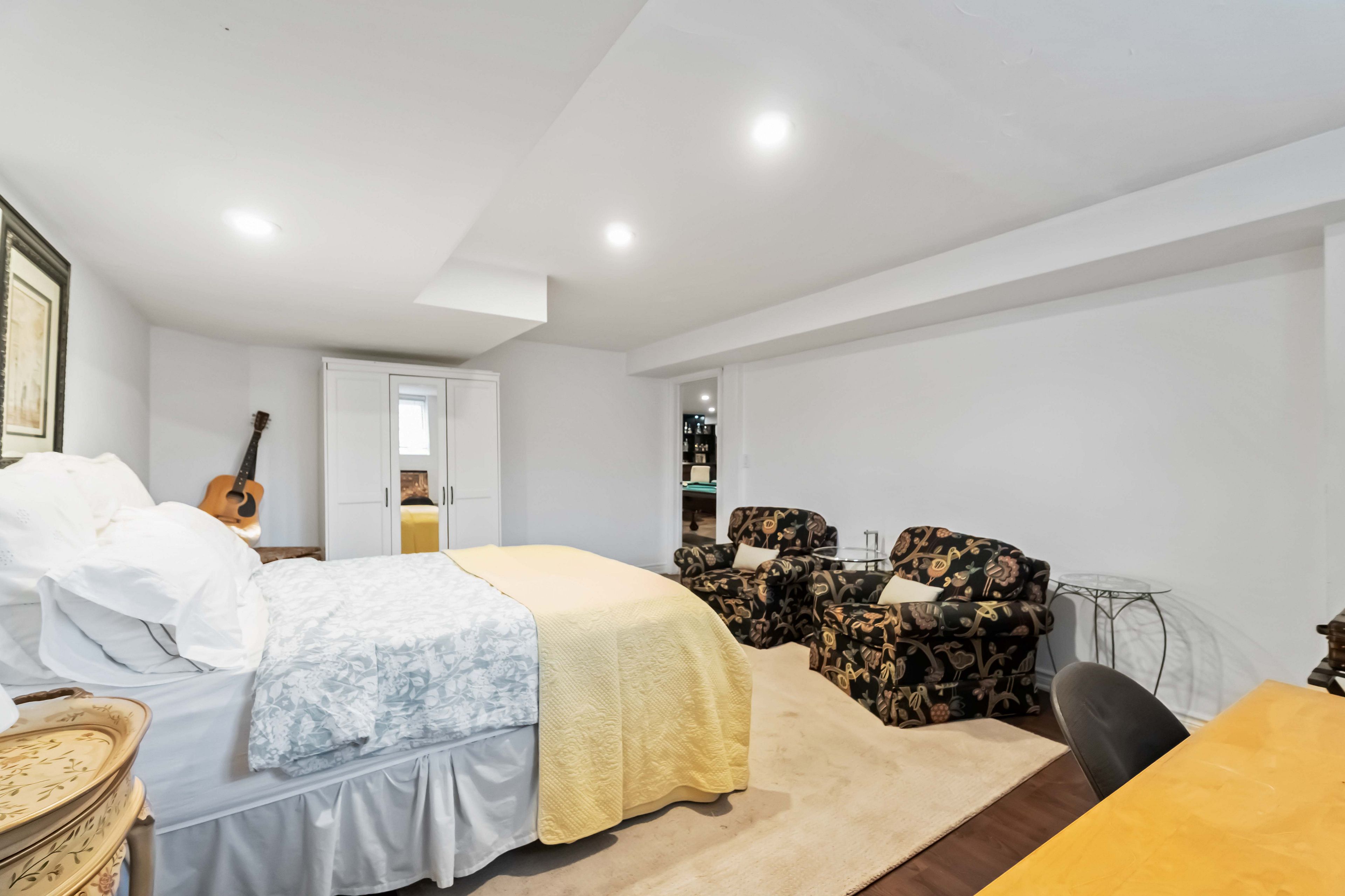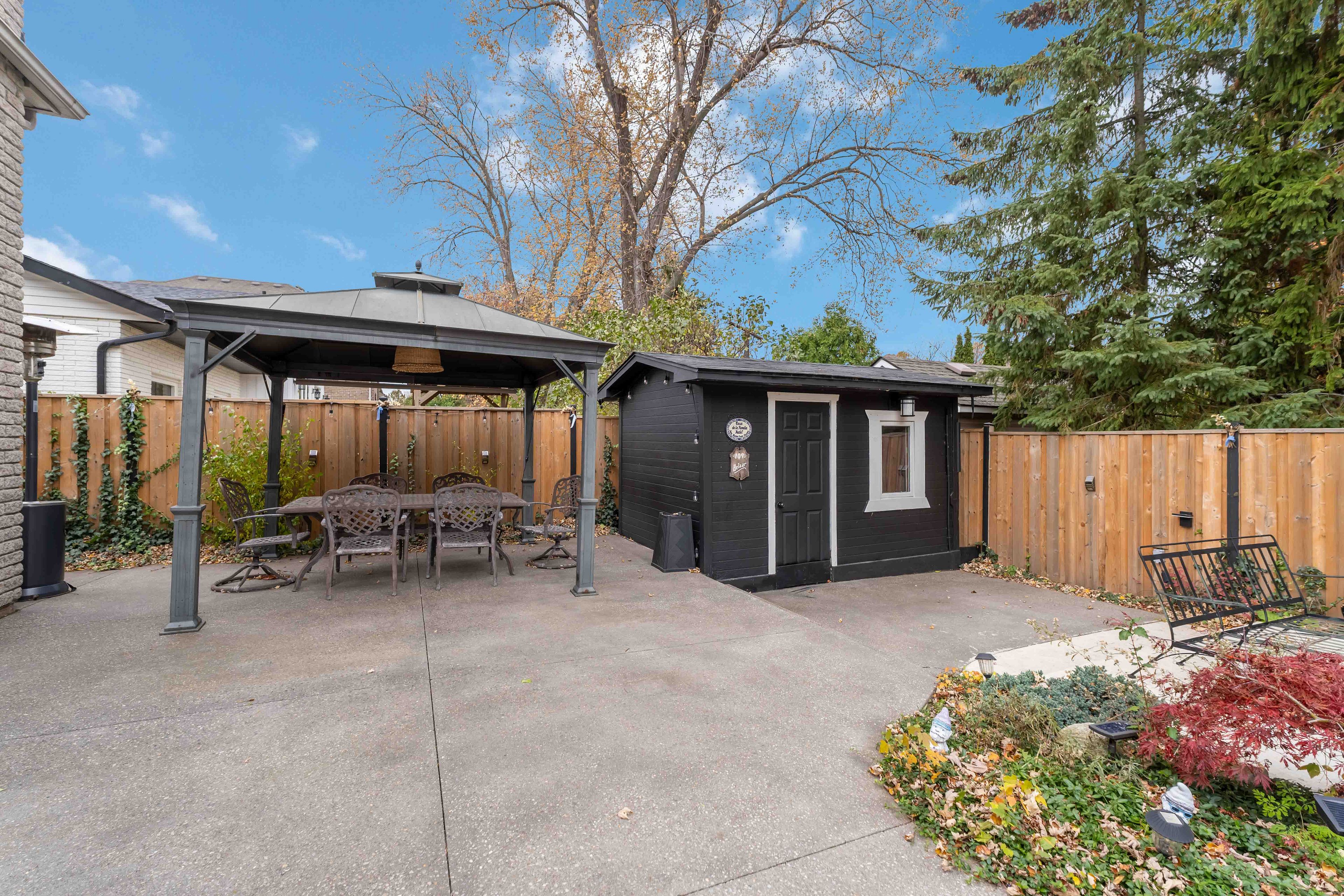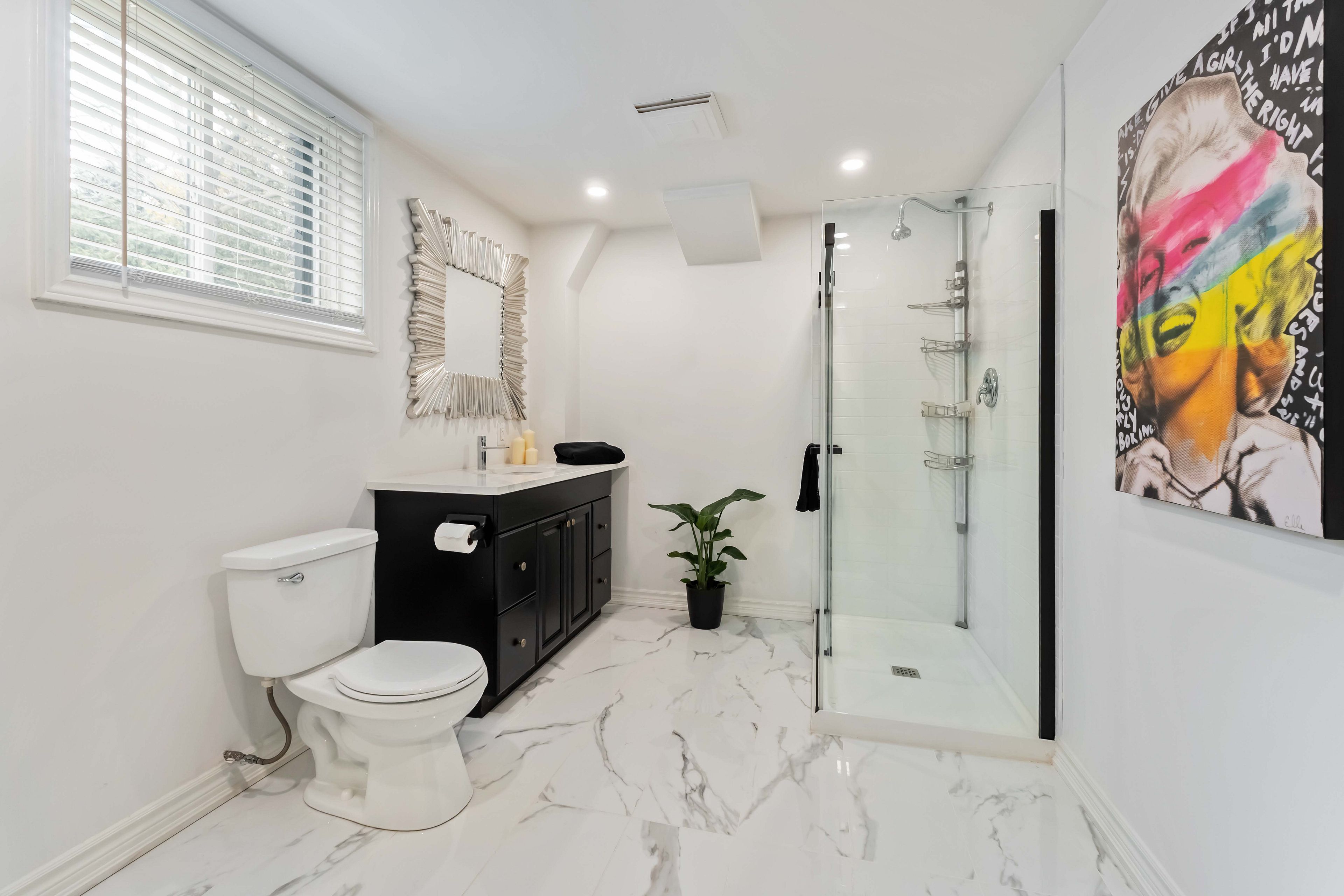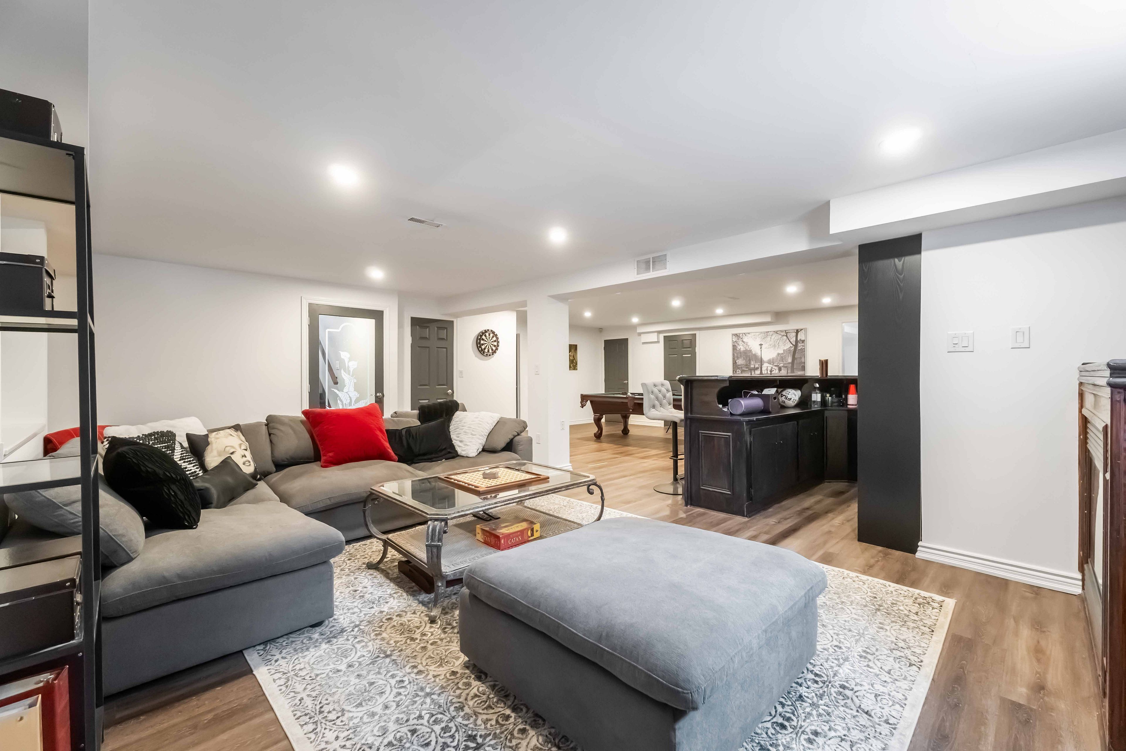 Absolutely gorgeous! This fabulously renovated bungalow offers over 4300 sq ft of refined living in the prestigious lakefront community of fifty point. Renovated within the last five years, the home blends high-end craftsmanship with warm, inviting style for a truly turnkey experience. A dramatic 11 ft foyer welcomes you into sun-filled spaces featuring 9 ft ceilings, elegant lighting, and rich new hardwood floors throughout the main level. The open-concept gourmet kitchen is the centerpiece of the home, boasting stone countertops, premium appliances, custom cabinetry, and an impressive island designed for cooking, gathering, and entertaining. The spacious dining area flows into a warm yet grand great room anchored by a charming wood-burning fireplace-perfect for everyday living or hosting. The primary bedroom feels like a private retreat with a walk-in closet and spa-inspired ensuite featuring a glass shower, deep soaker tub, and modern designer finishes. Two additional large bedrooms, a stylish 4-piece bath, and a chic 2-piece powder room complete the main floor. The professionally finished lower level, with its own separate entrance, offers a full in-law suite ideal for extended family or guests. It includes a generous rec room with a gas fireplace and bar, two big bedrooms with walk-in closets, a renovated 3-piece bath, and a functional eat-in kitchen. Step outside to your private backyard oasis, featuring a new saltwater pool with fibre-optic lighting, lush landscaping, a spacious patio, gazebo, and storage shed-perfect for relaxing or entertaining. With luxury finishes, thoughtful updates, and undeniable curb appeal, this home delivers comfort, style, and resort-like living. Close to the marina, beach, bruce trail, and 50 point conservation area-ideal for nature lovers and outdoor enthusiasts.