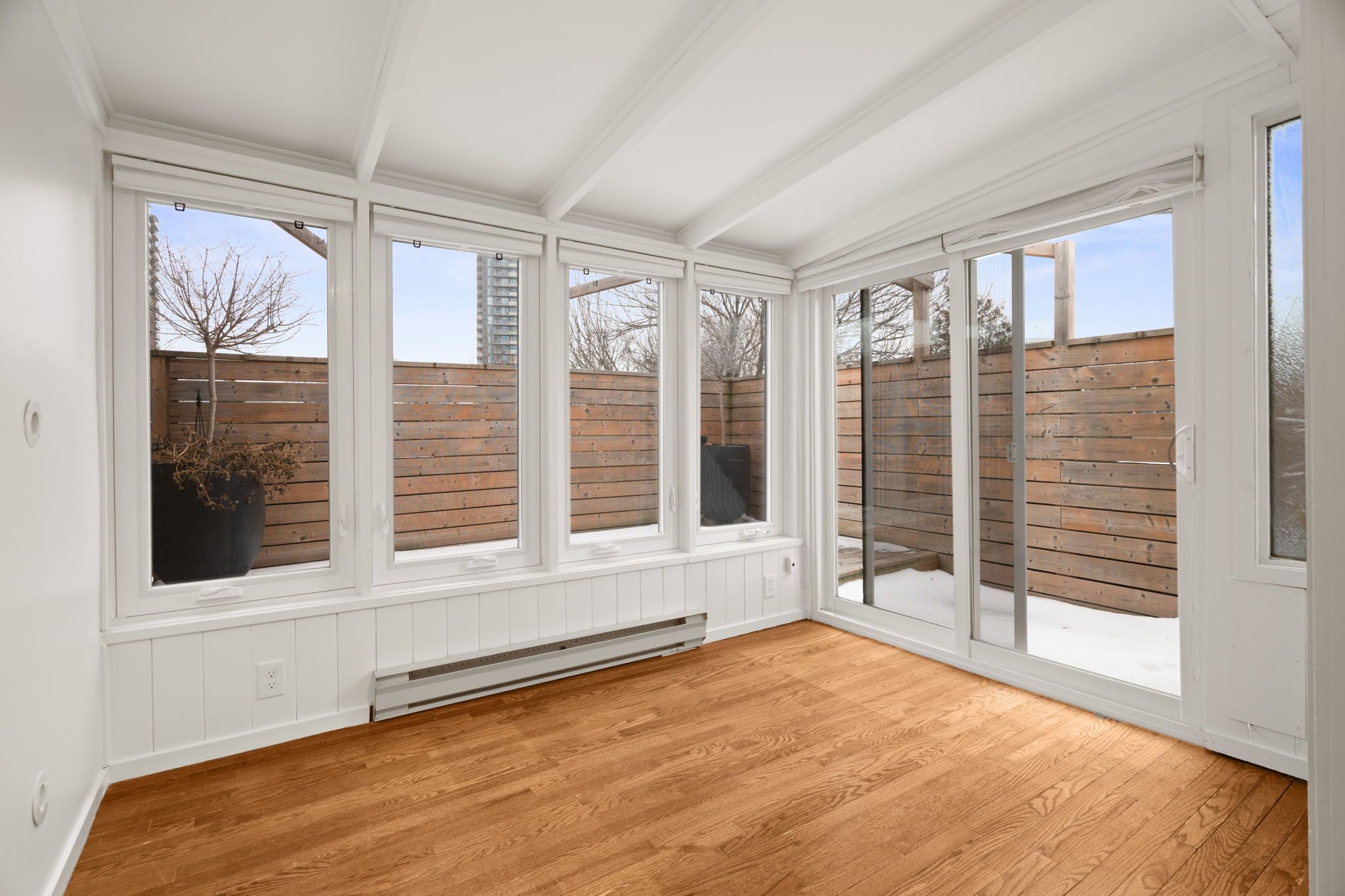 • Versatile sunroom perfect for a home office or relaxation.