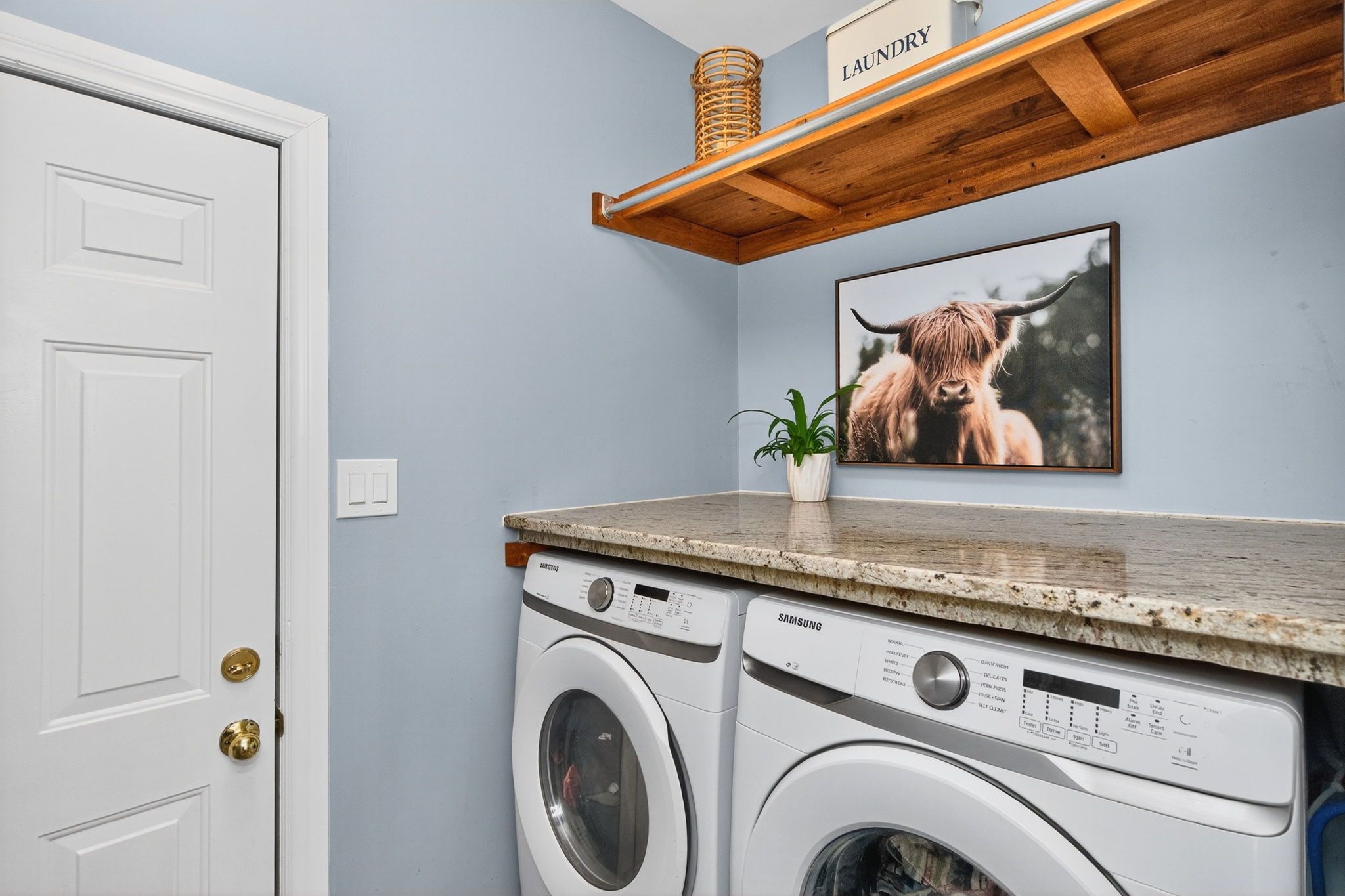 • Bright open-concept design with 9-ft ceilings and cozy gas fireplace.