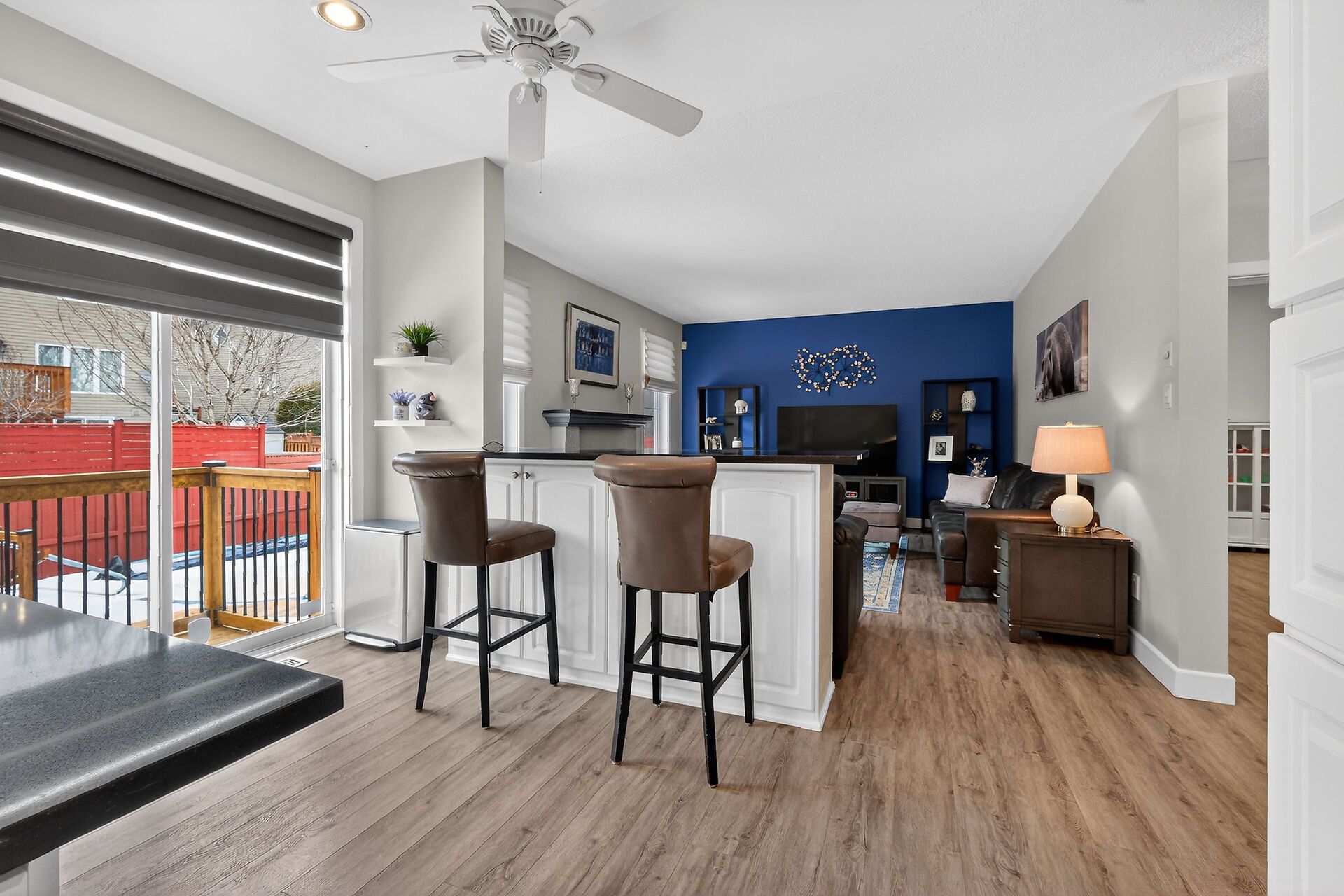 • Cozy family room with a gas fireplace for warmth.