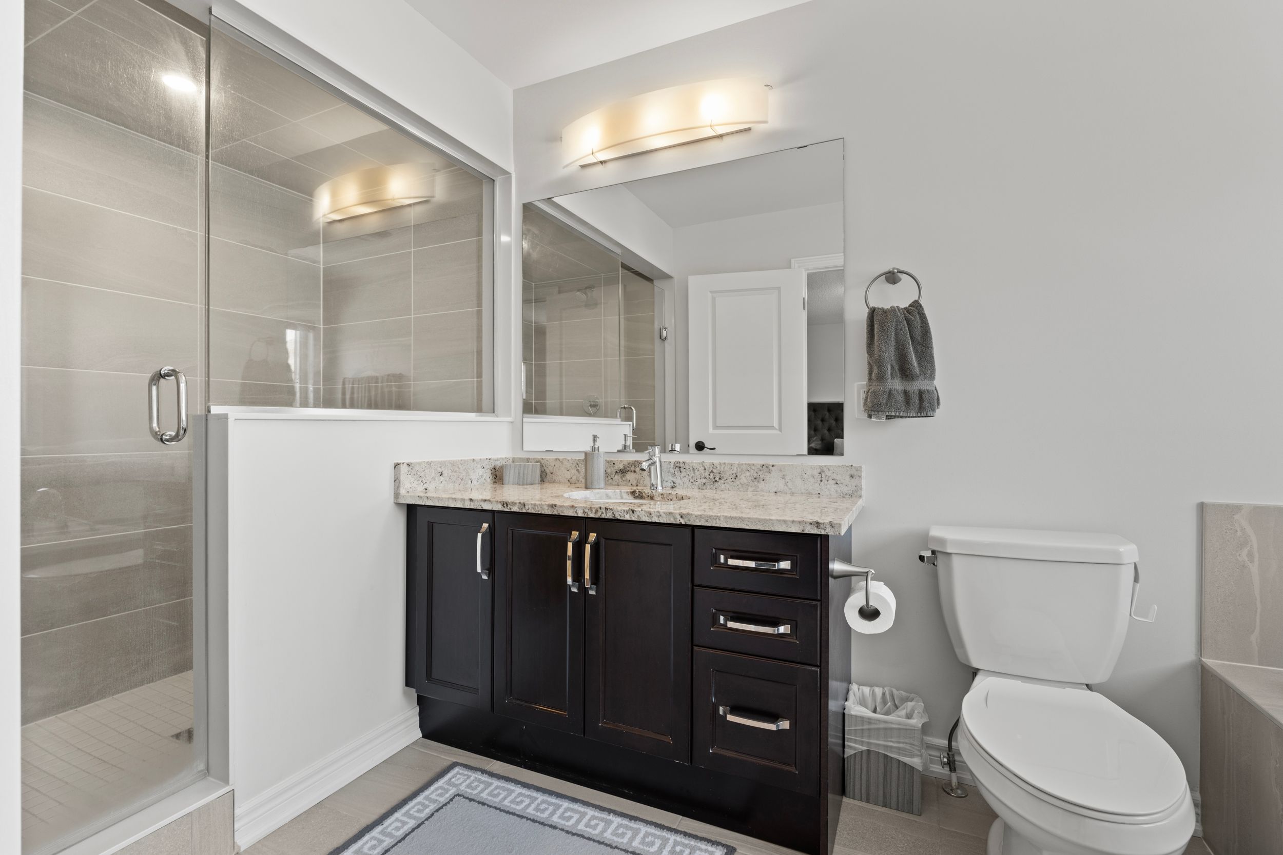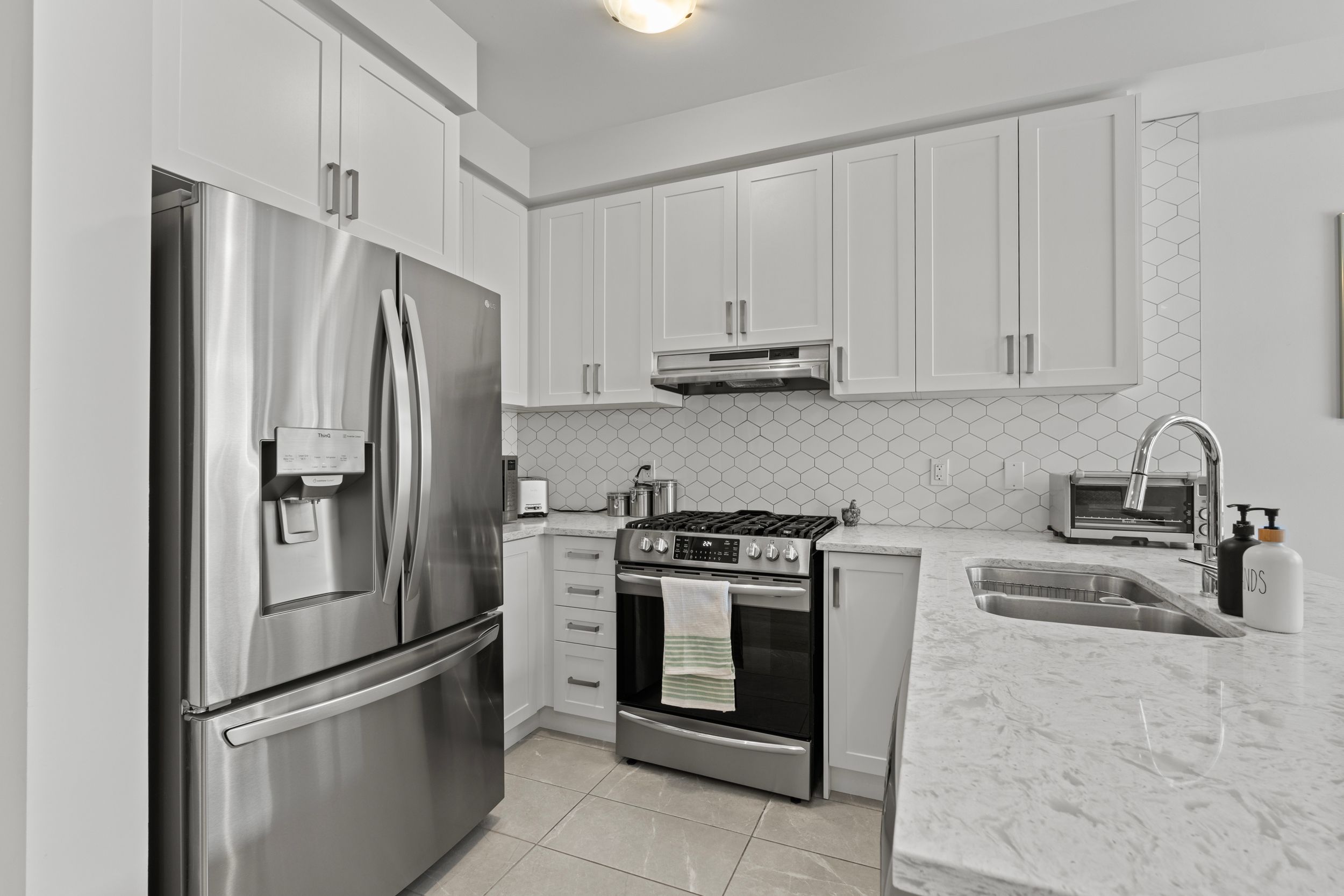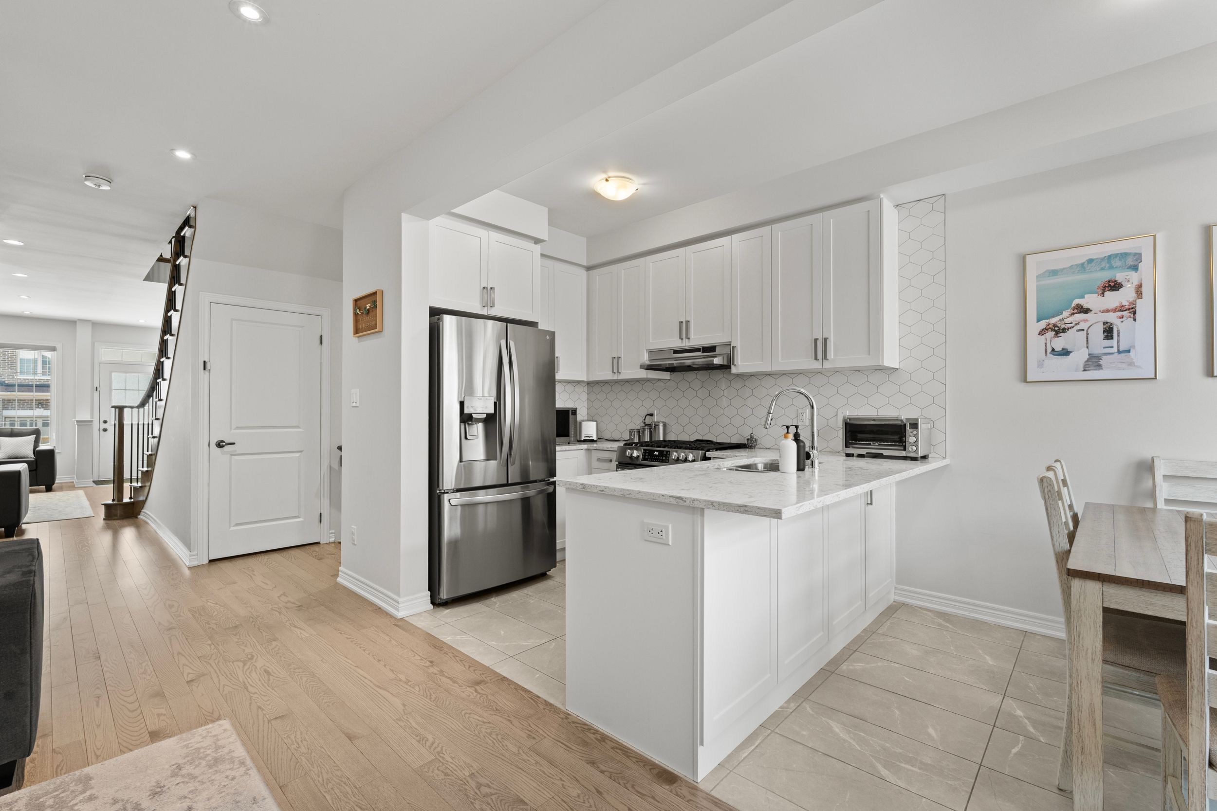 • Upgraded hardwood flooring and elegant quartz countertops throughout.